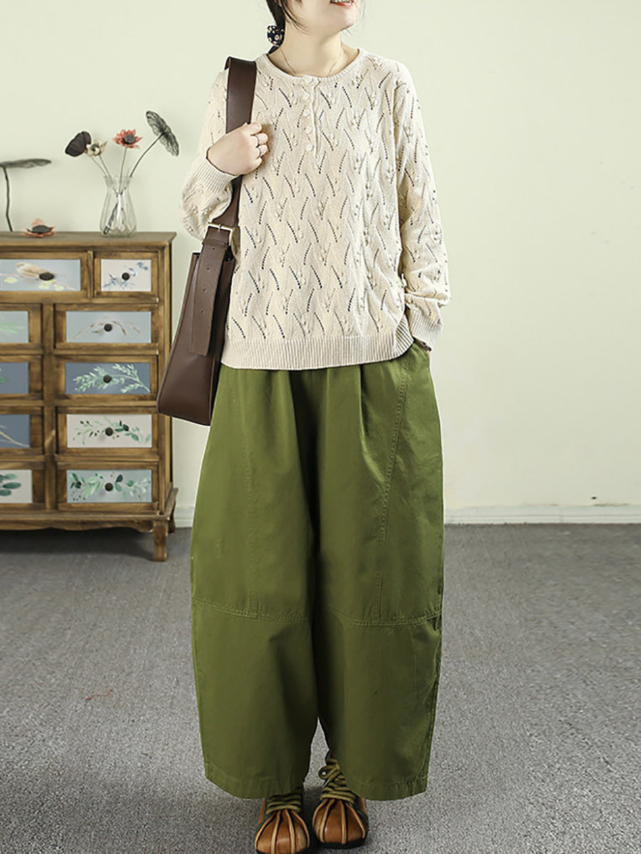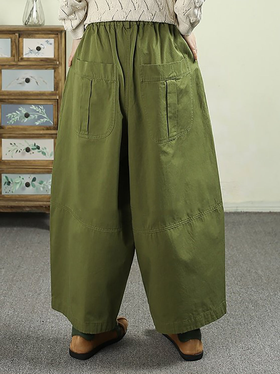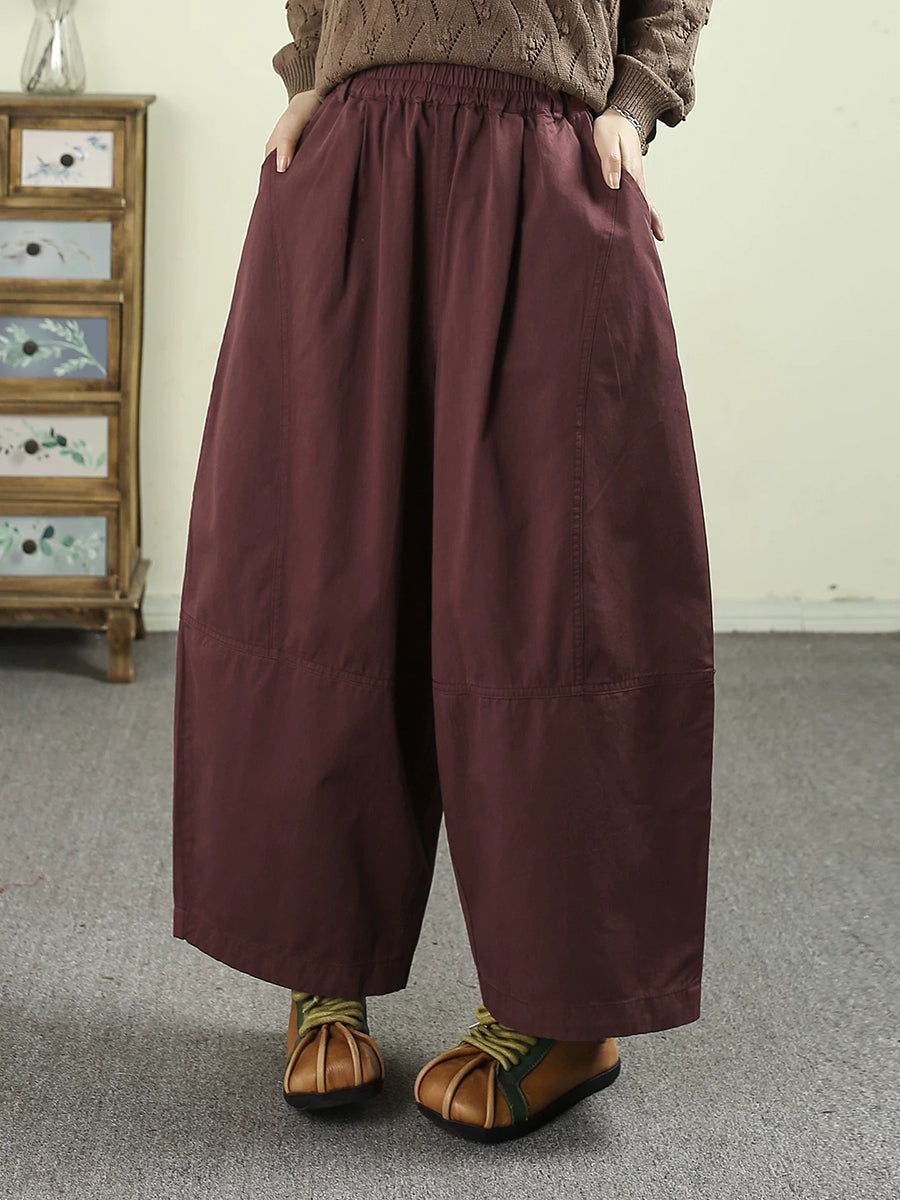 Calça feminina casual de primavera, em algodão liso, com pernas largas.