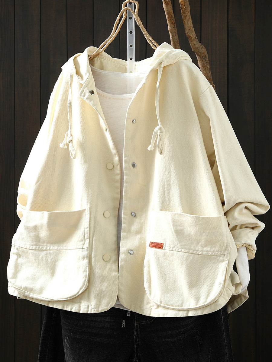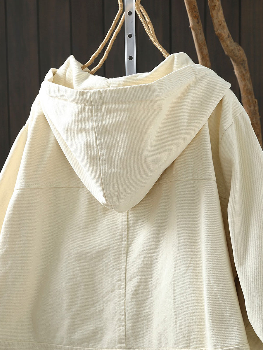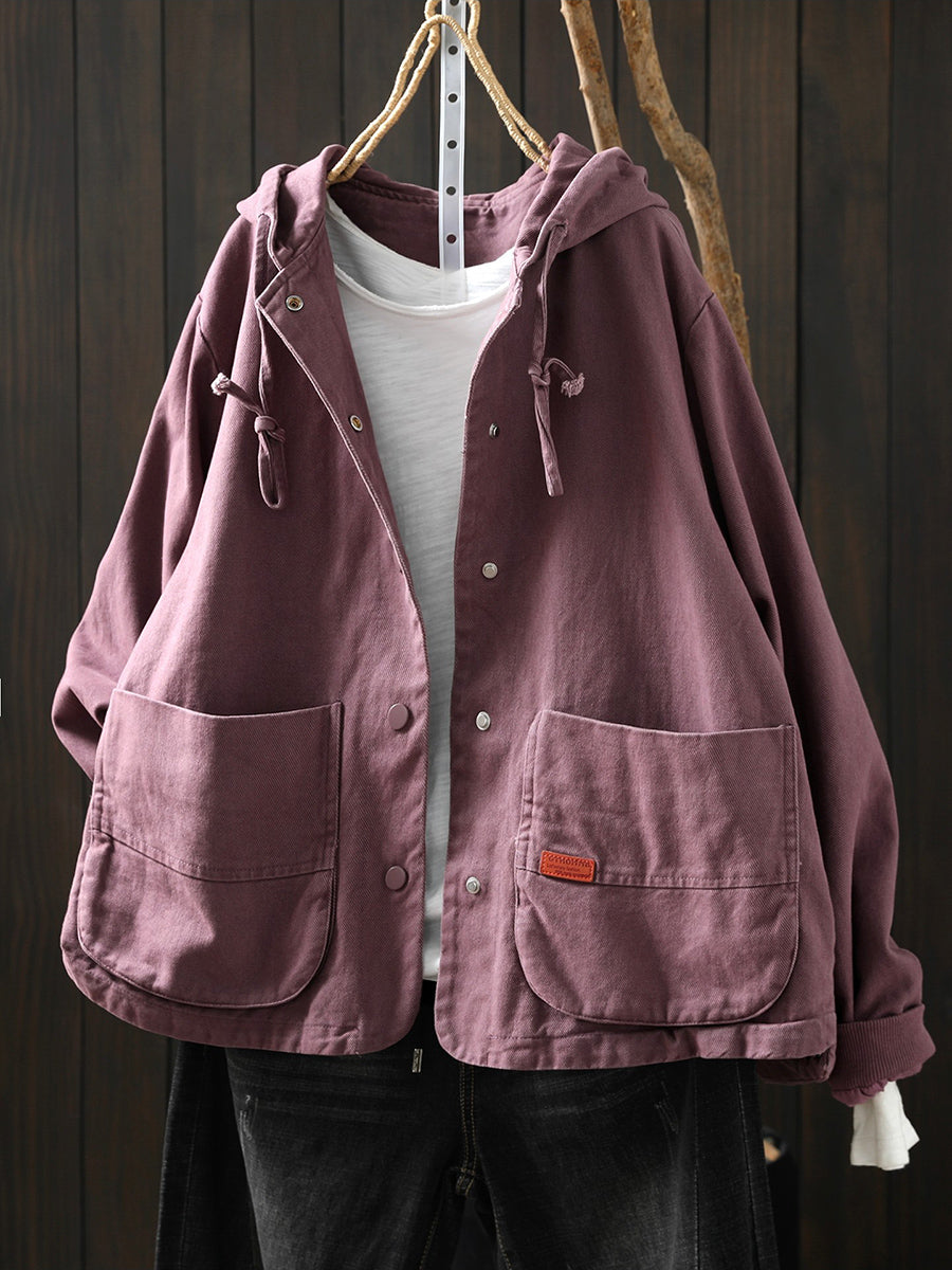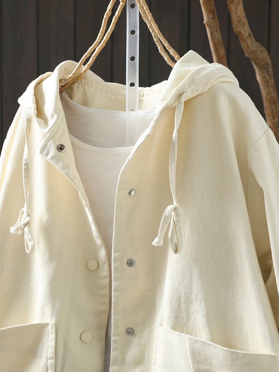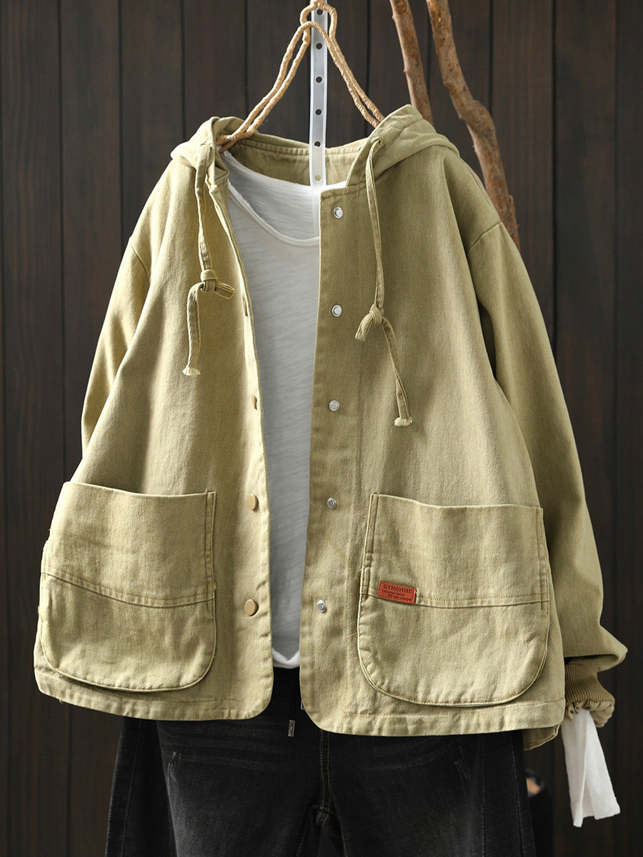 Casaco feminino de algodão com capuz, casual, de cor lisa, para a primavera.