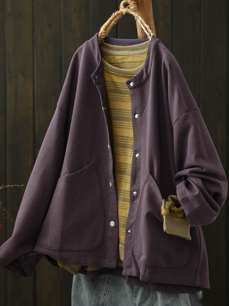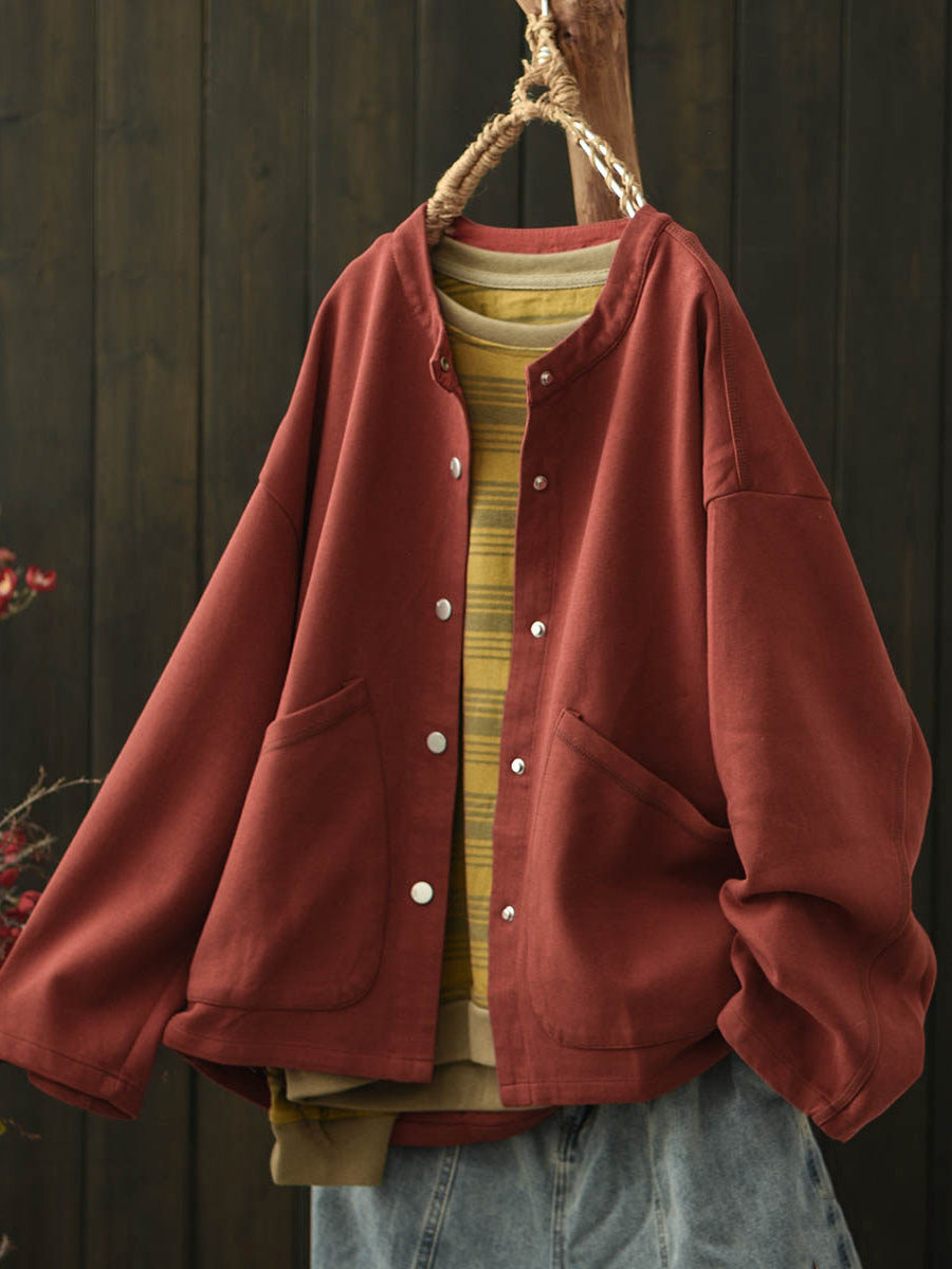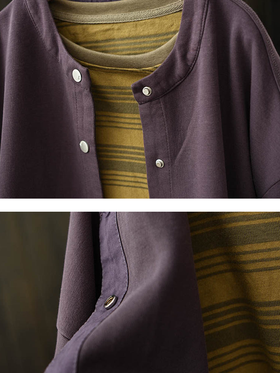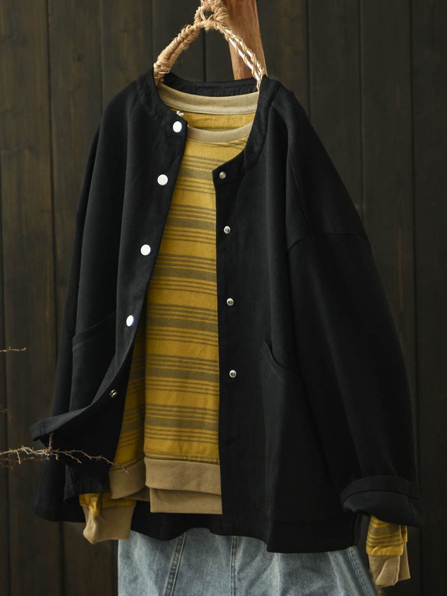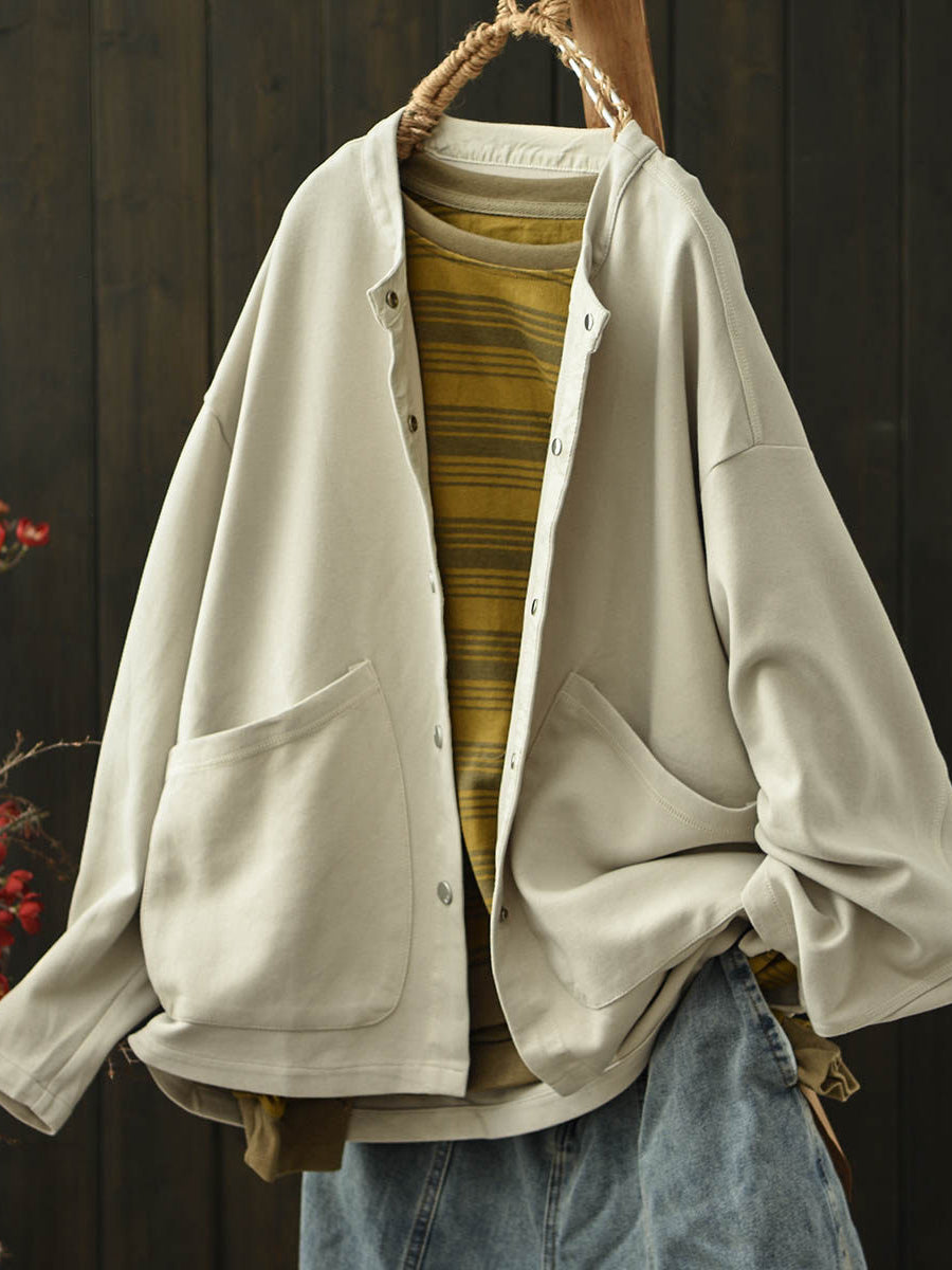 Casaco feminino casual de primavera, cor lisa, gola redonda.