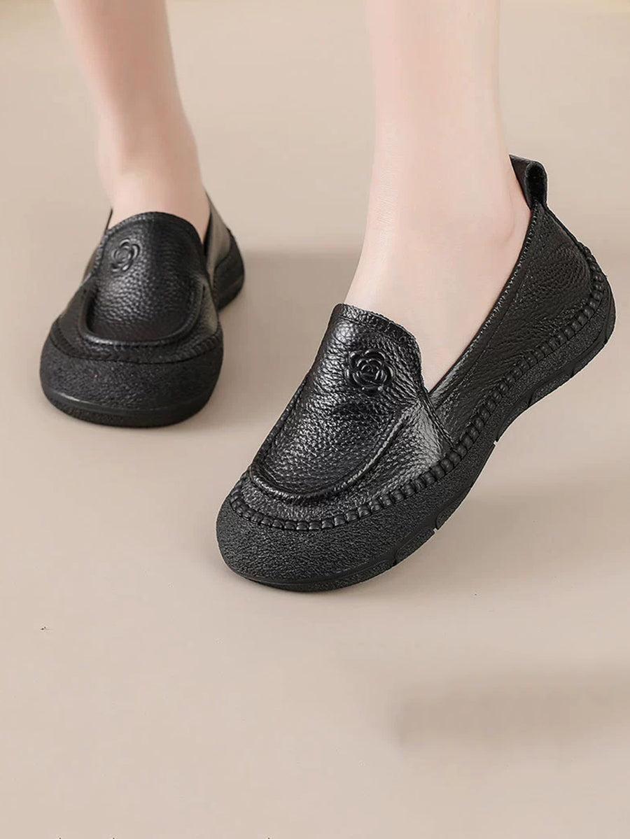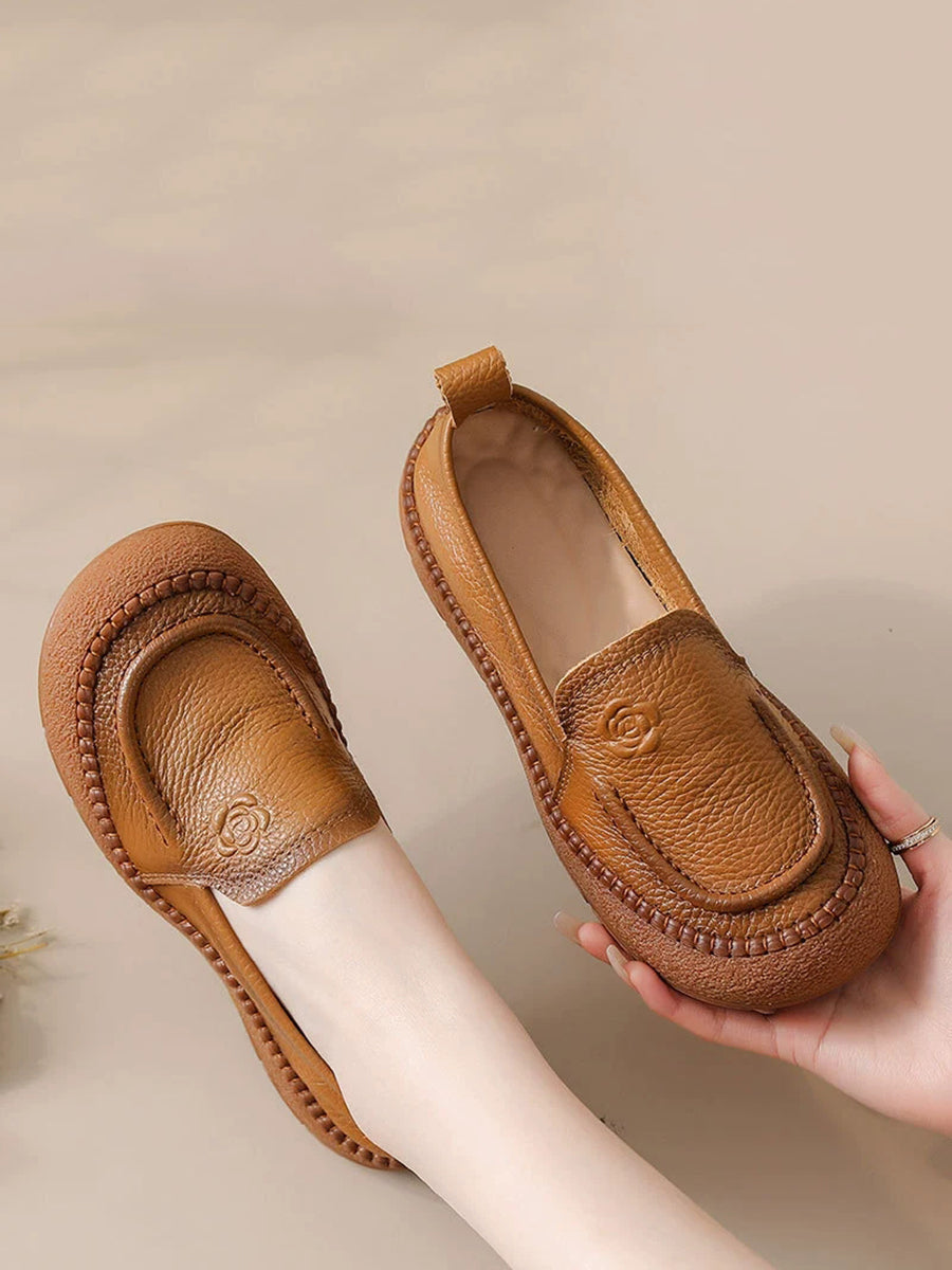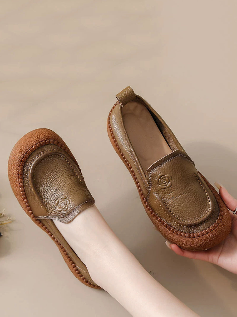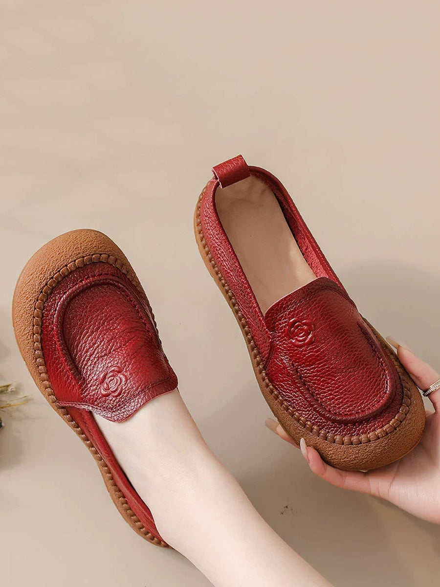 Sapatos femininos de primavera em couro legítimo com estampa floral.