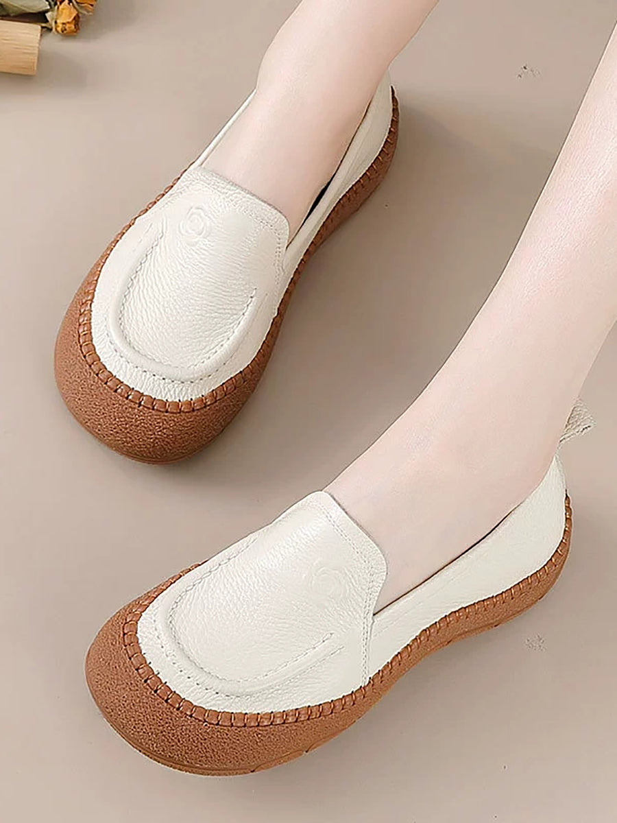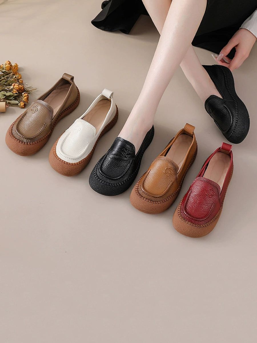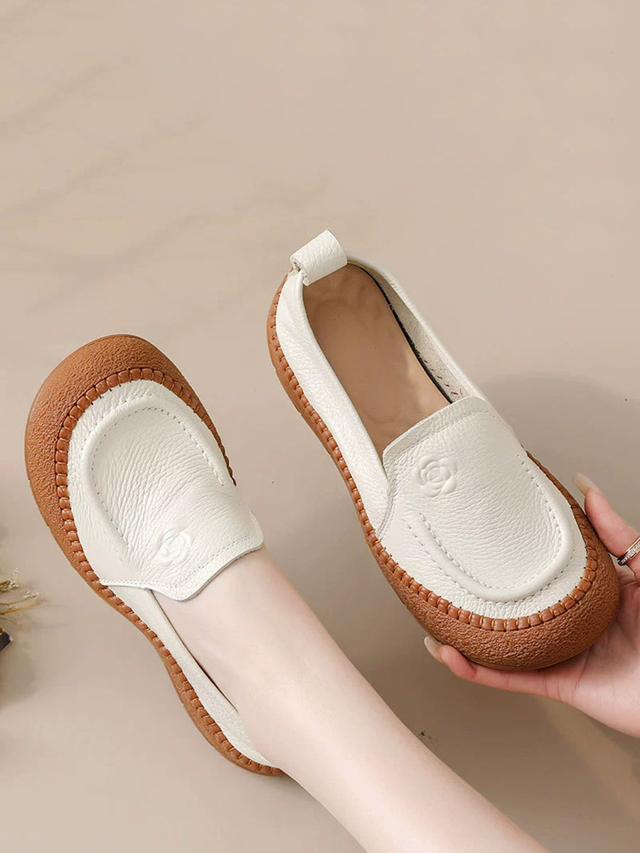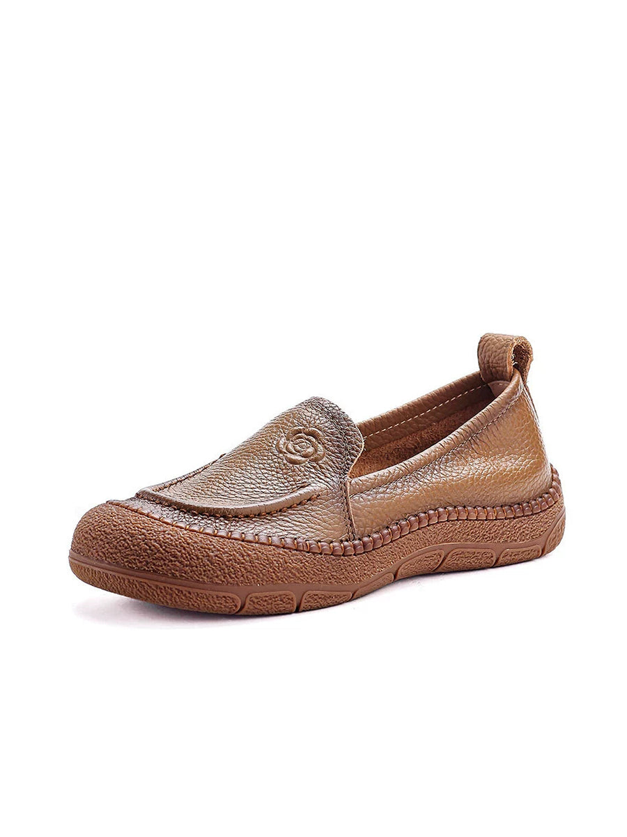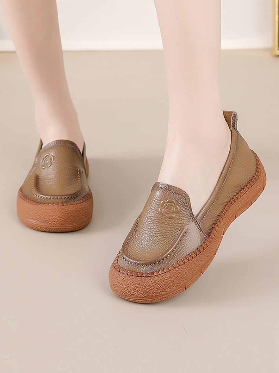 Sapatos femininos de primavera em couro legítimo com estampa floral.