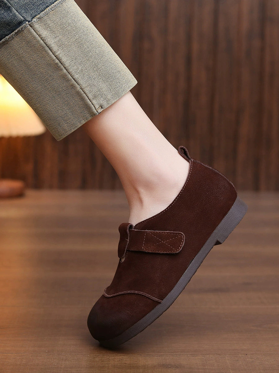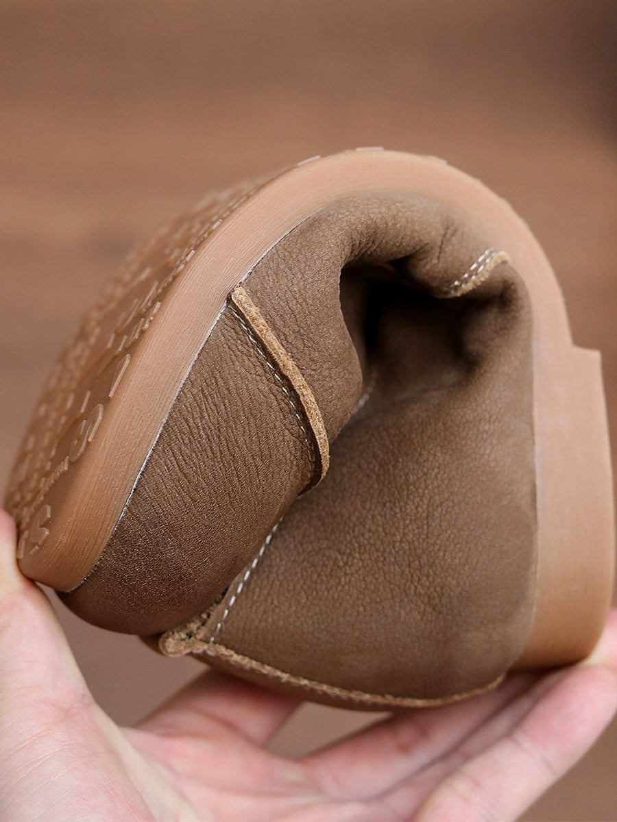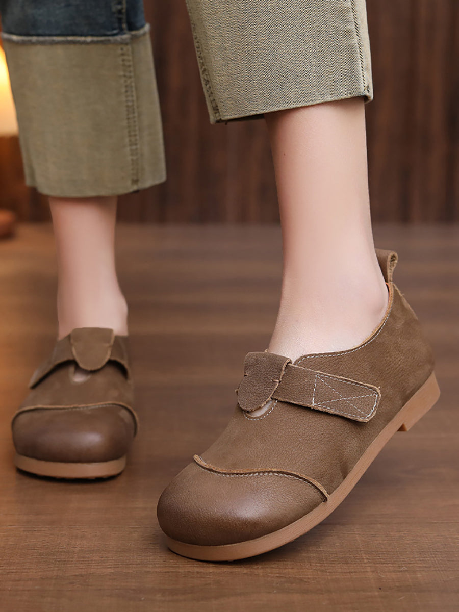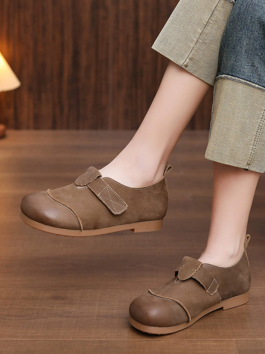 Sapatos femininos de primavera em couro genuíno com salto baixo