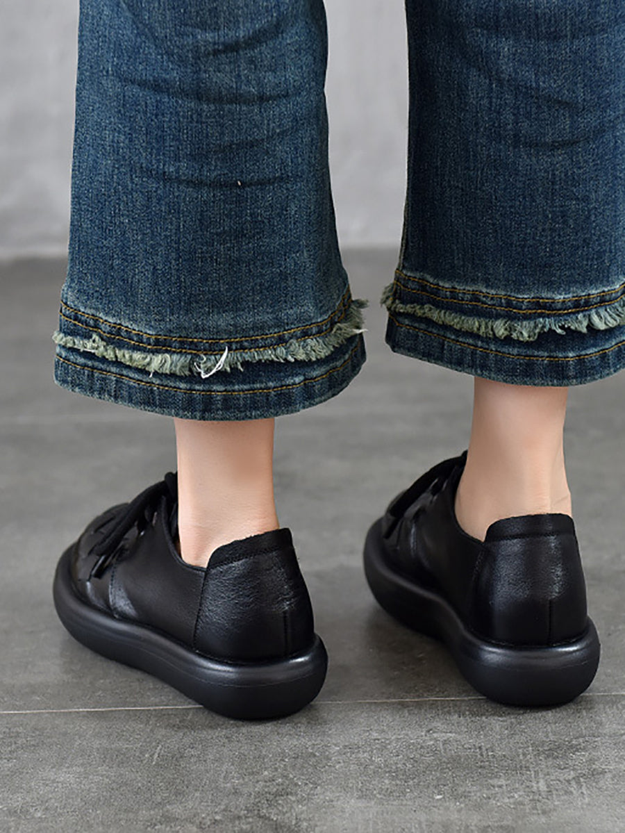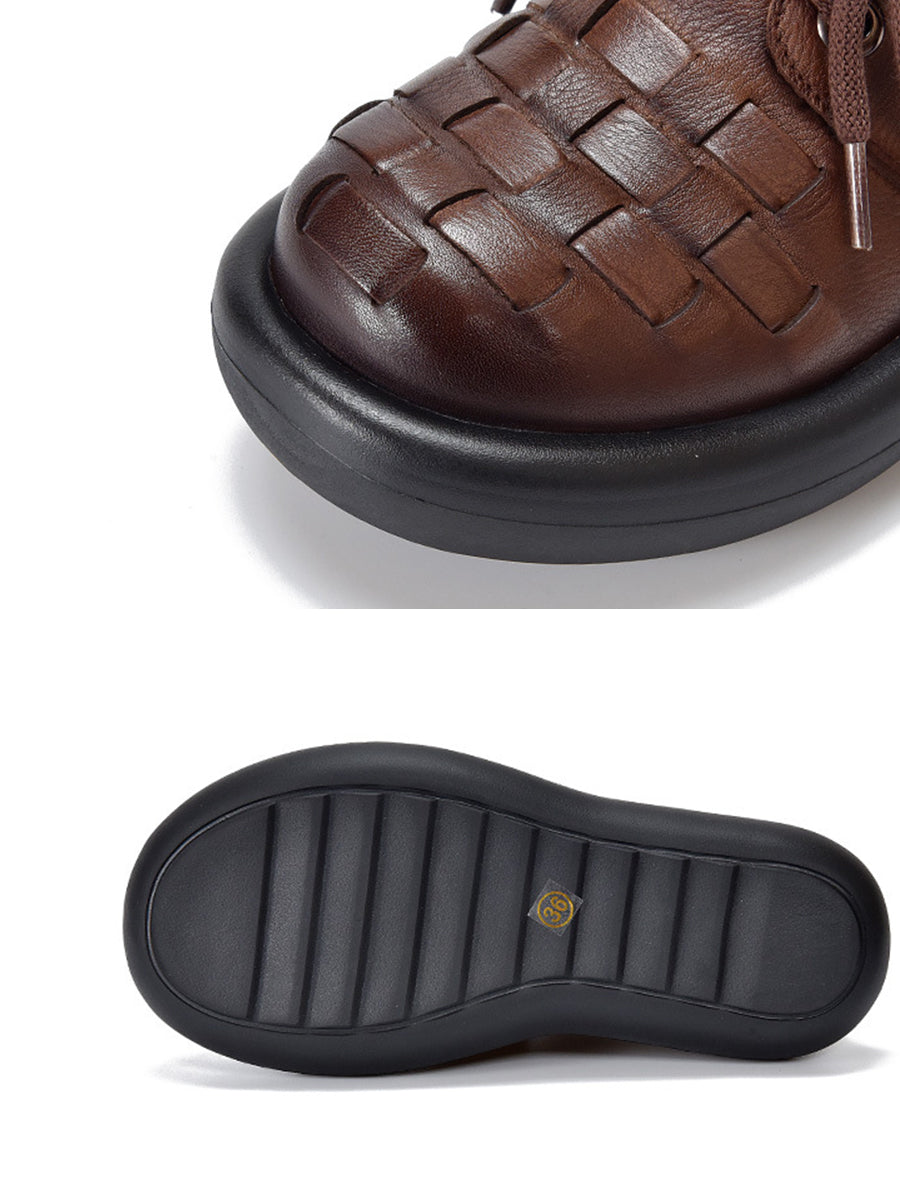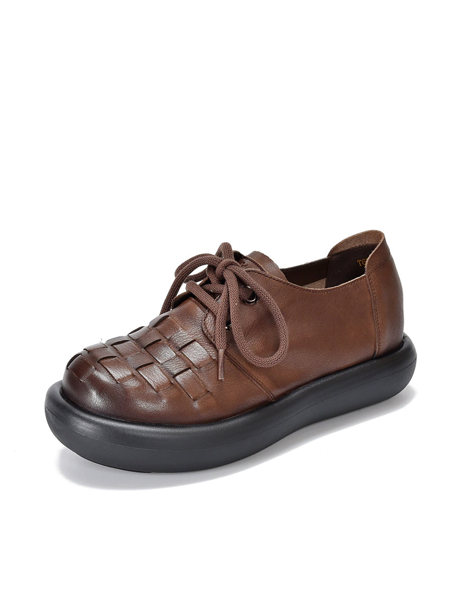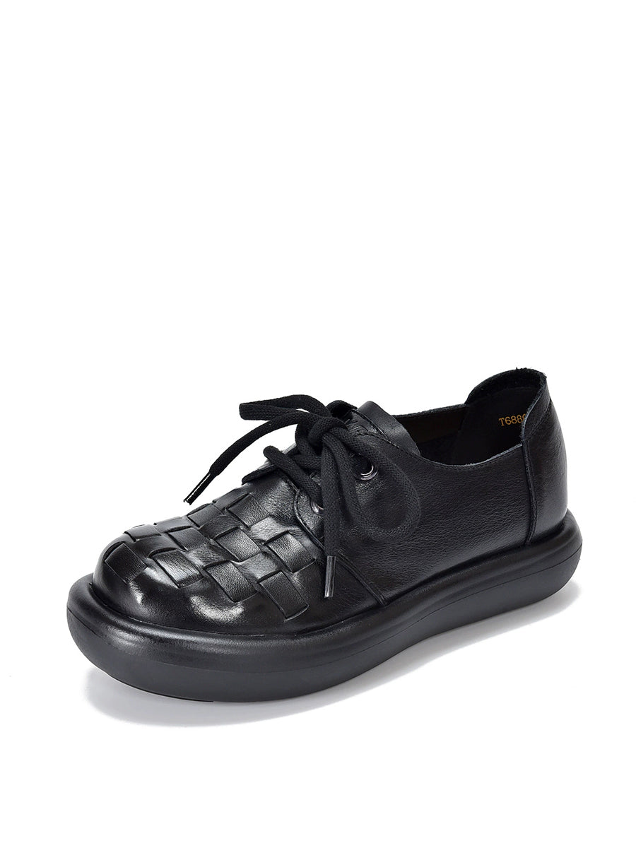 Sapatos femininos de primavera em couro legítimo trançado, estilo rasteiro.