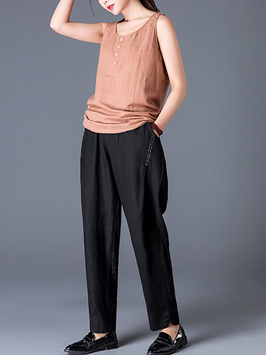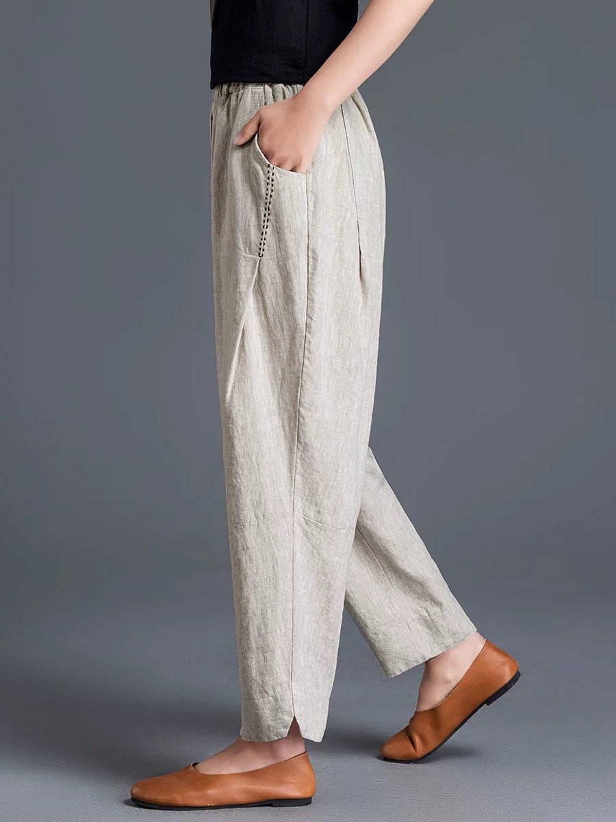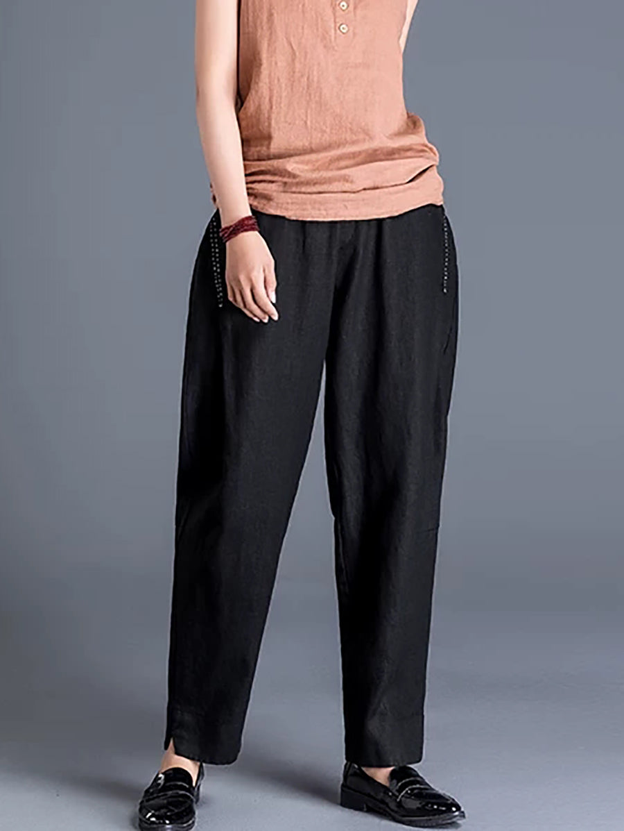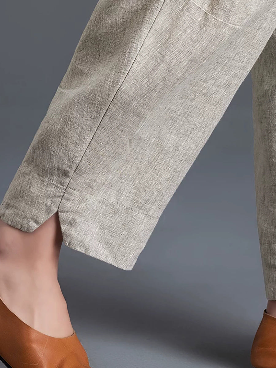Calças Harem Femininas de Algodão e Linho em Cores Lisas para a Primavera