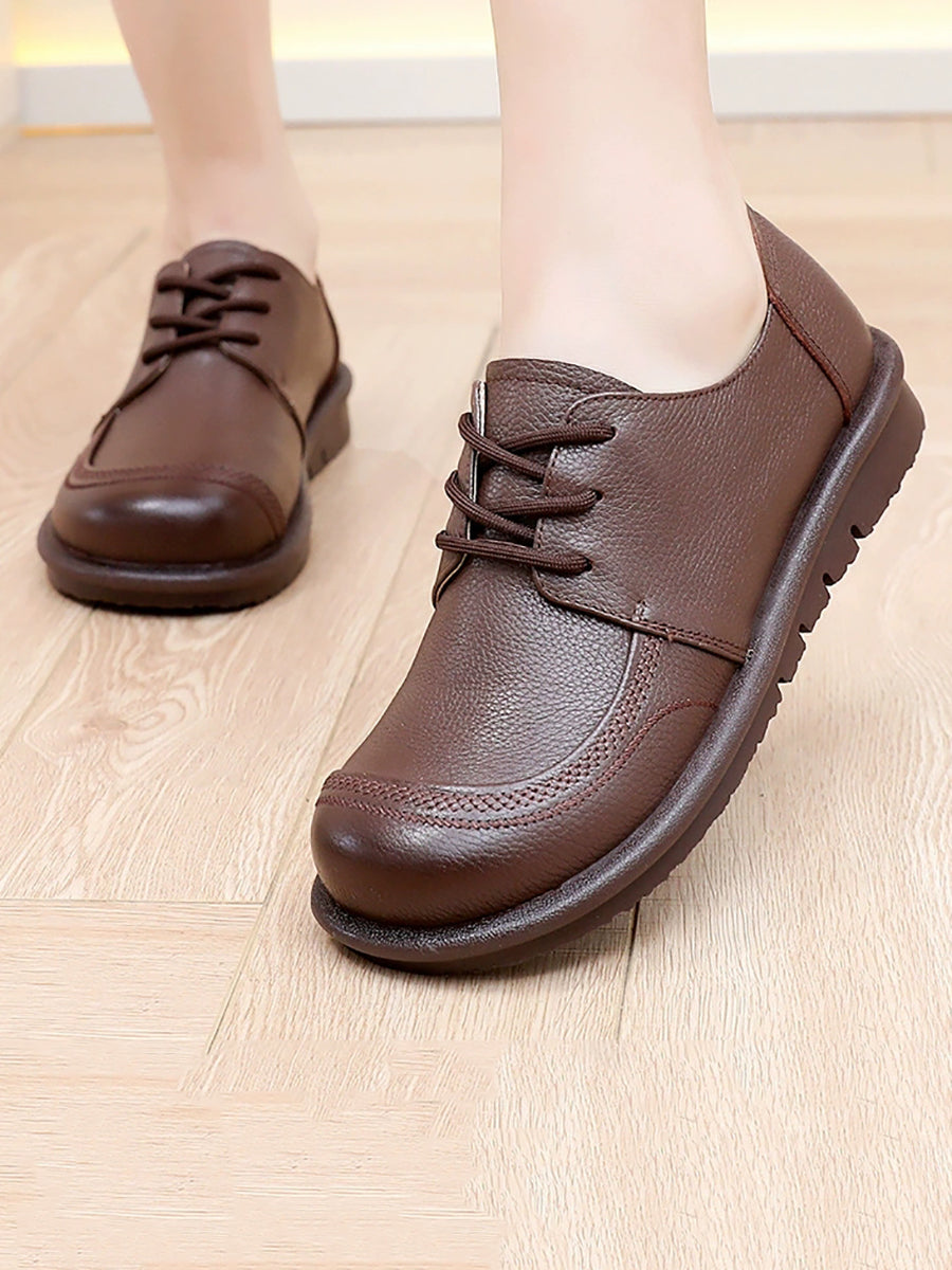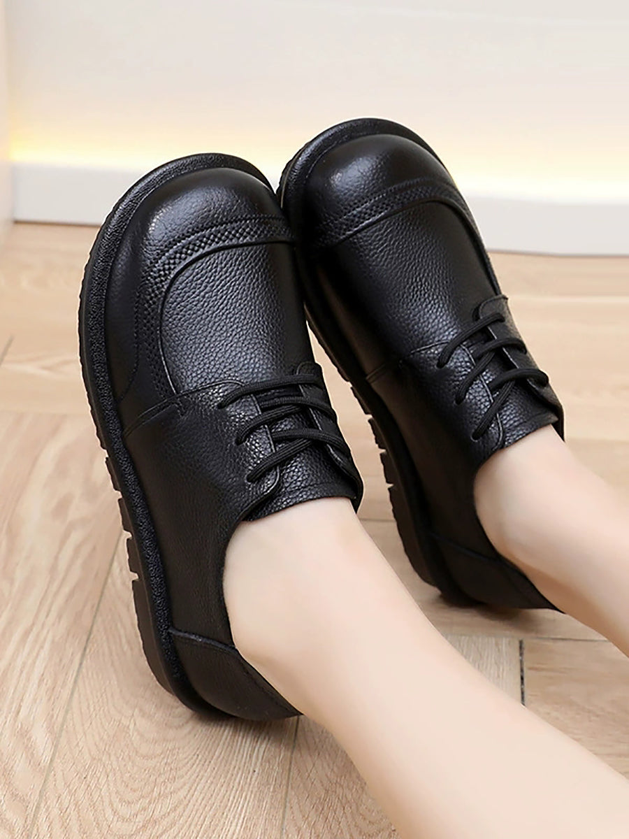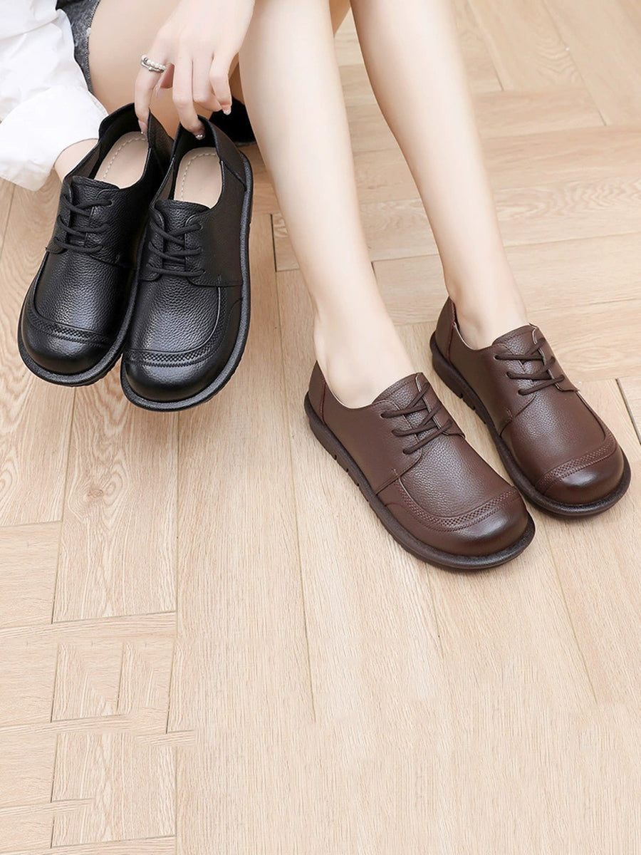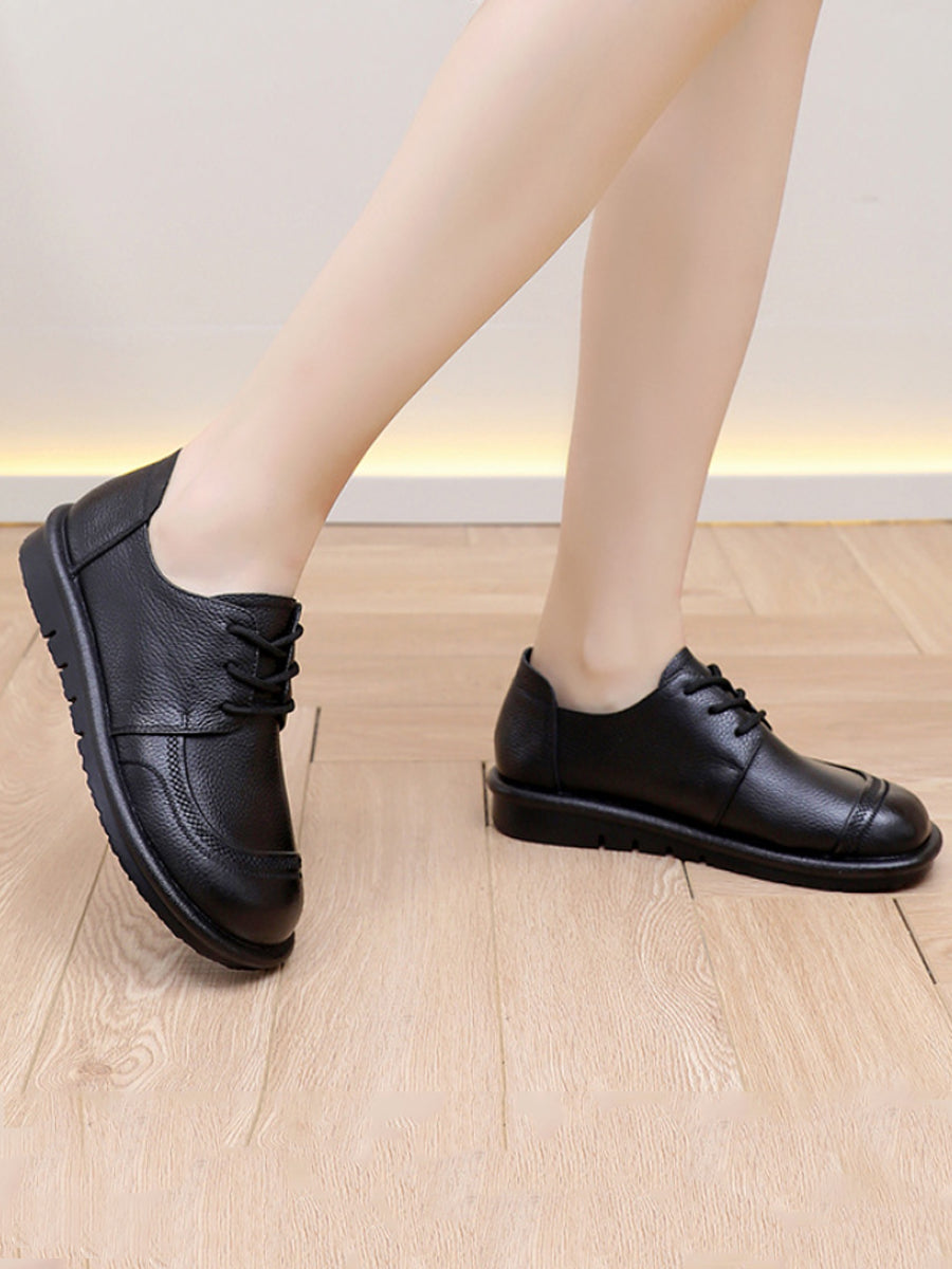 Sapatos femininos de primavera em couro legítimo de cor lisa.