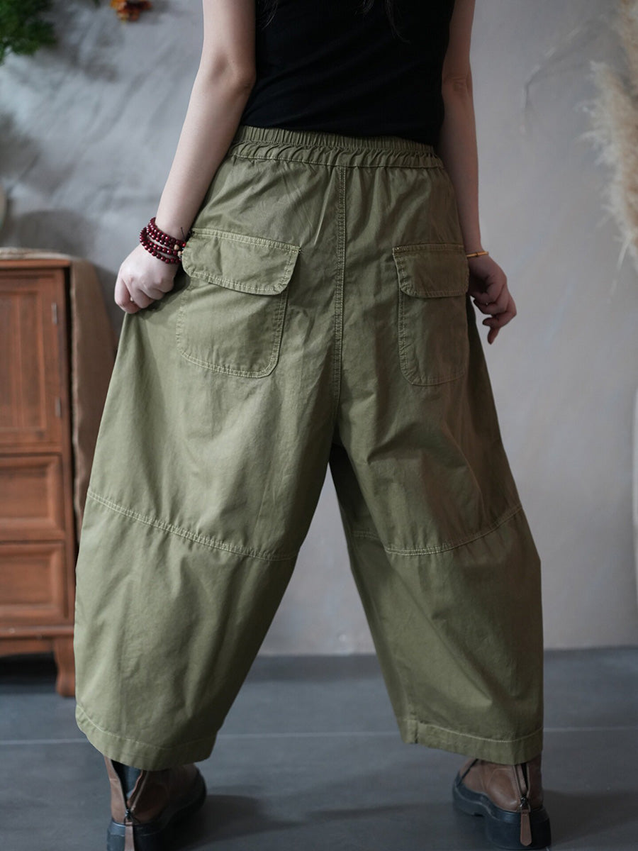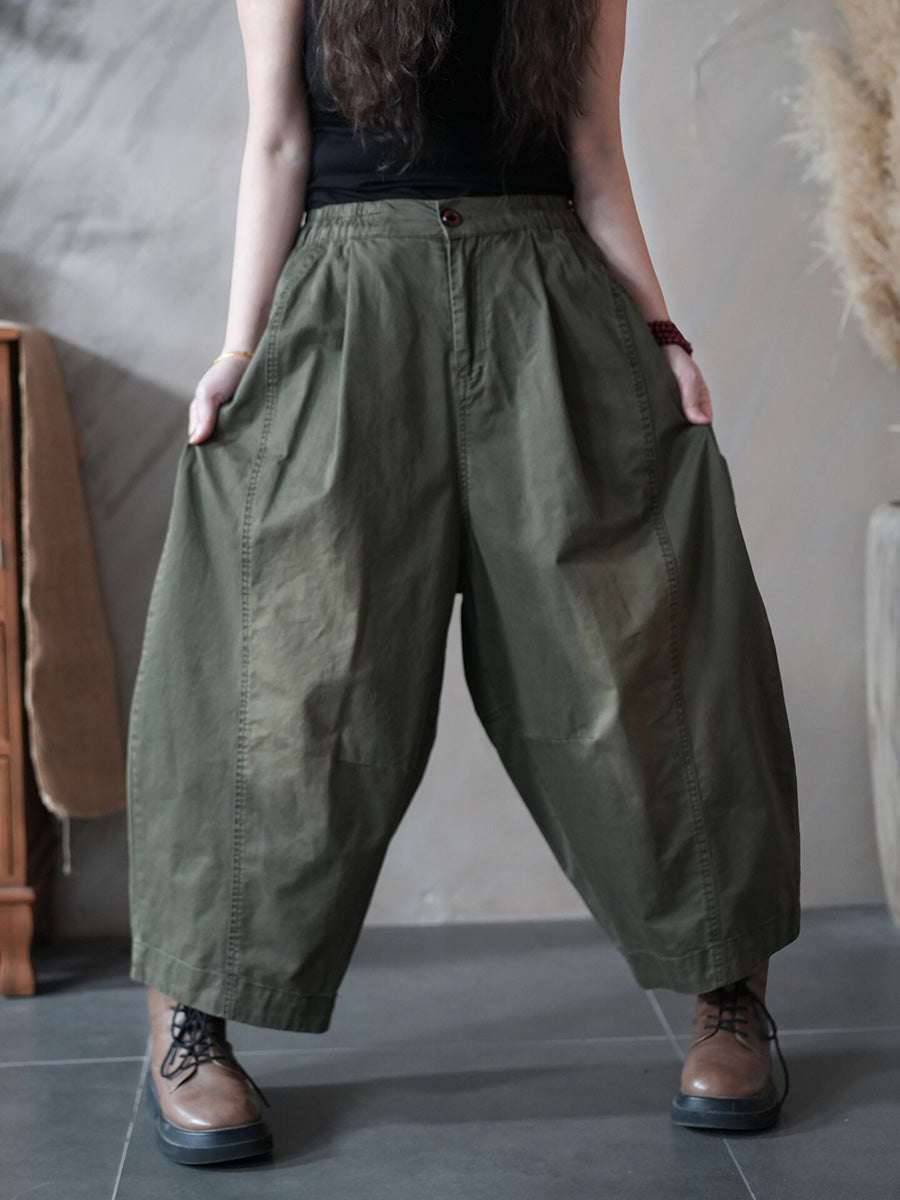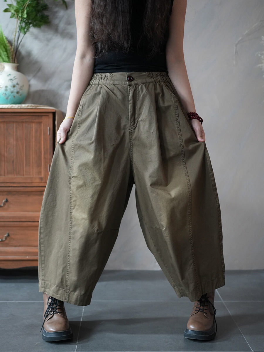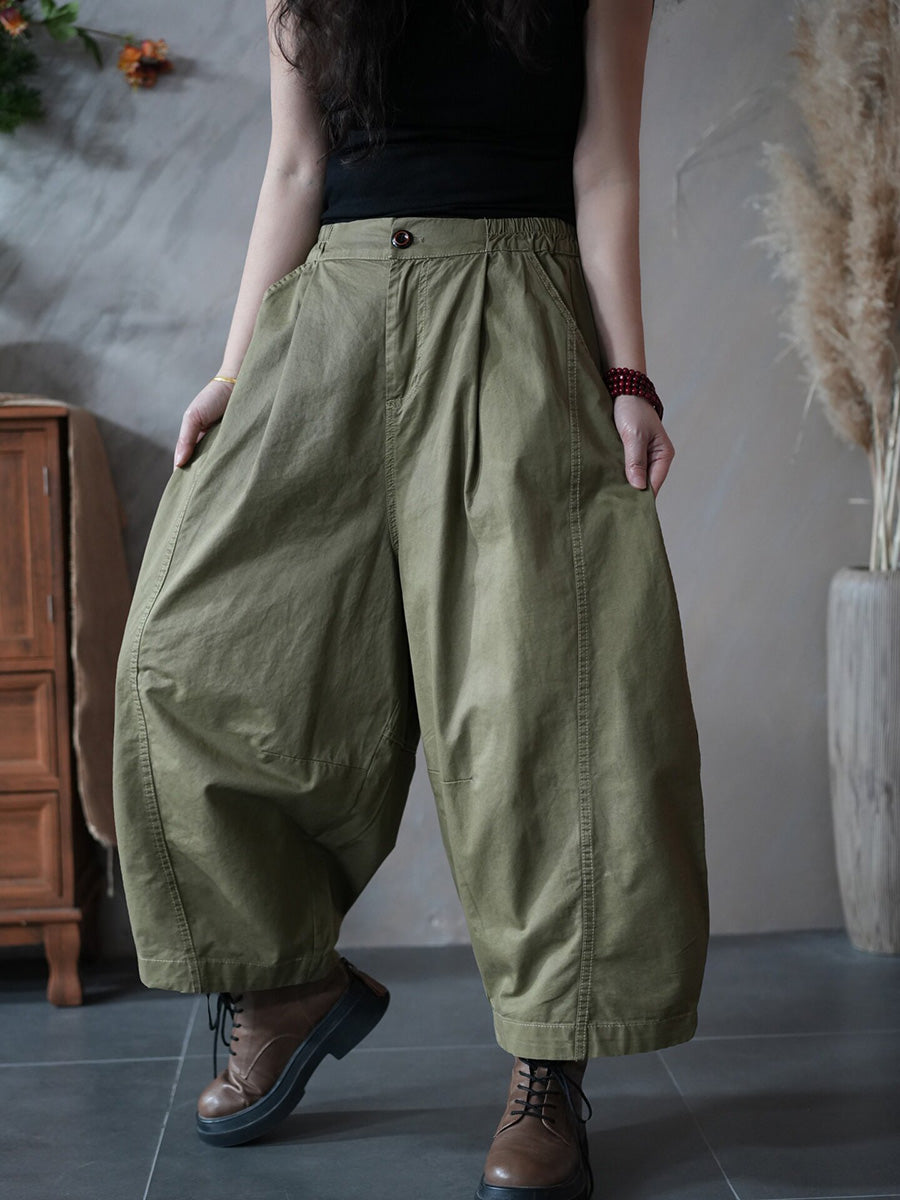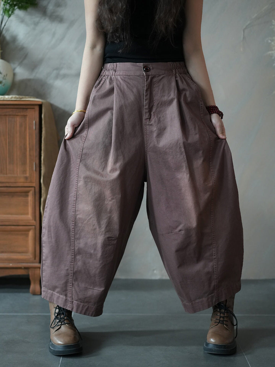 Calças Harem Femininas Retrô Primavera Cor Lisa