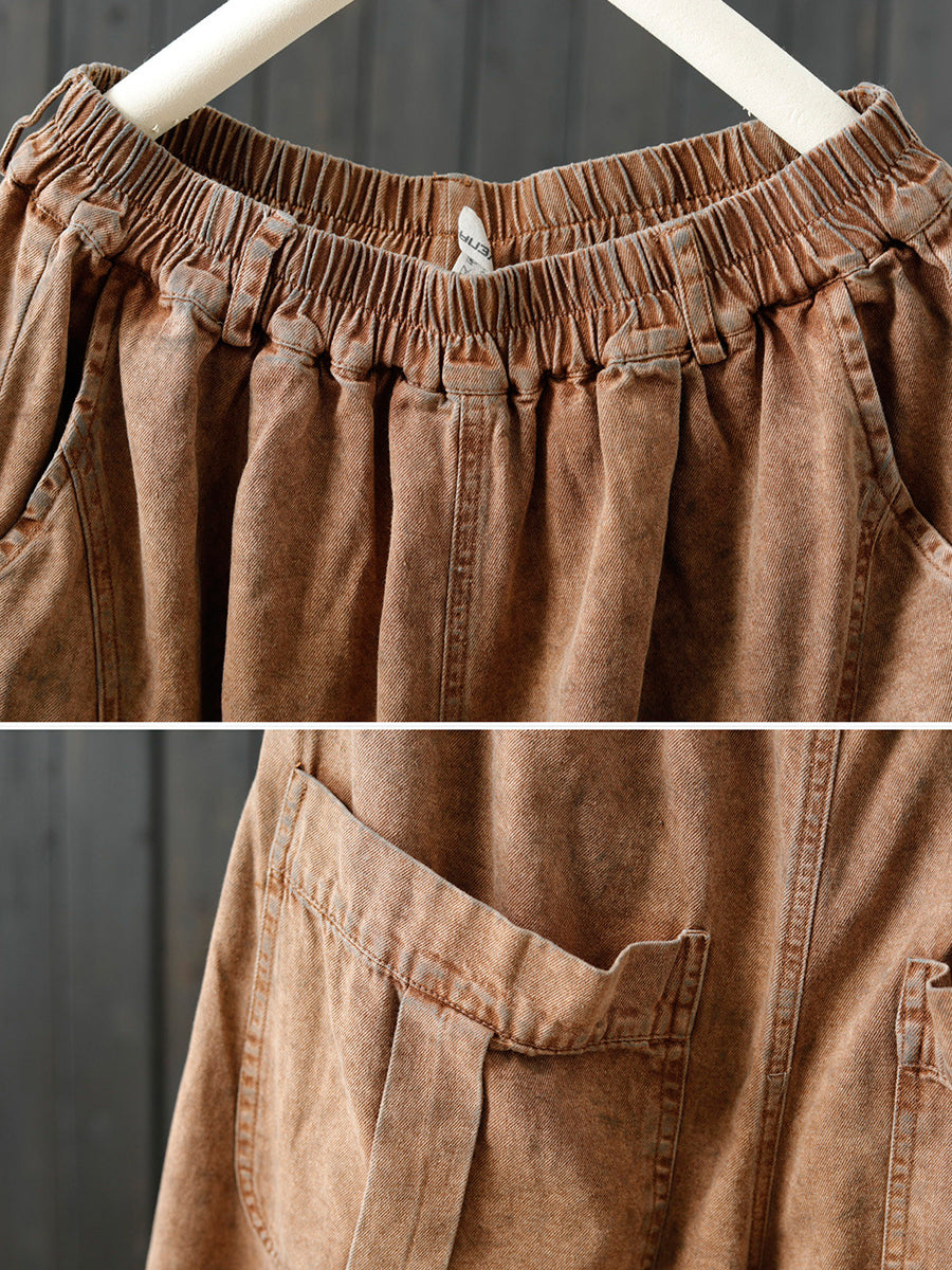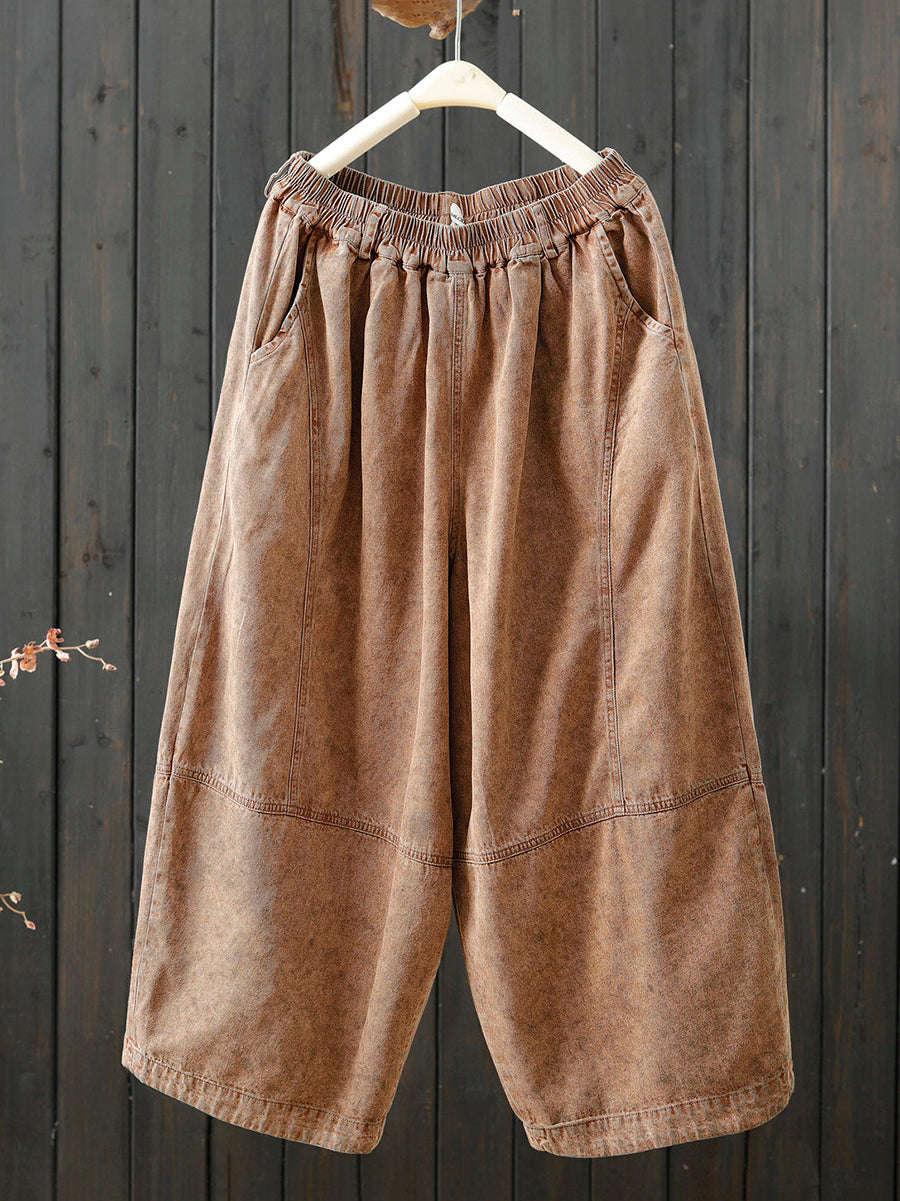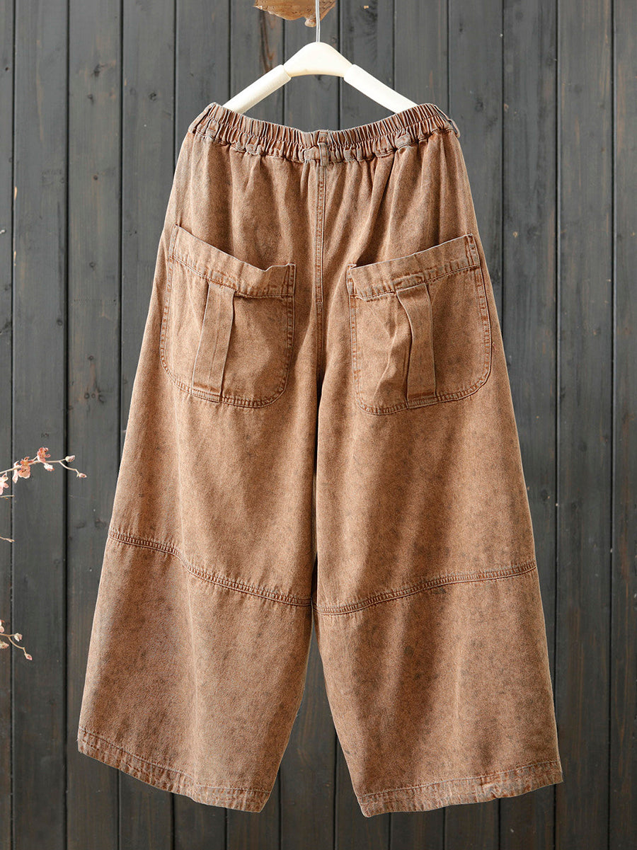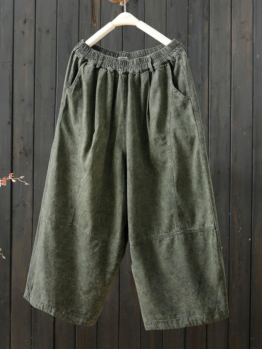 Calça feminina retrô de primavera, cor lisa, pernas largas