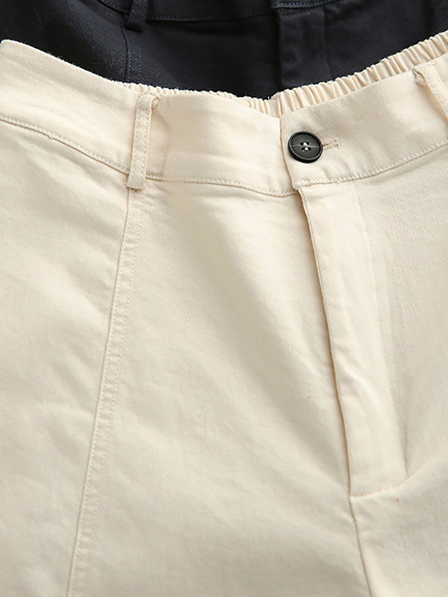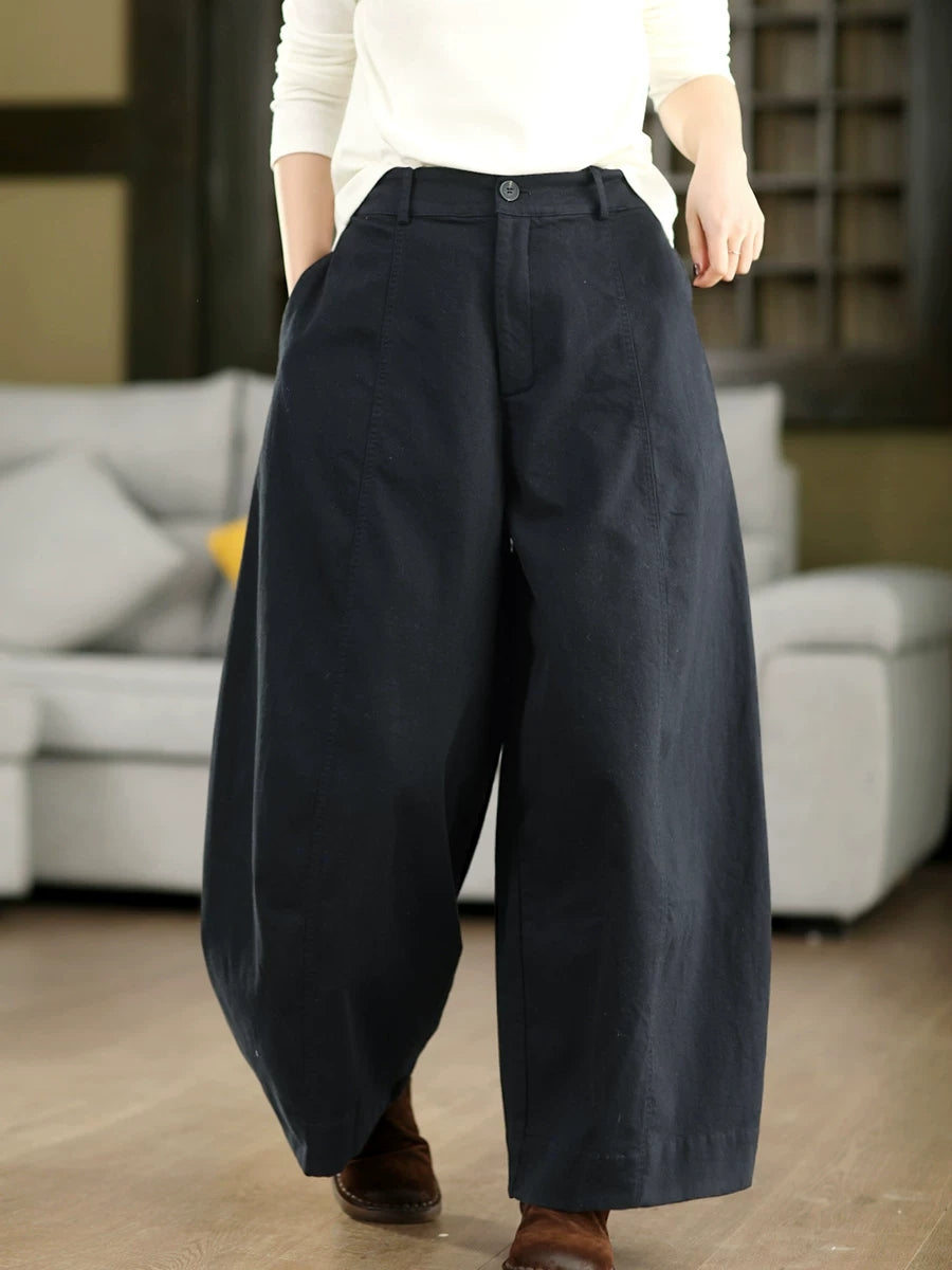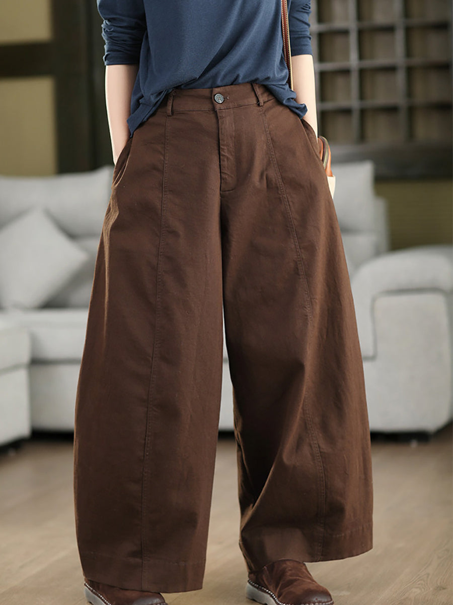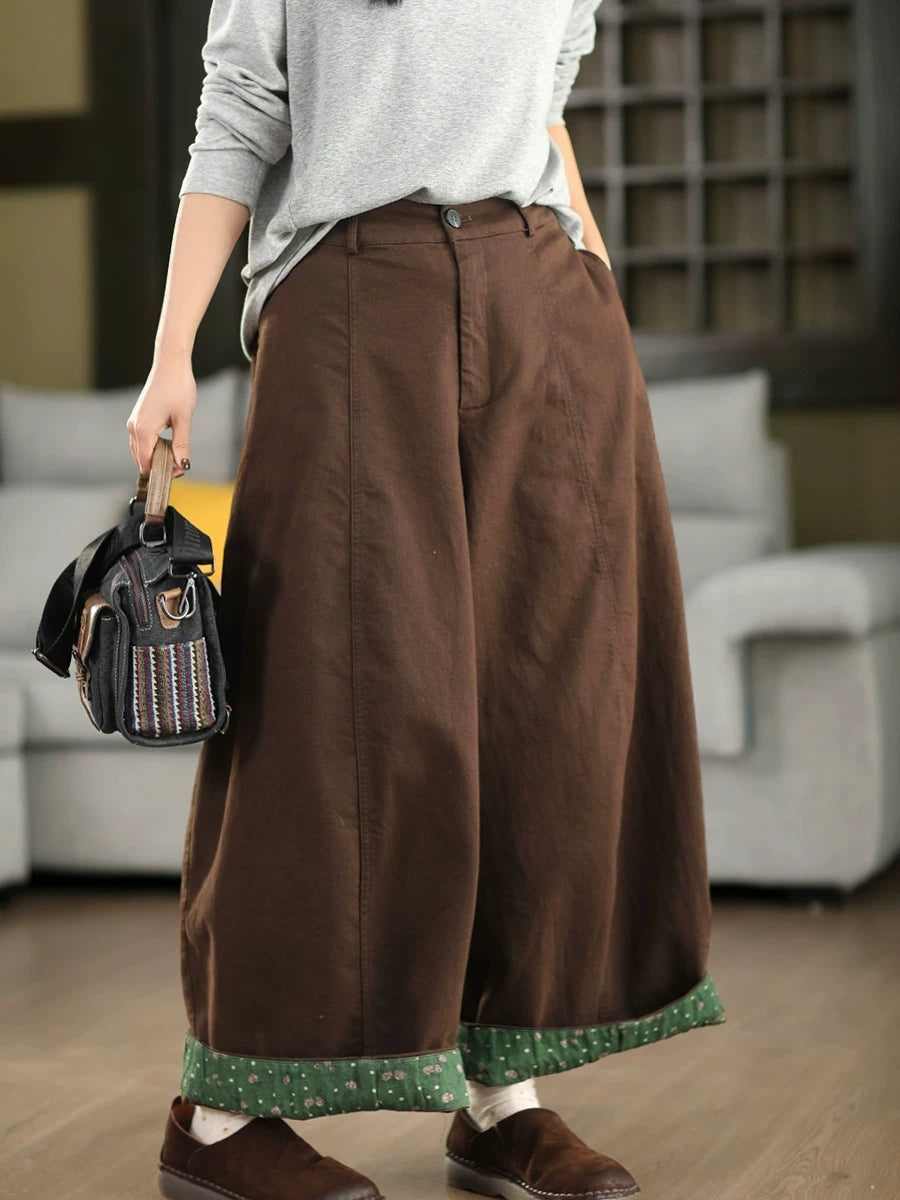 Calça feminina de algodão retrô de pernas largas para a primavera