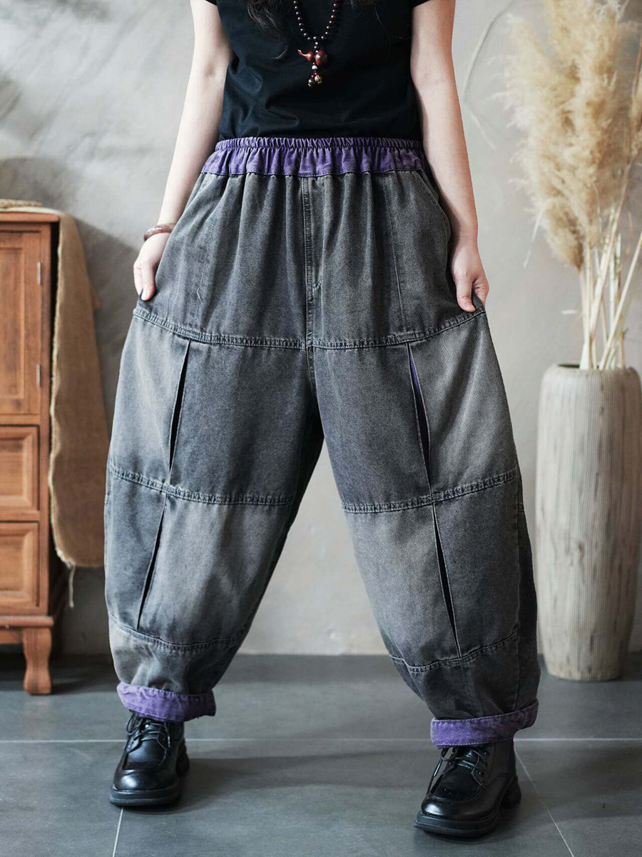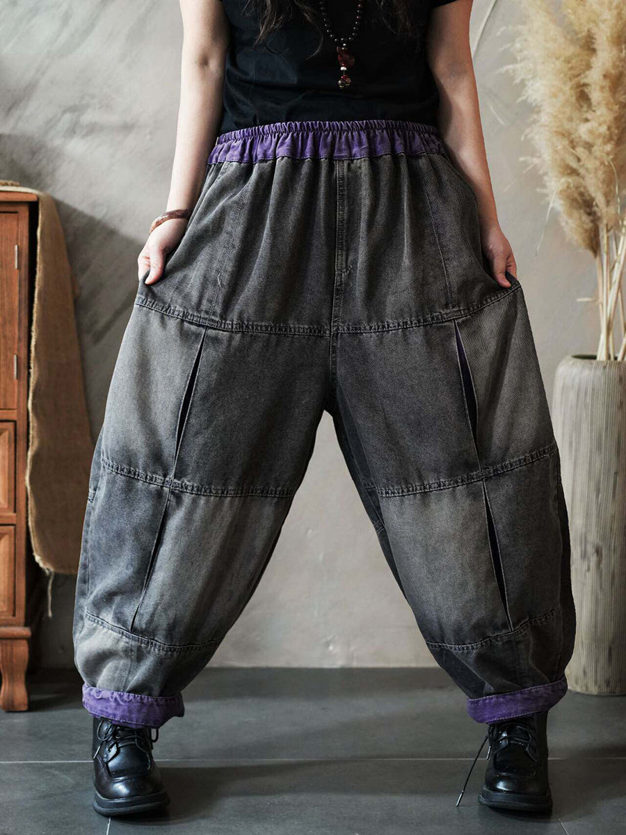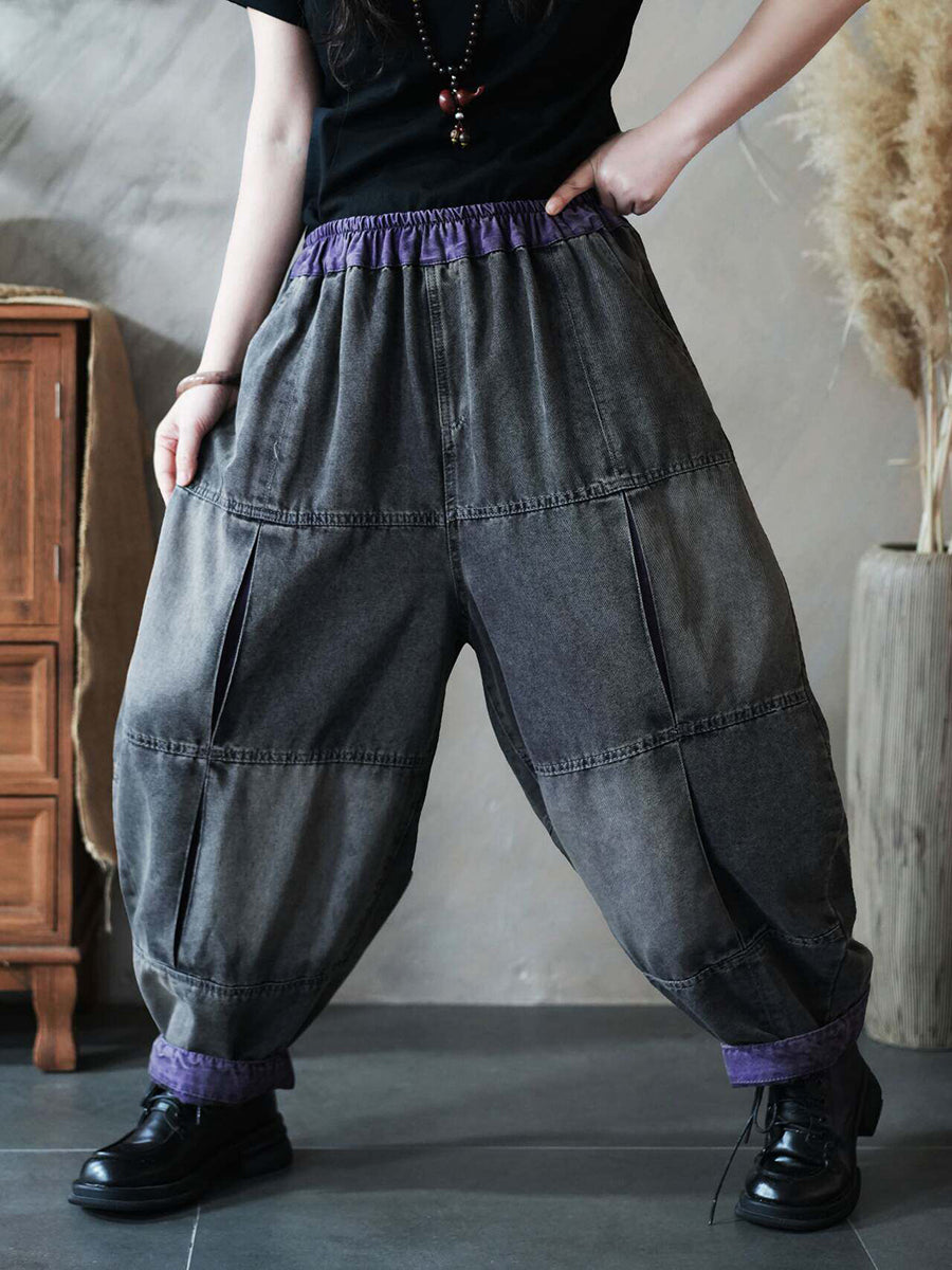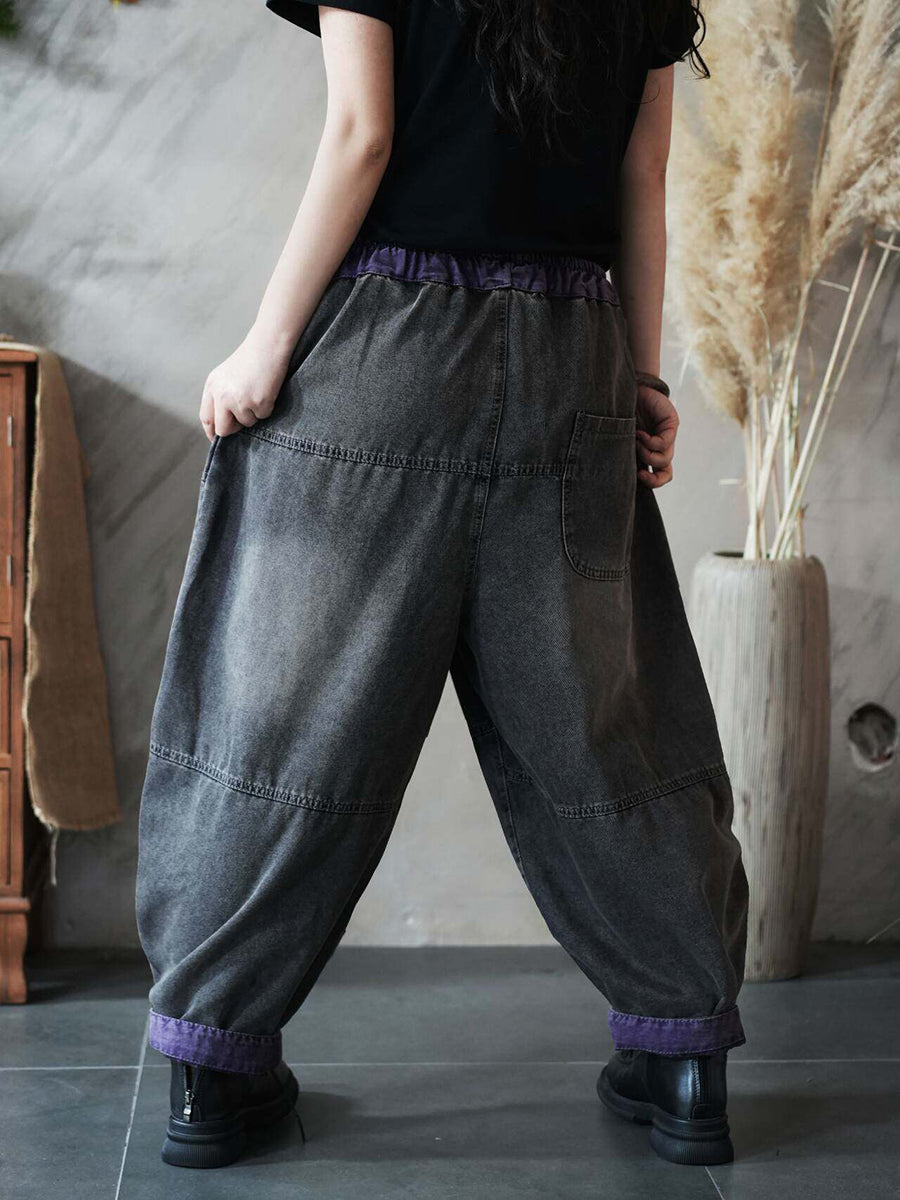 Calça Harem Feminina Vintage de Primavera em Jeans com Recortes