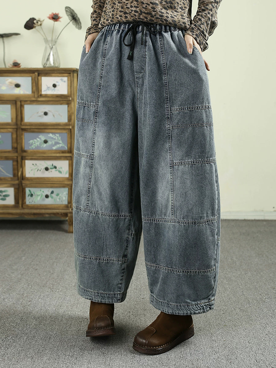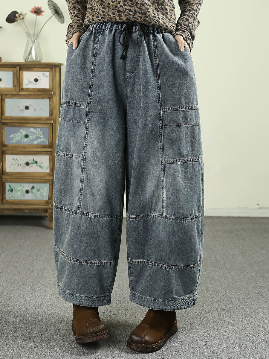 Calça feminina de primavera vintage em jeans com recortes e pernas largas