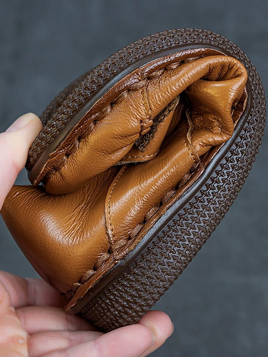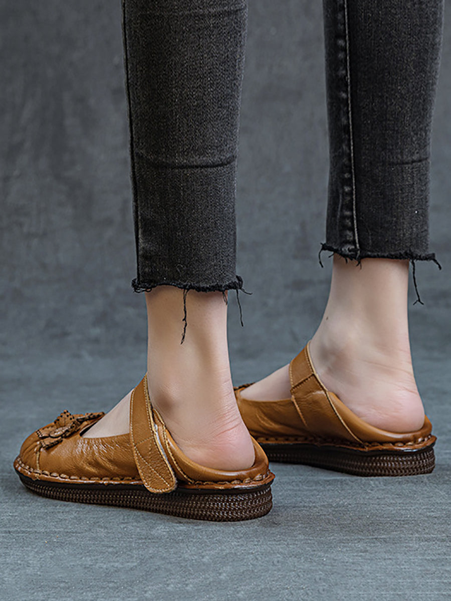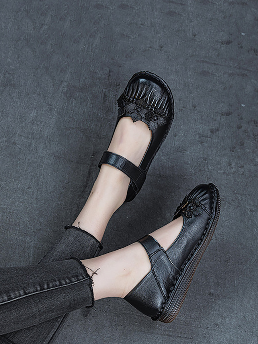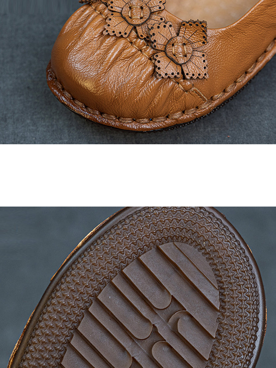 Sapatos femininos de primavera vintage com estampa floral e sapatos baixos de couro.