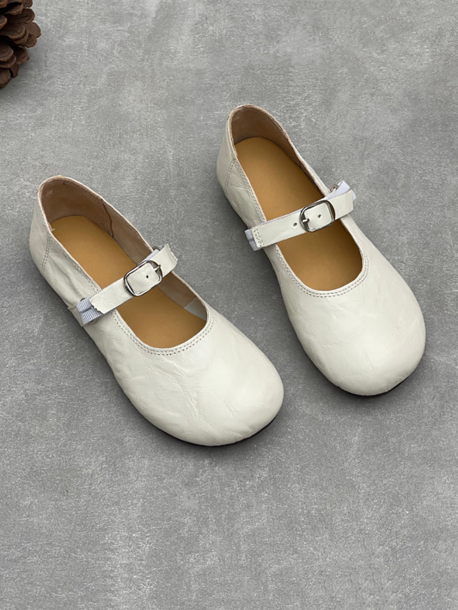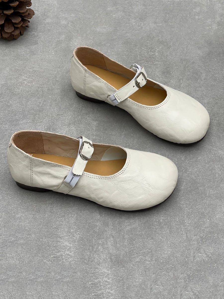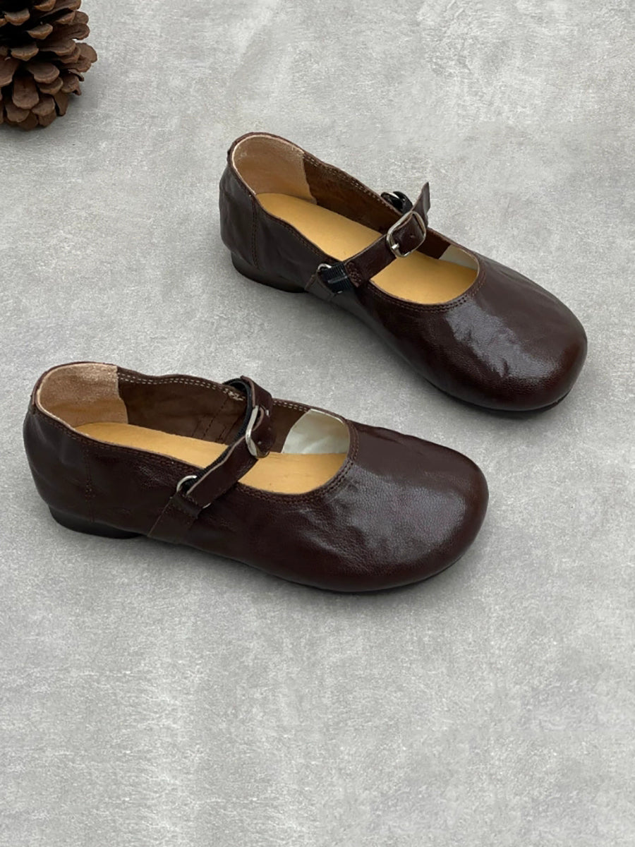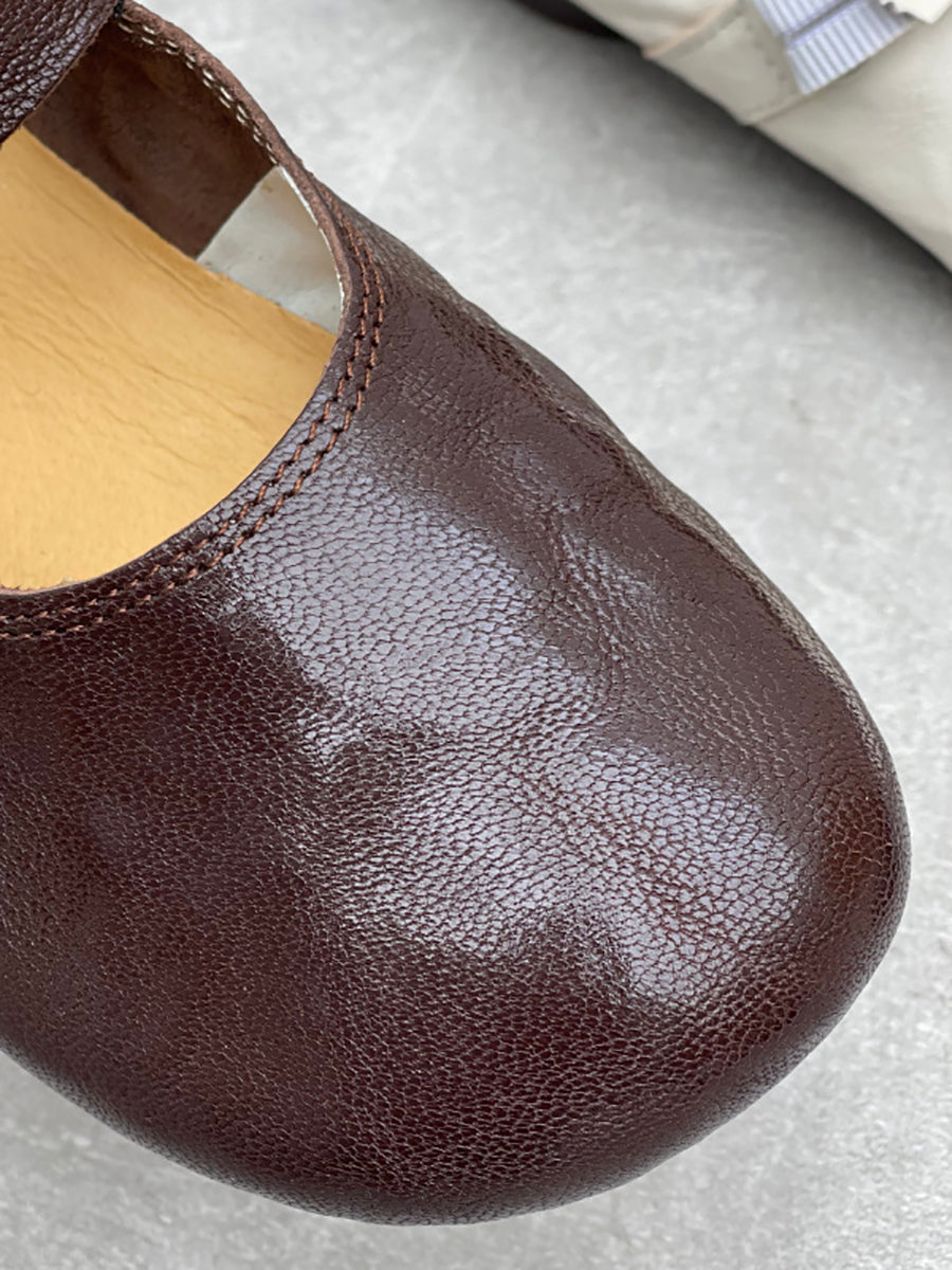Sapatos femininos de salto baixo em couro legítimo estilo vintage para a primavera