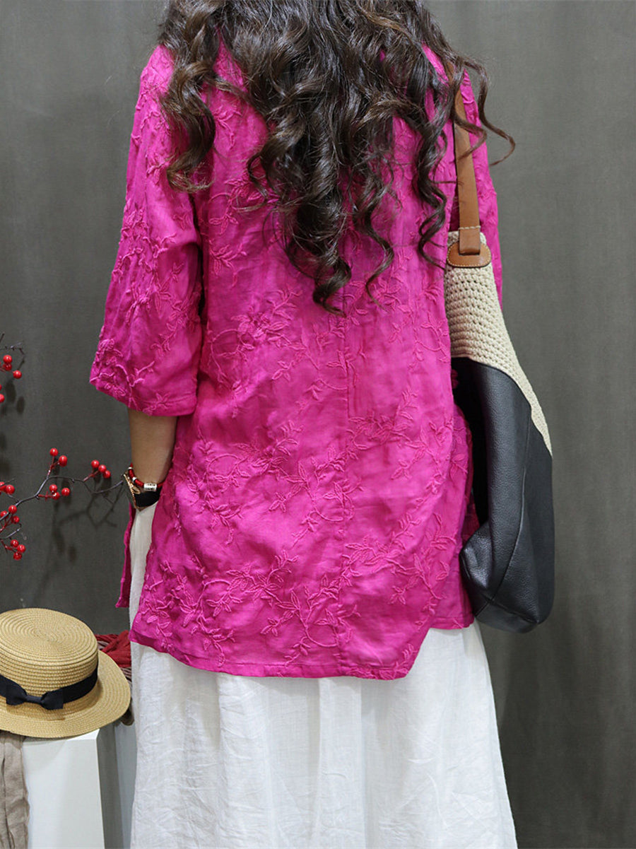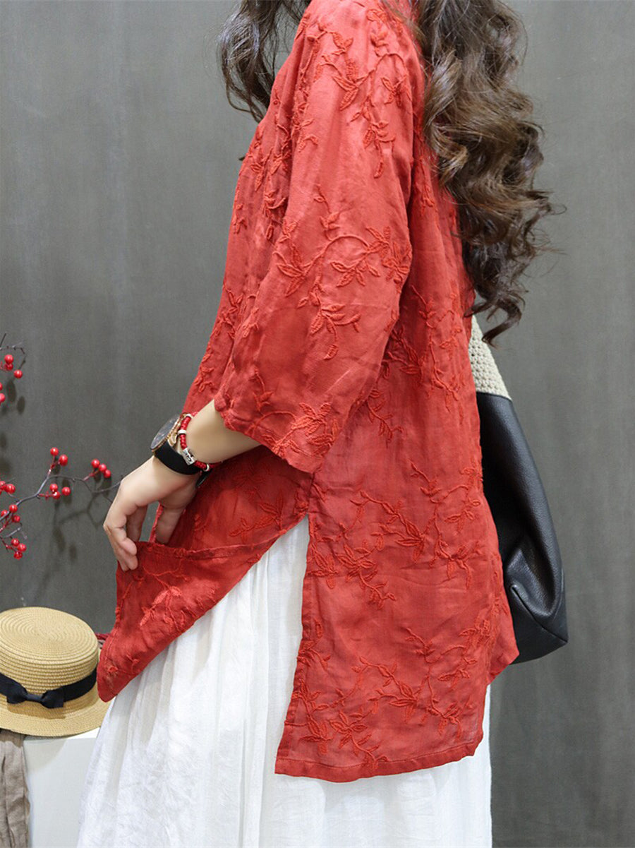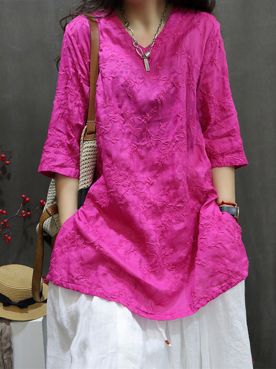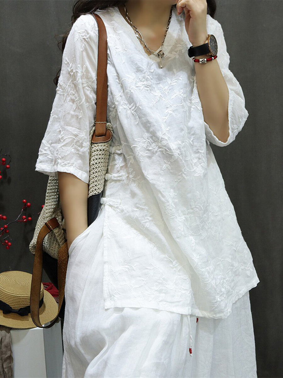 Blusa feminina de verão com bordado artístico, 100% rami, decote em V.