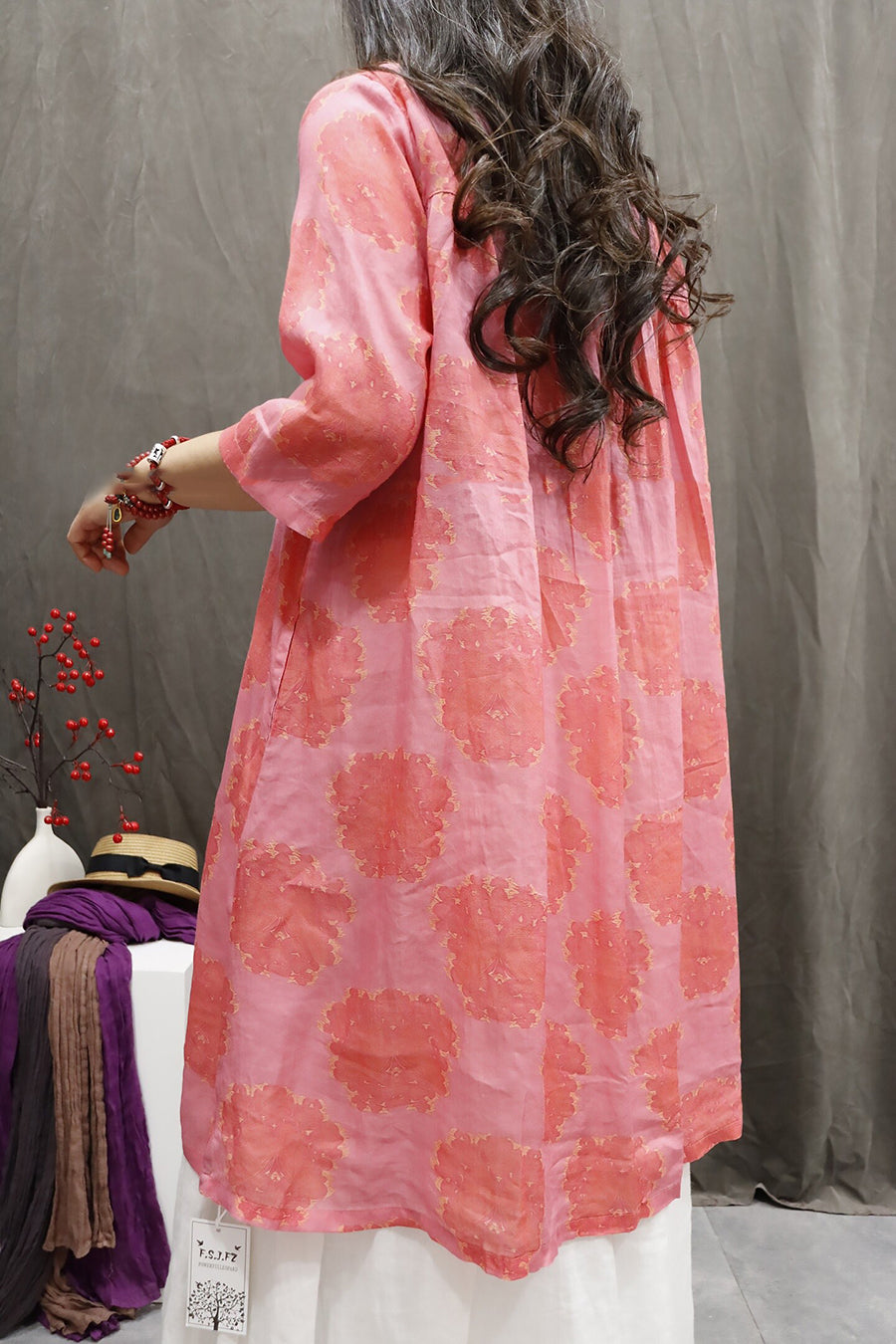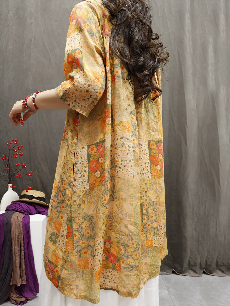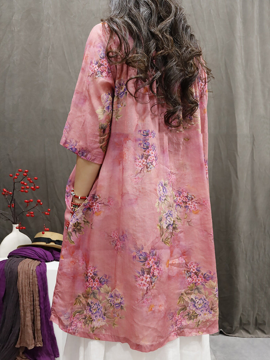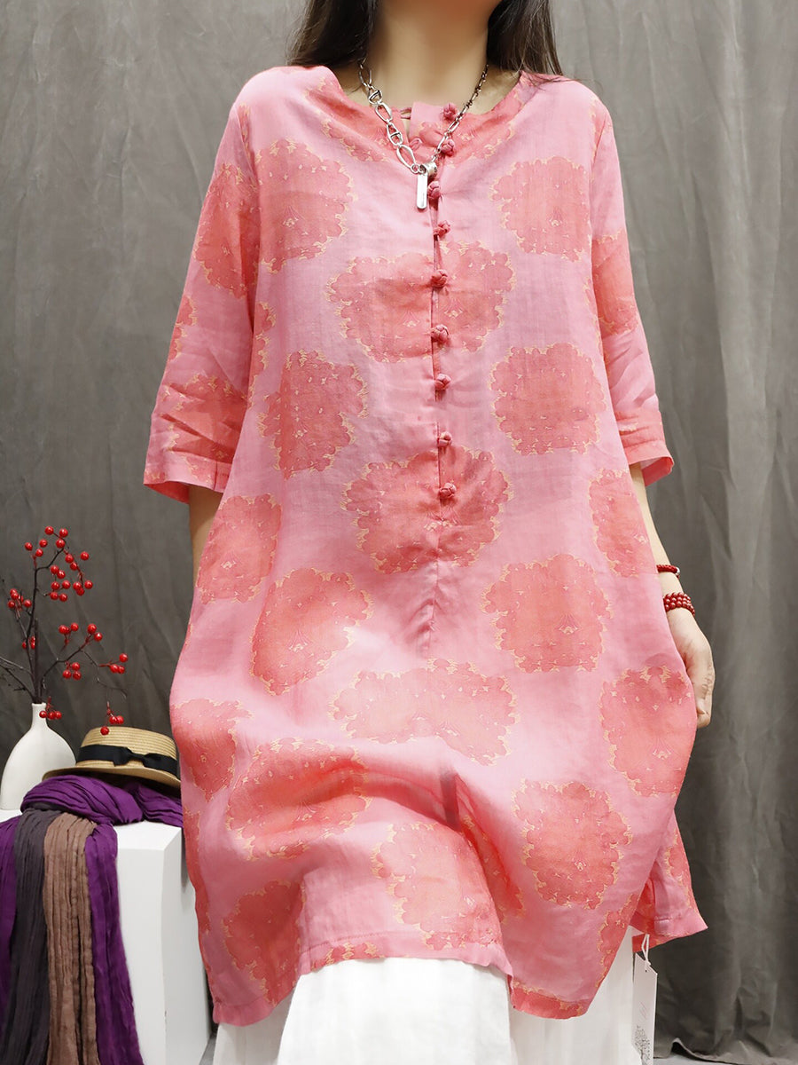 Blusa feminina de verão com estampa floral artística, 100% rami, gola redonda.