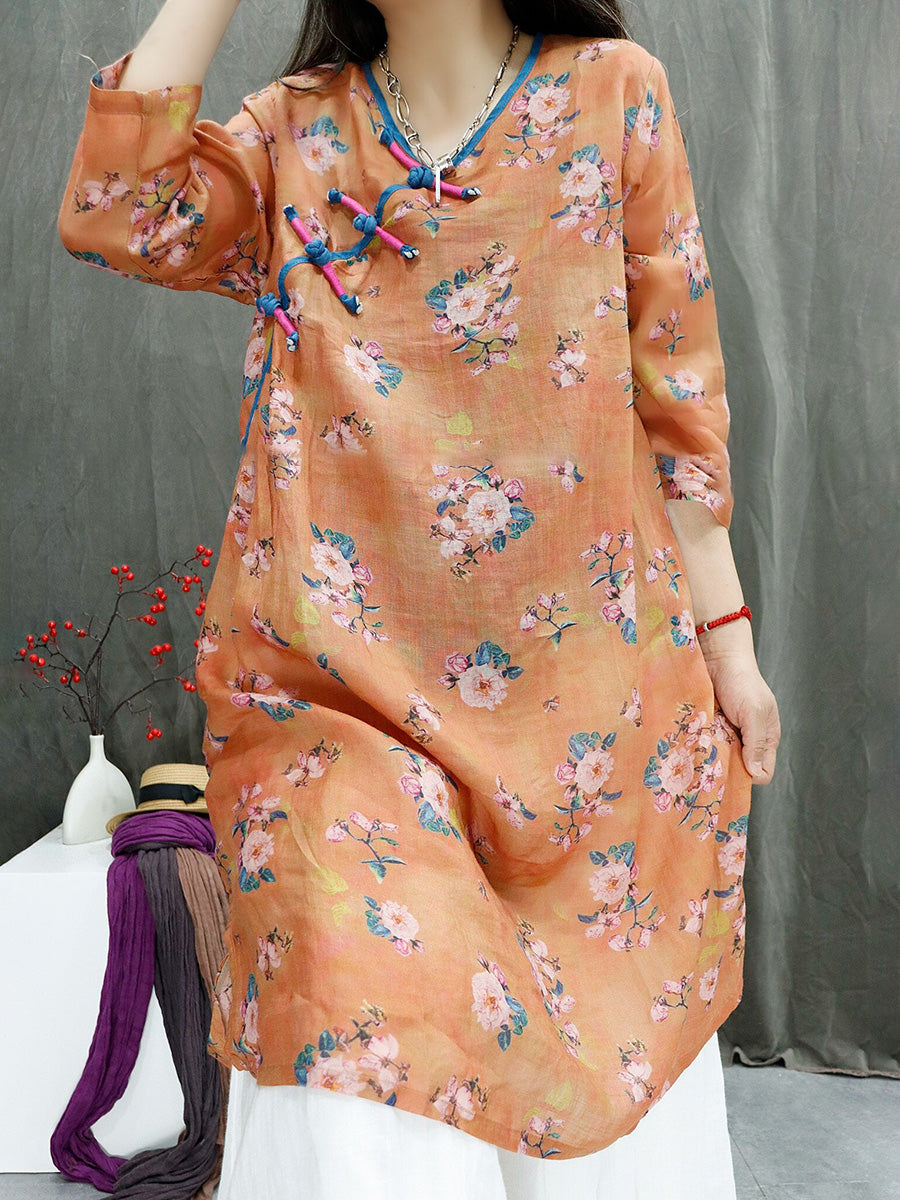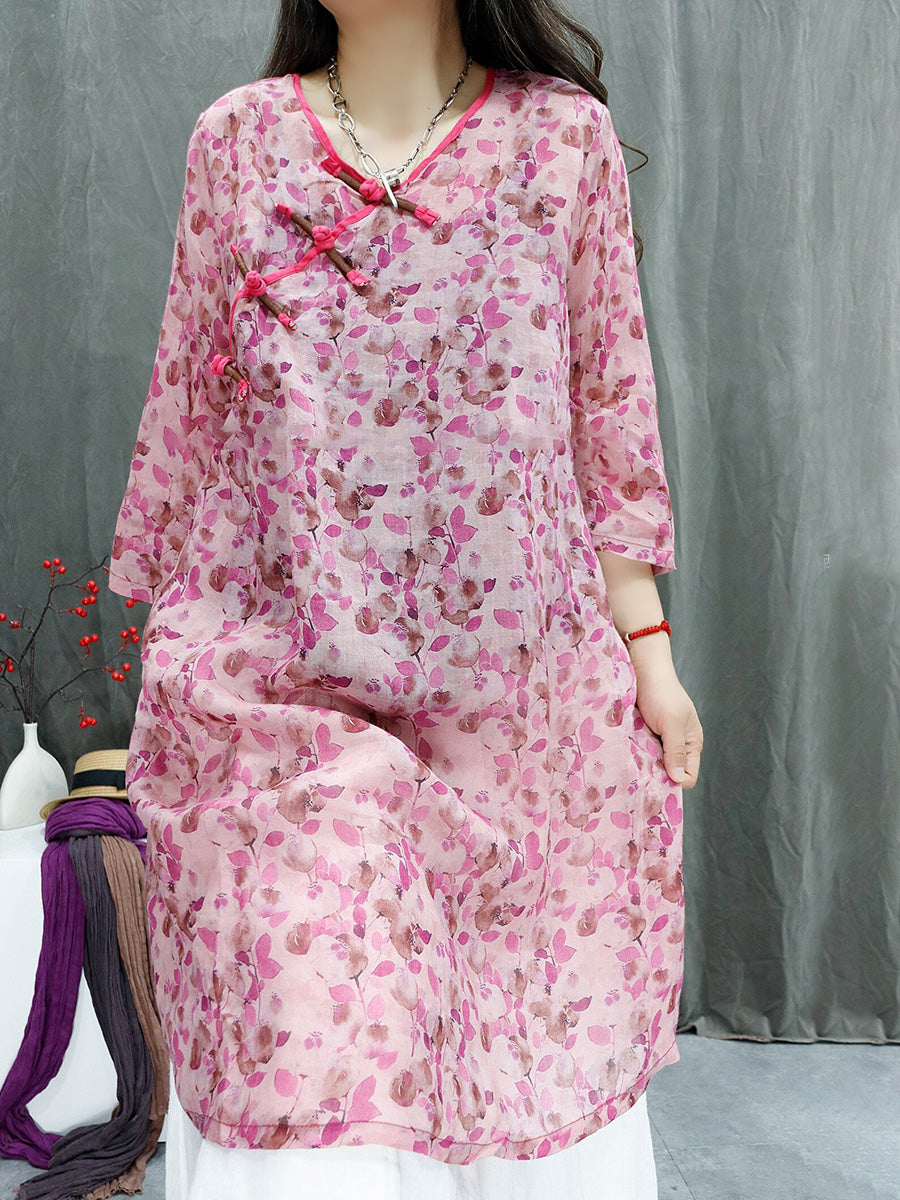 Blusa feminina de verão com estampa floral artística, 100% rami, decote em V.