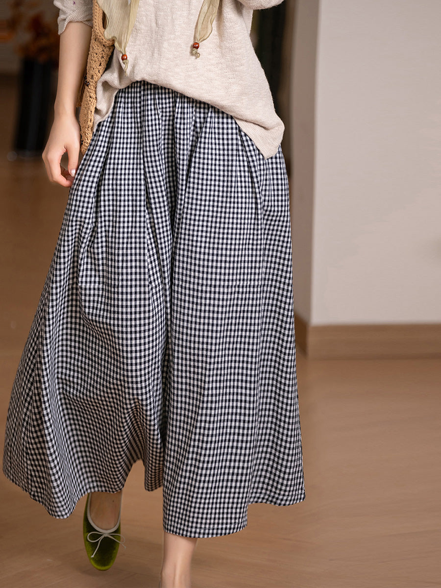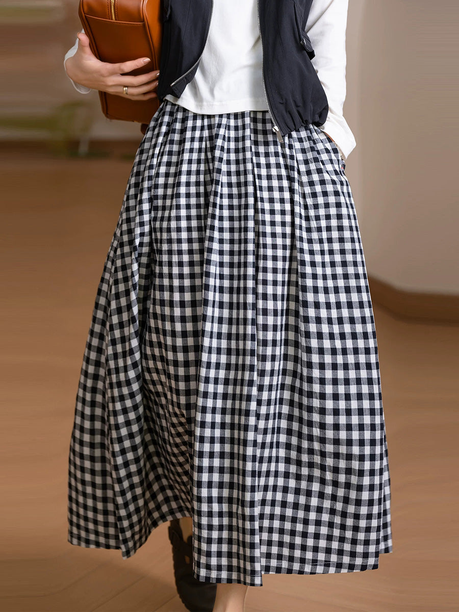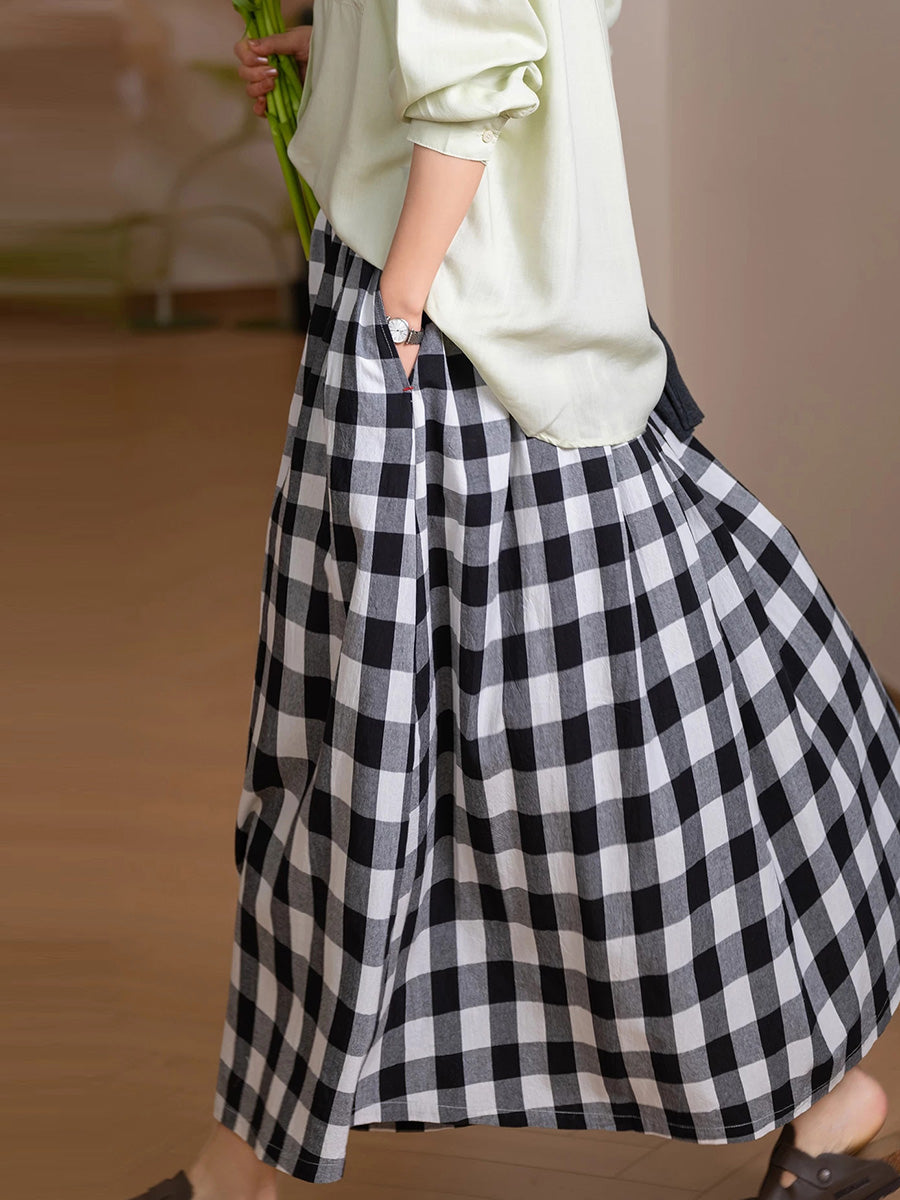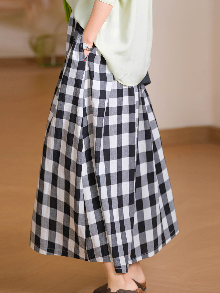 Saia feminina de verão com estampa xadrez artística, 100% algodão.