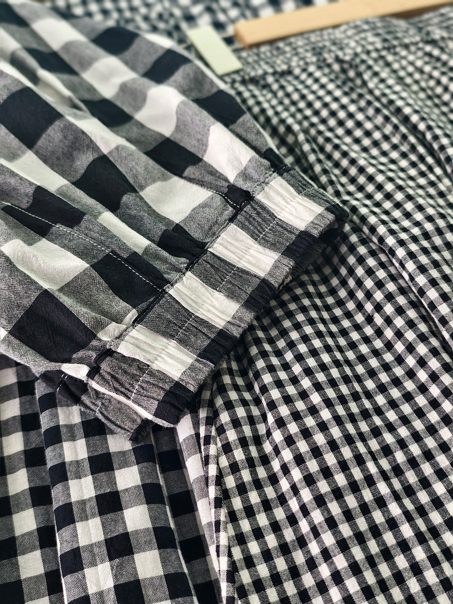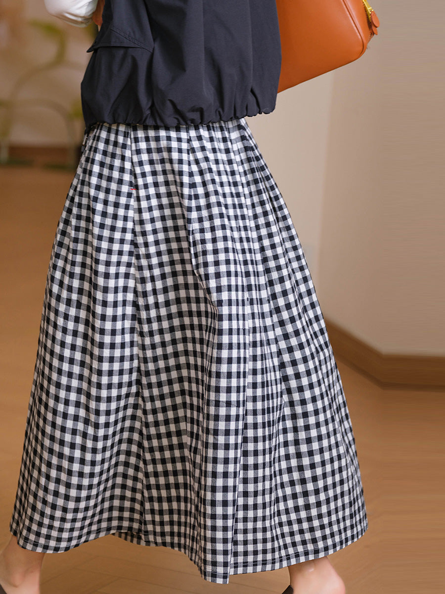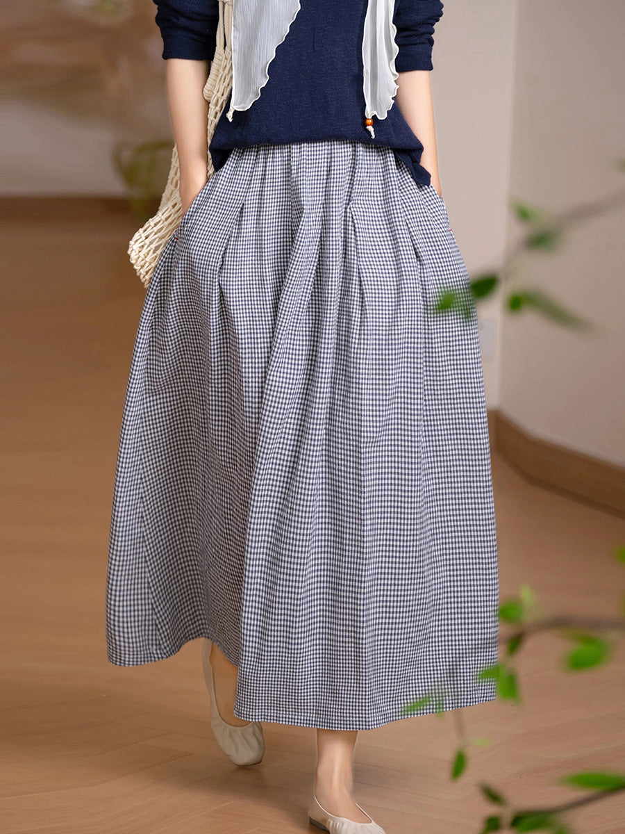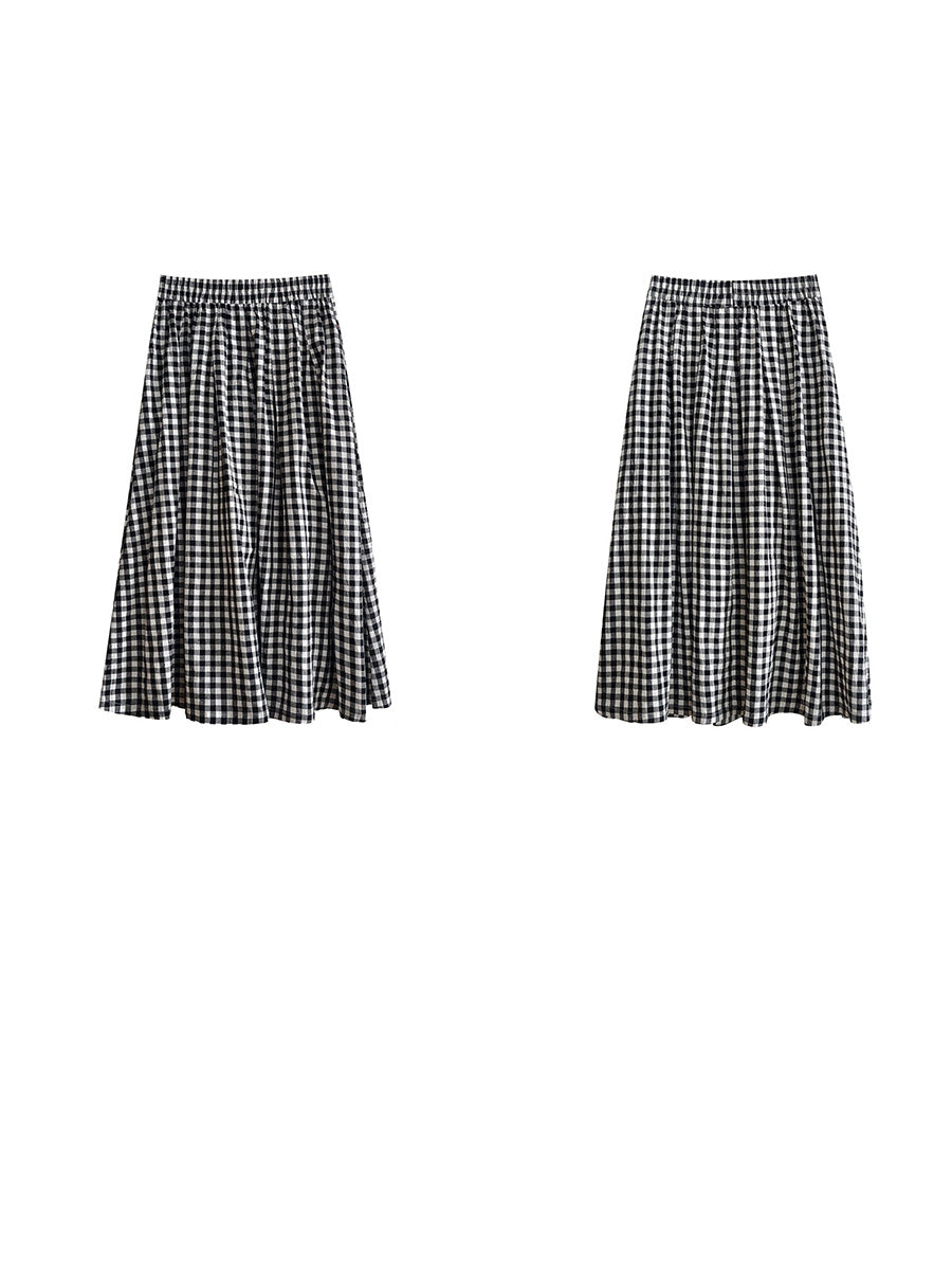 Saia feminina de verão com estampa xadrez artística, 100% algodão.