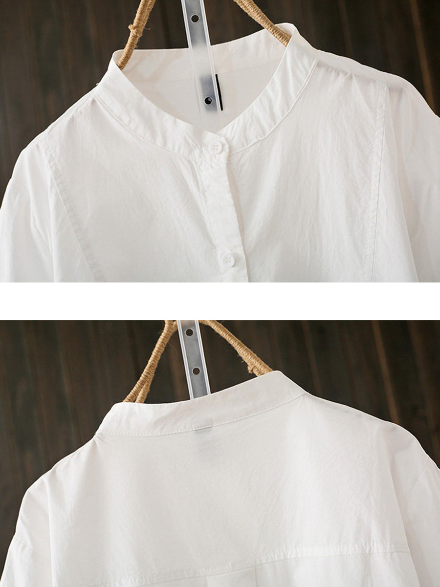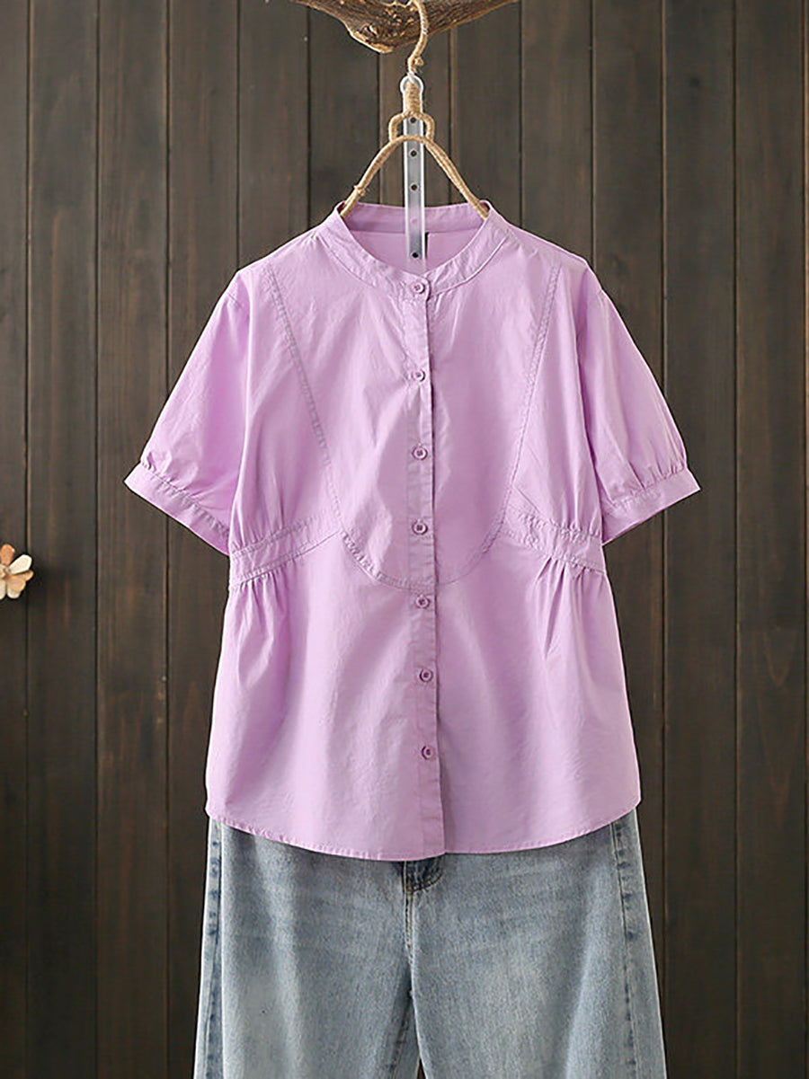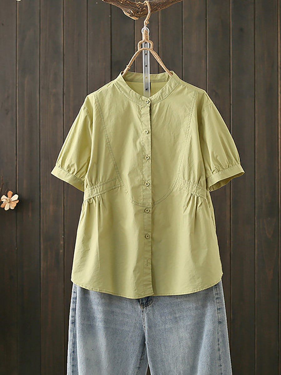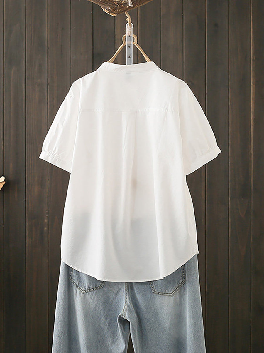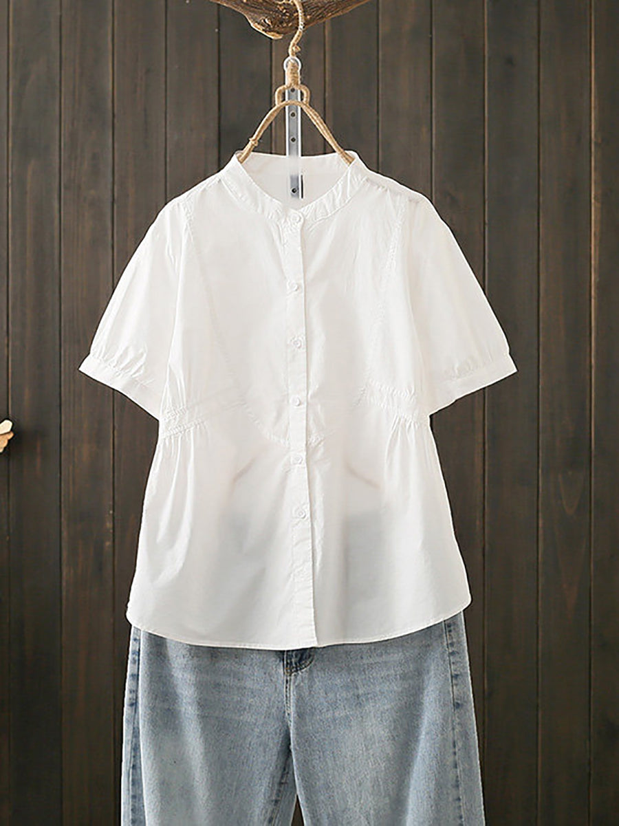 Blusa feminina de algodão com gola alta, estilo artístico, para o verão.