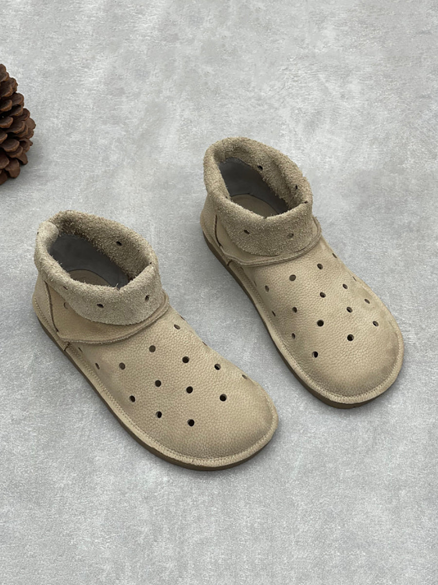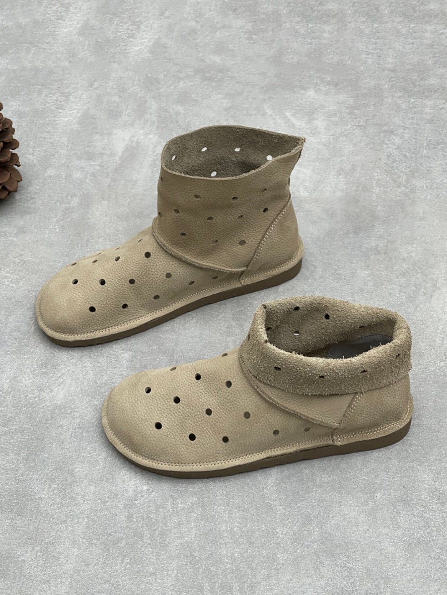 Botas/Sandálias Femininas de Verão Casuais em Couro Genuíno com Furos