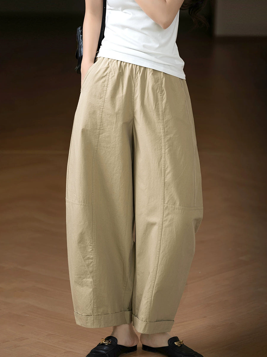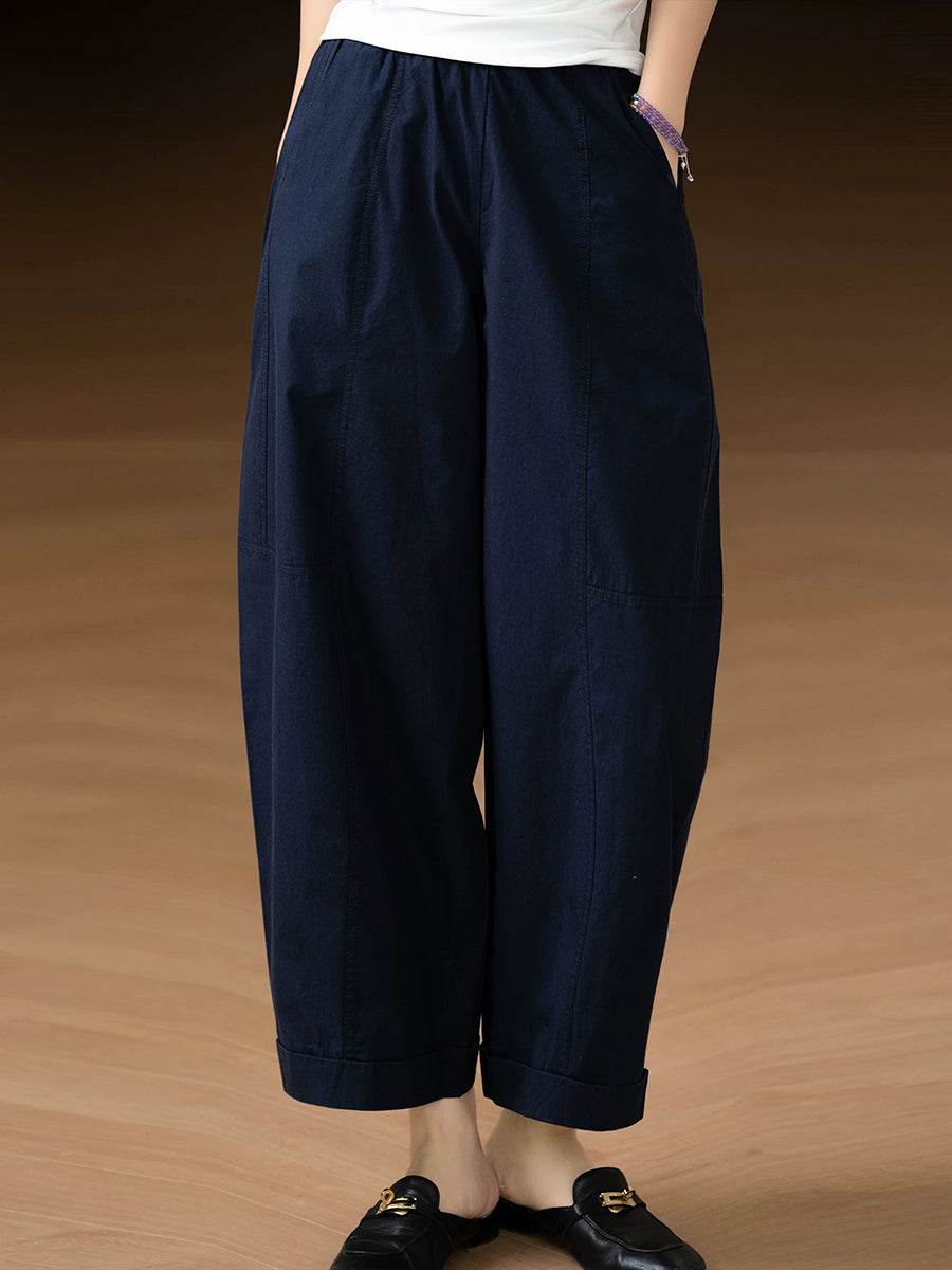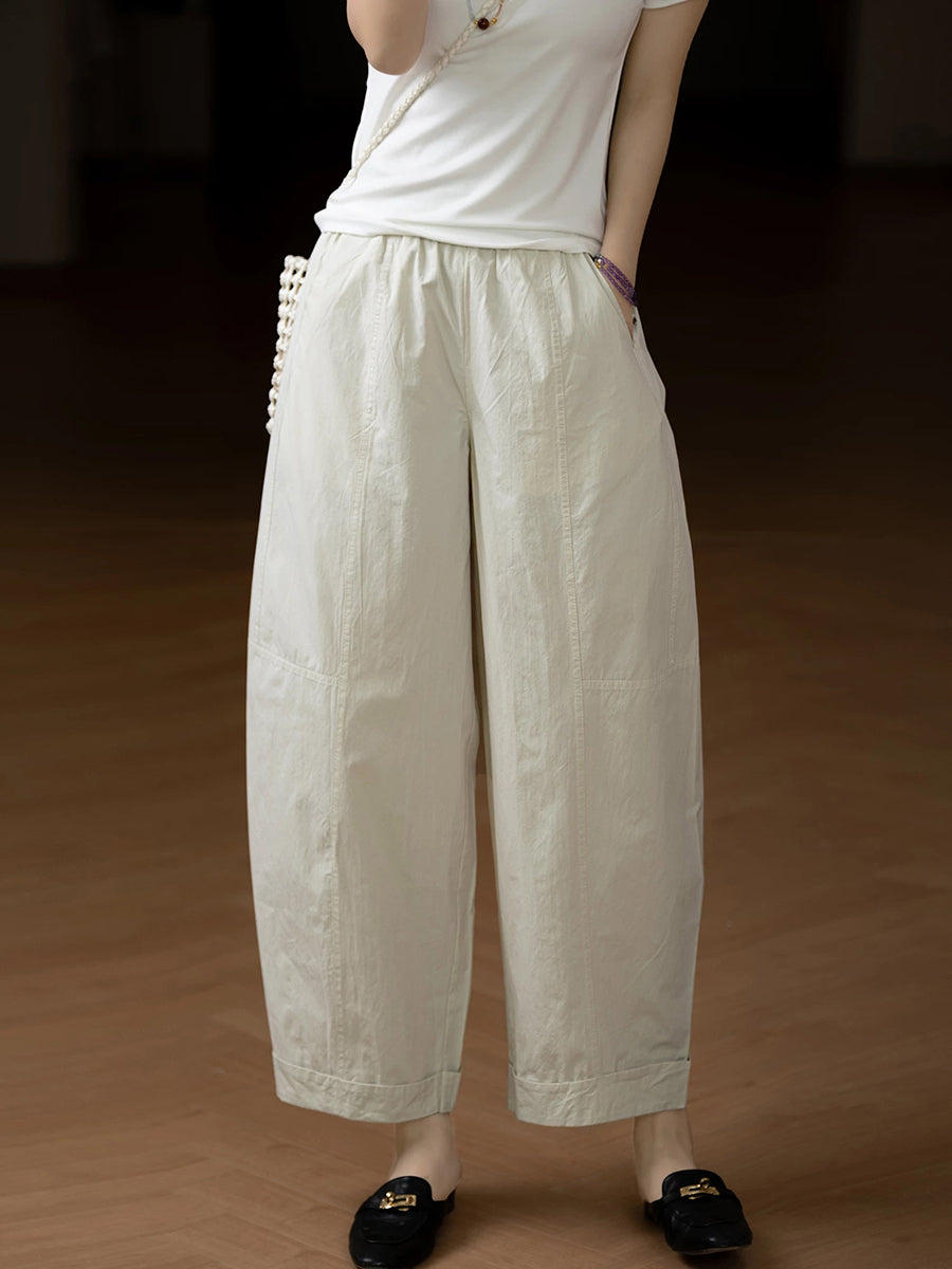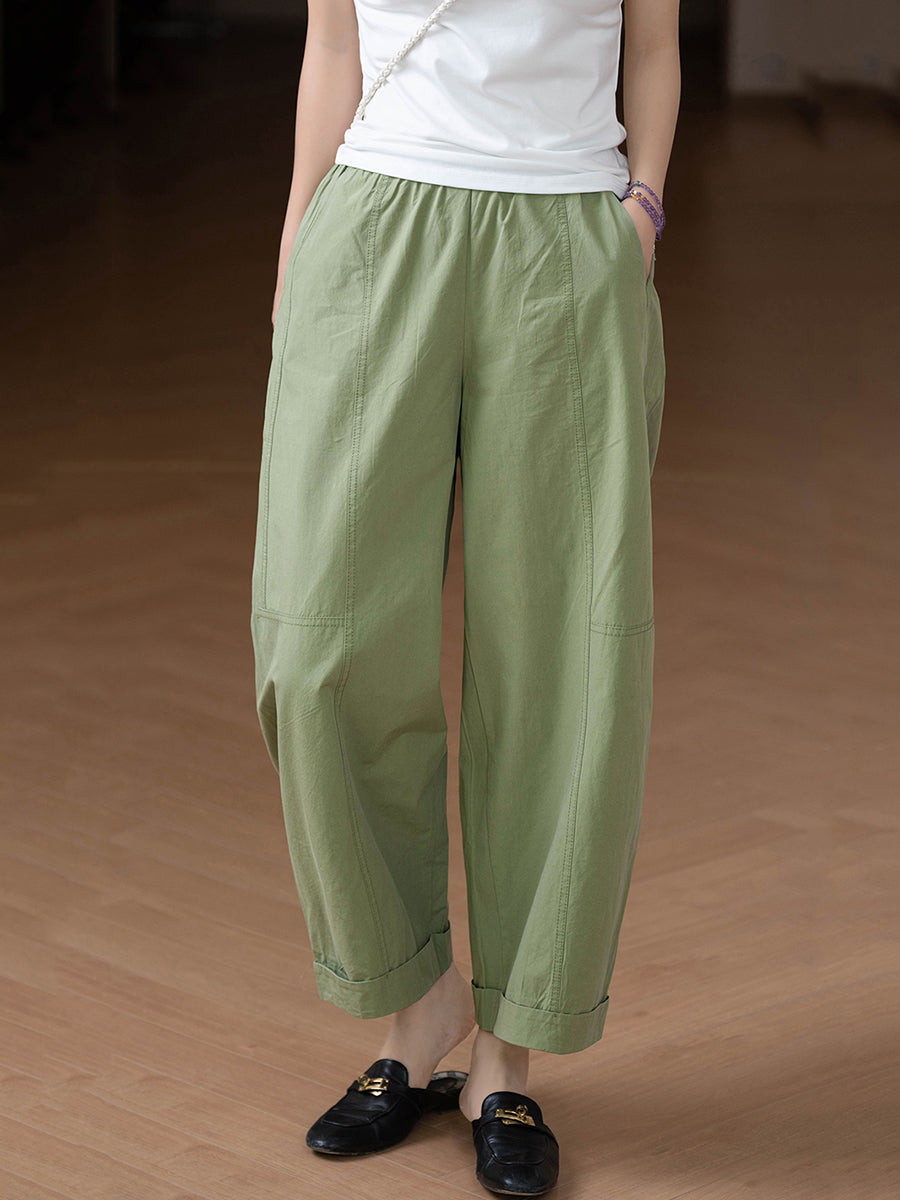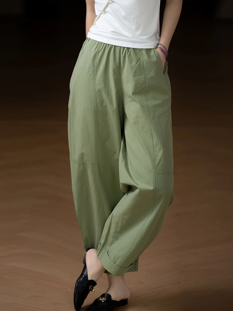 Calça Harem Feminina Casual de Verão em Cor Lisa 100% Algodão