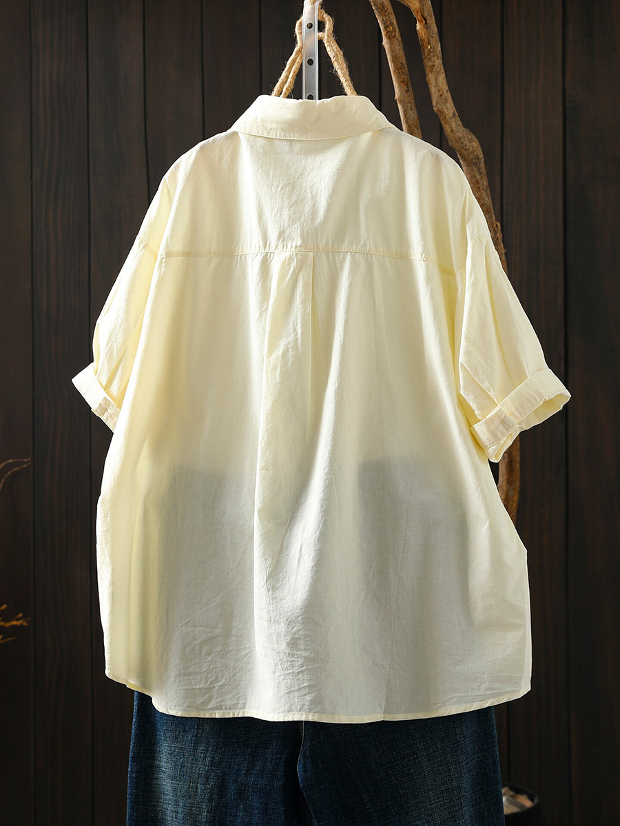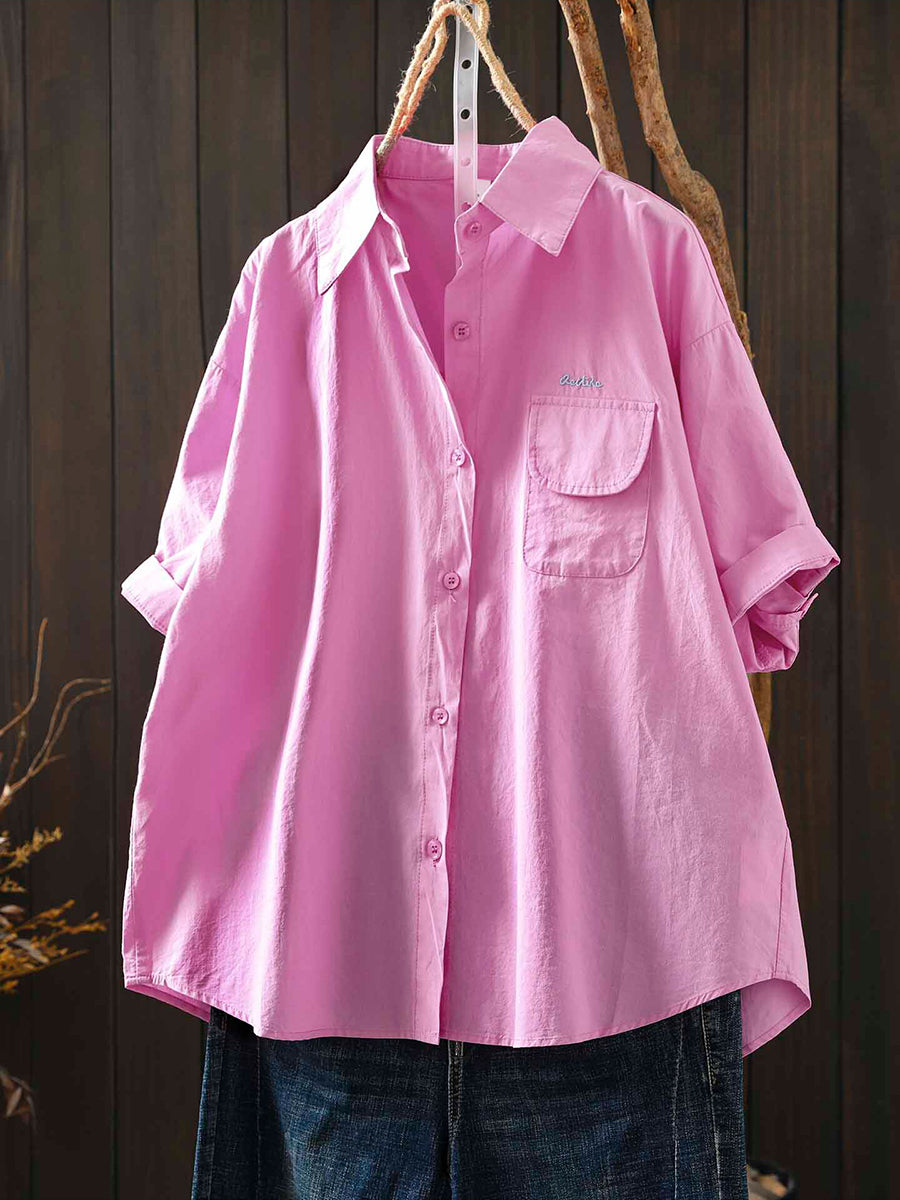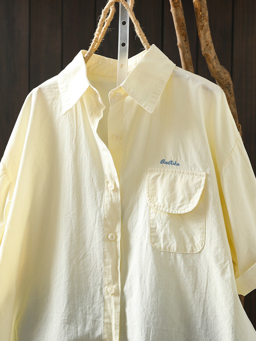 Camisa feminina casual de verão em cor lisa, 100% algodão.