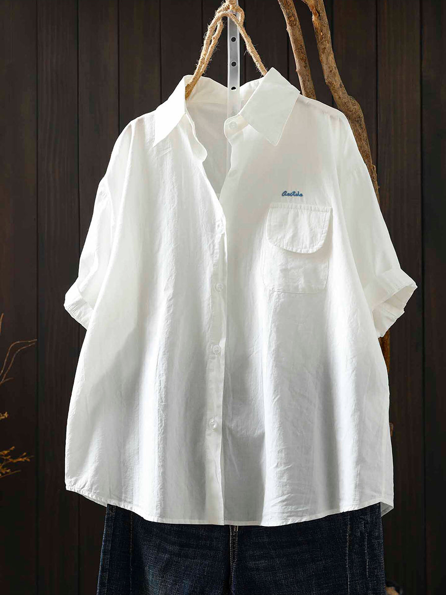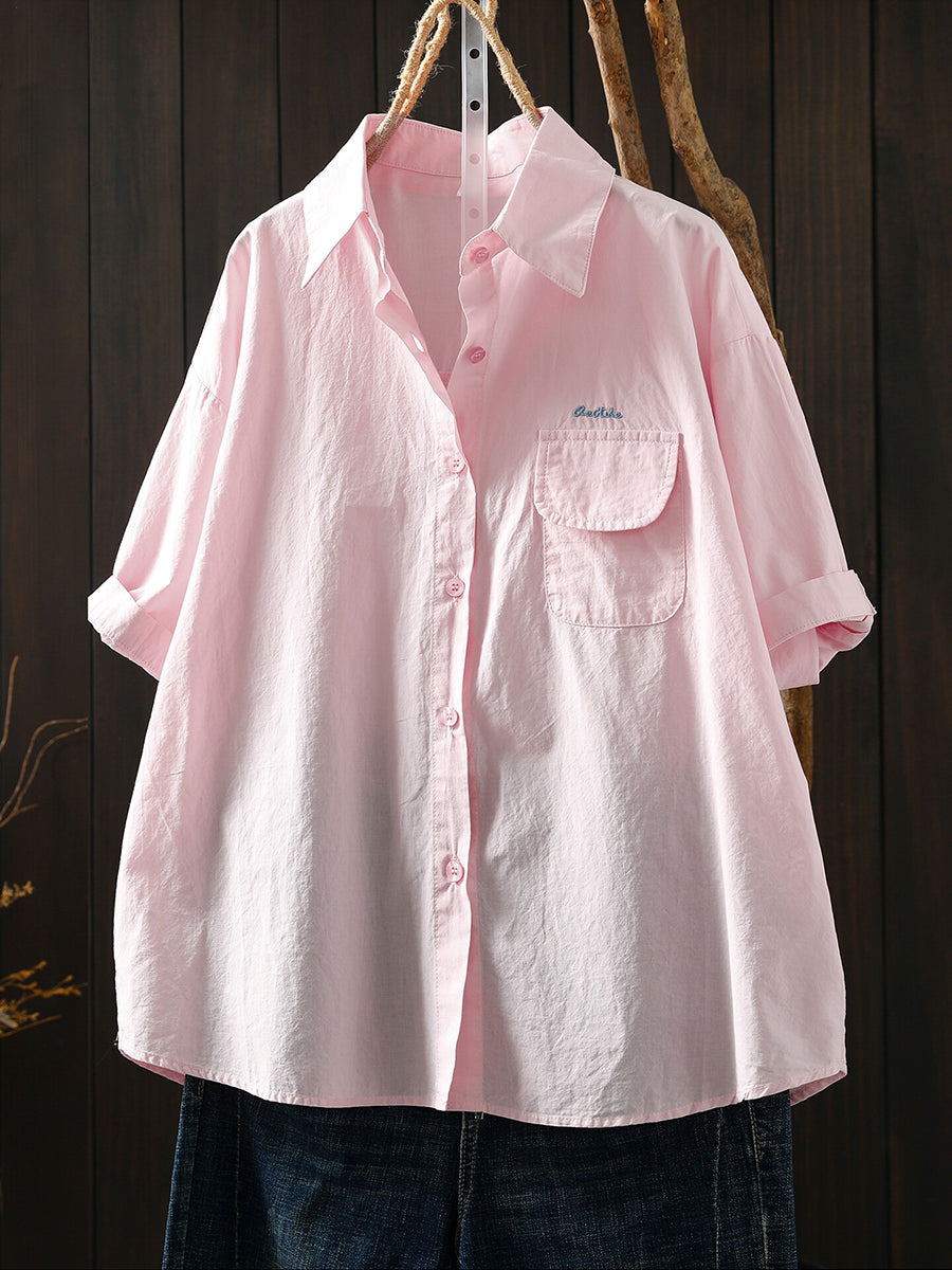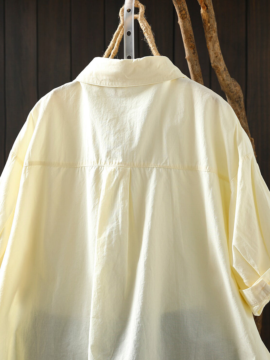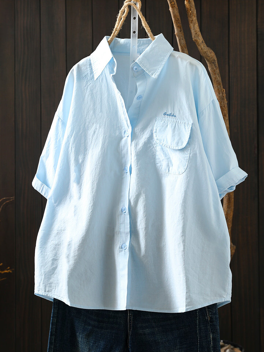 Camisa feminina casual de verão em cor lisa, 100% algodão.