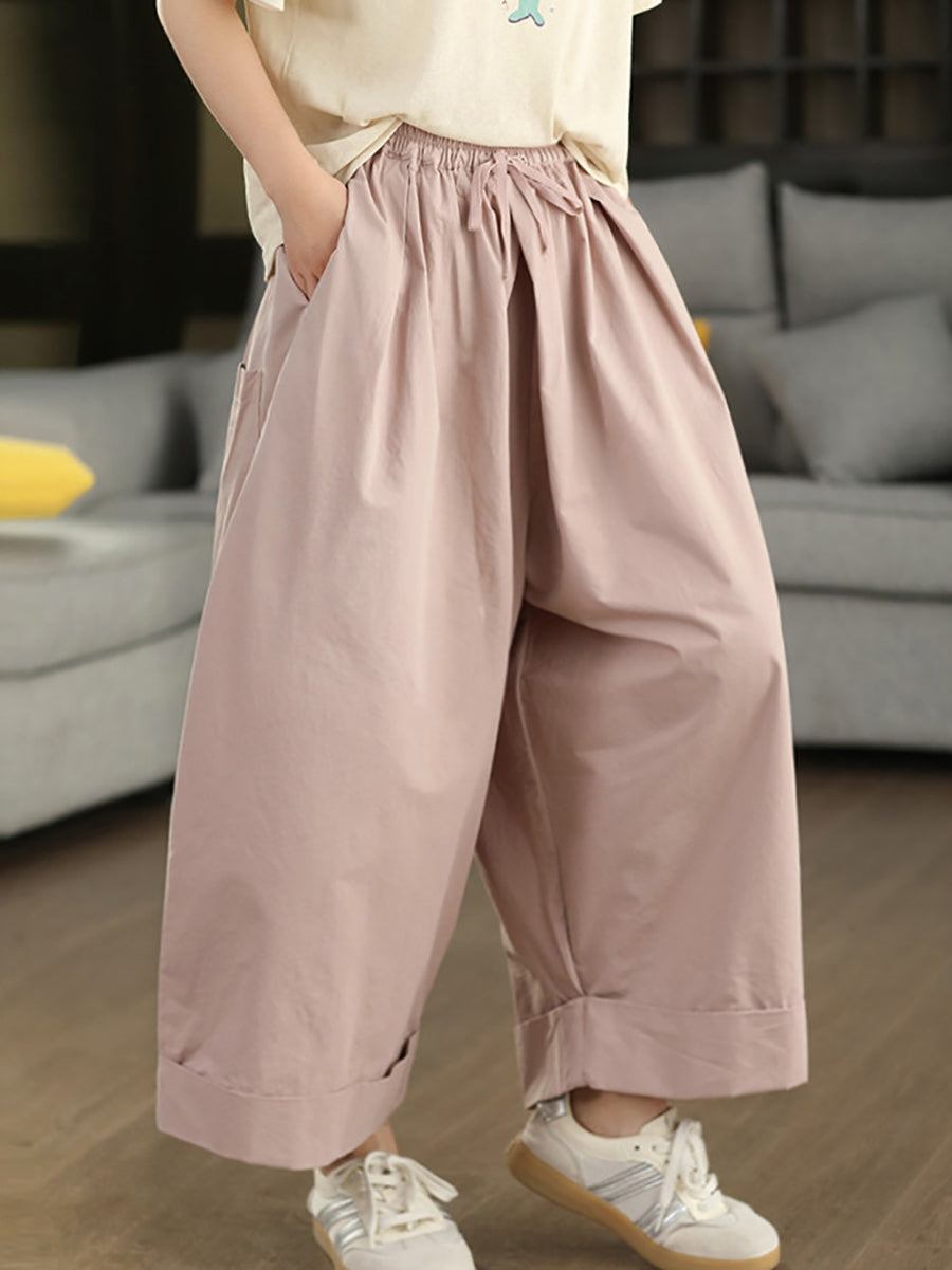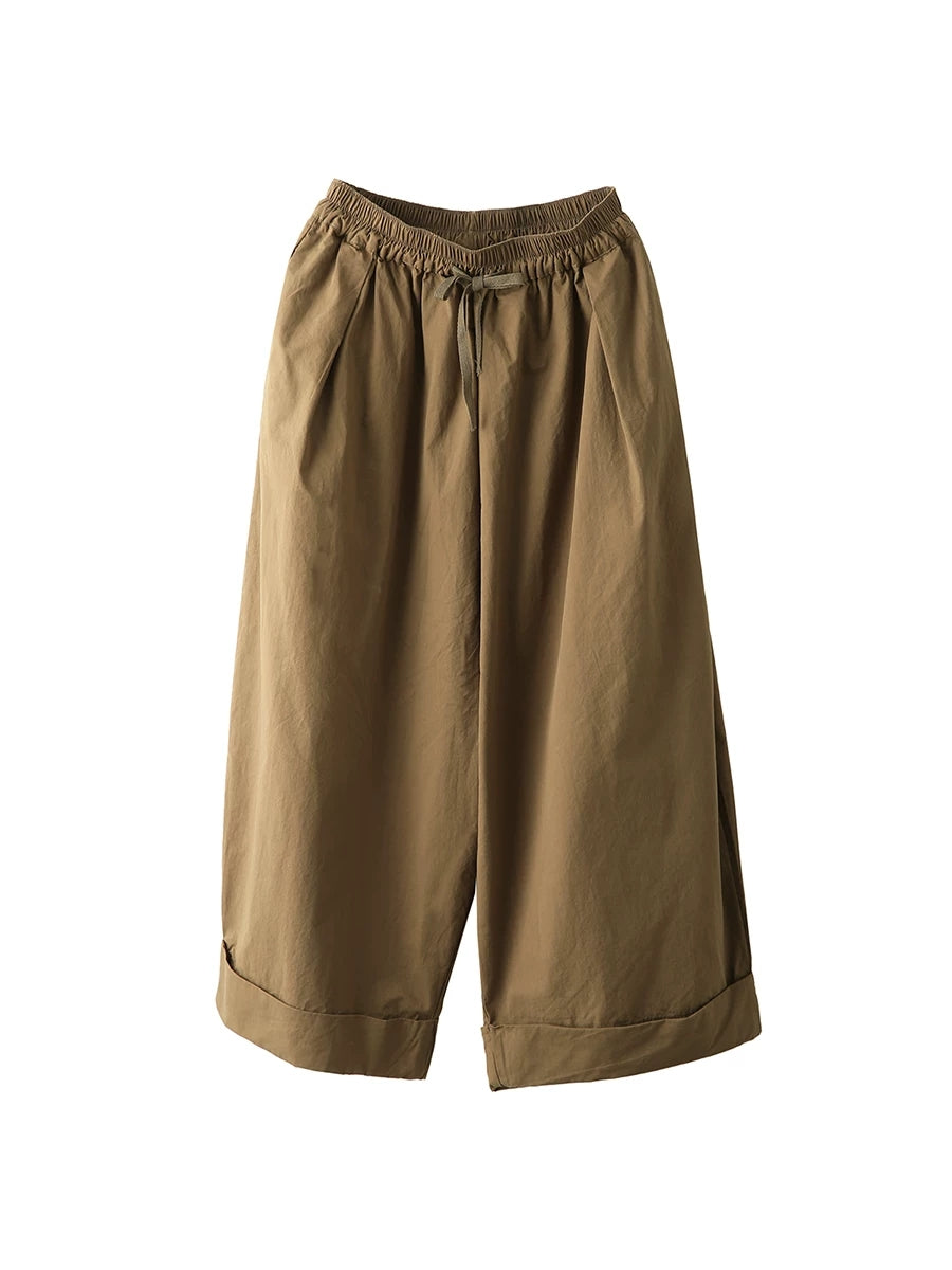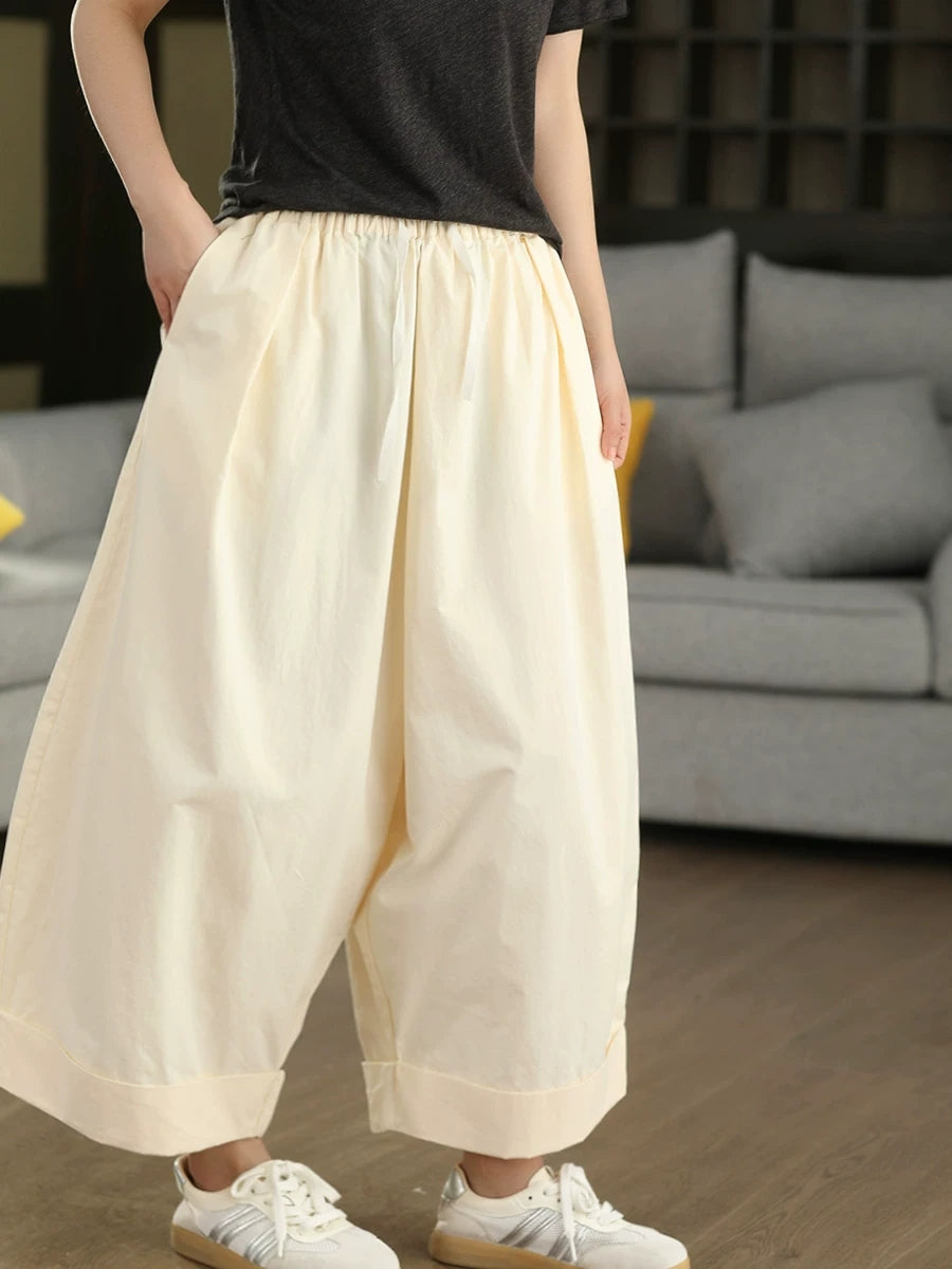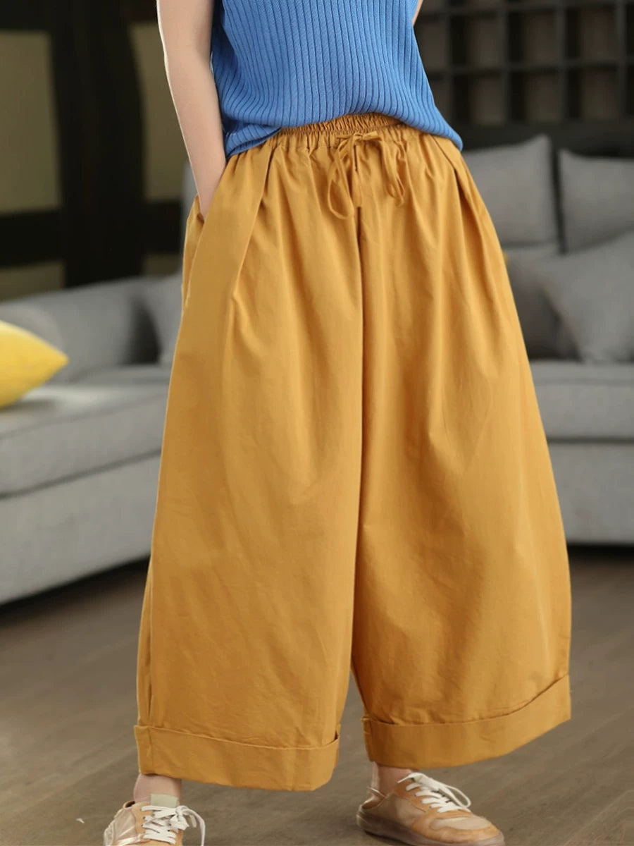 Calça feminina de verão casual, cor lisa, 100% algodão, pernas largas