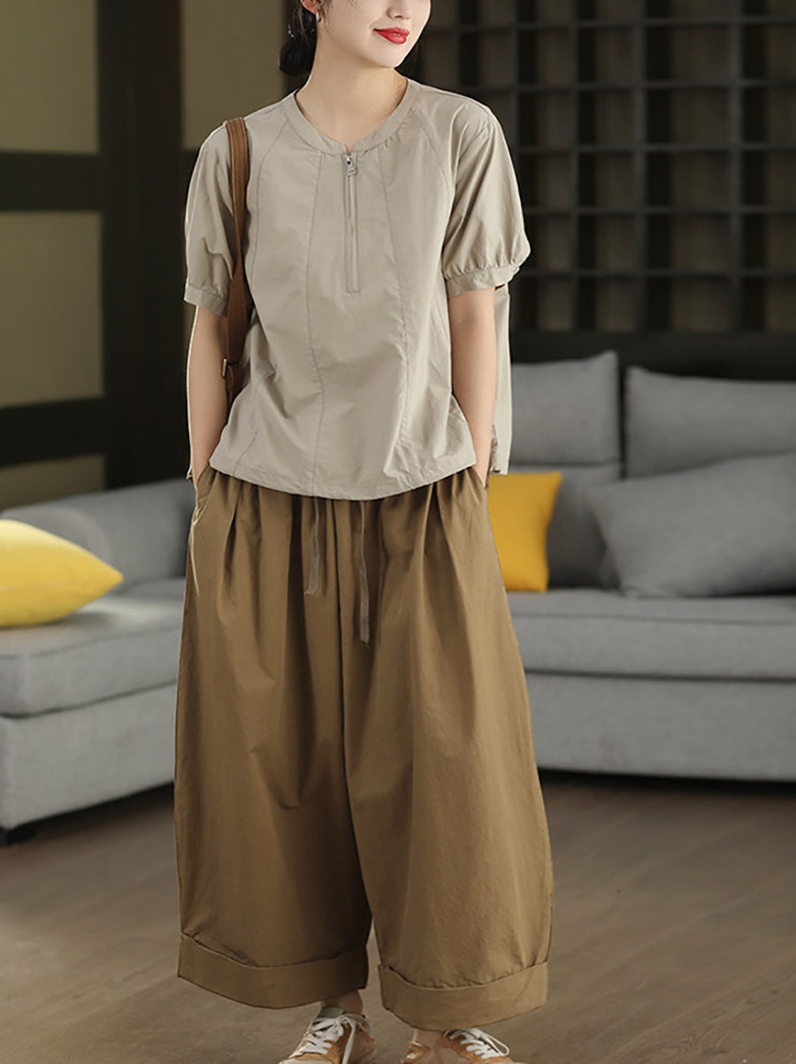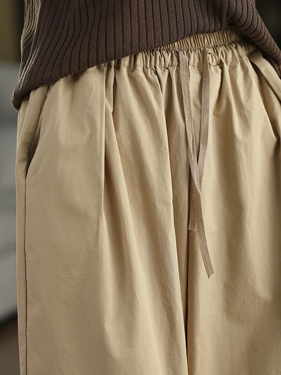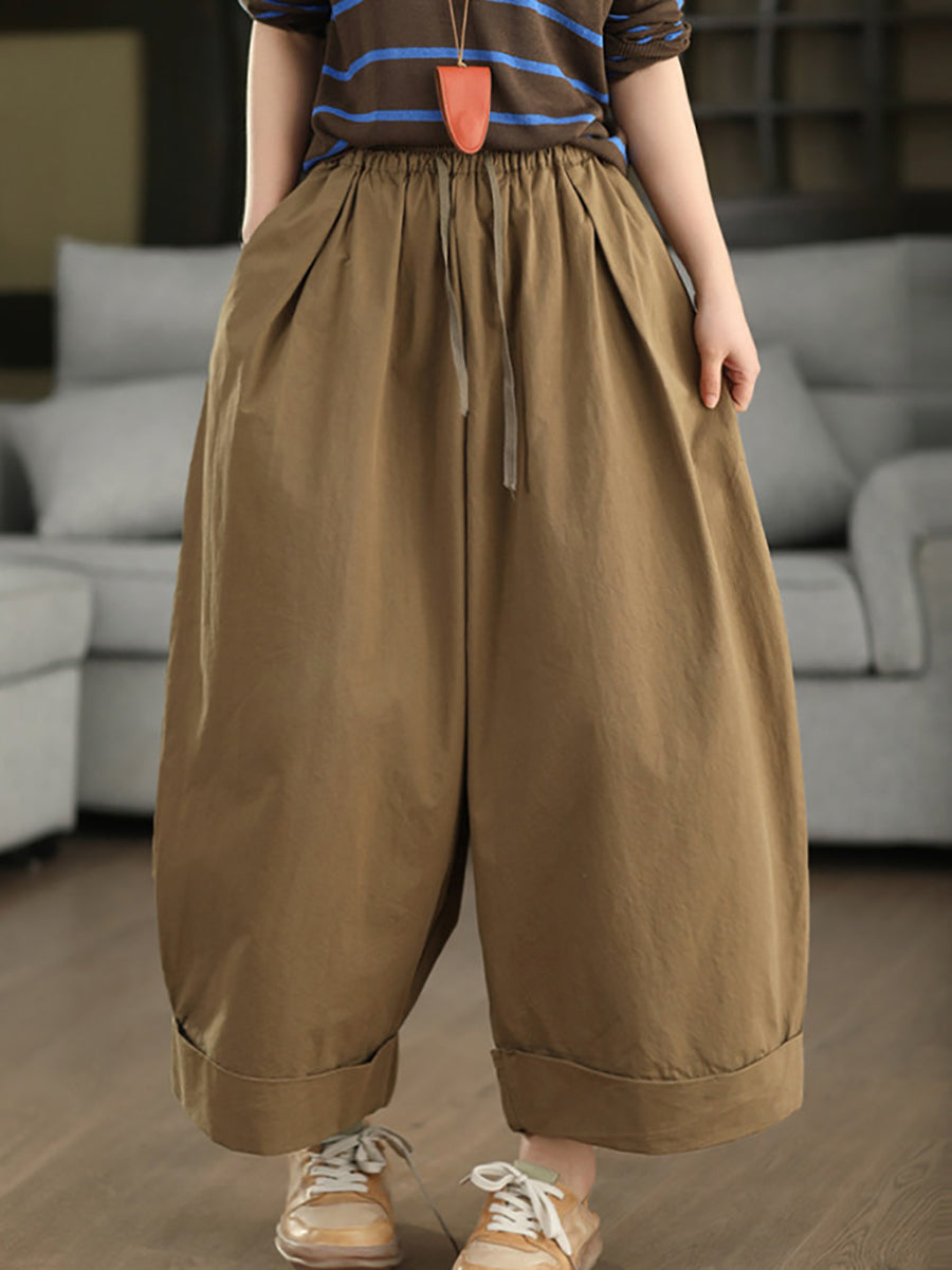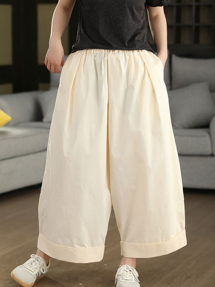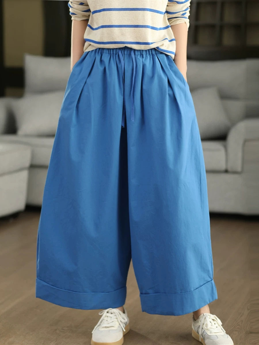 Calça feminina de verão casual, cor lisa, 100% algodão, pernas largas