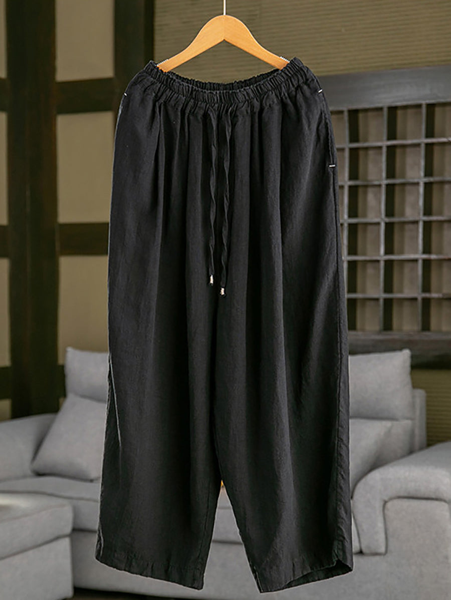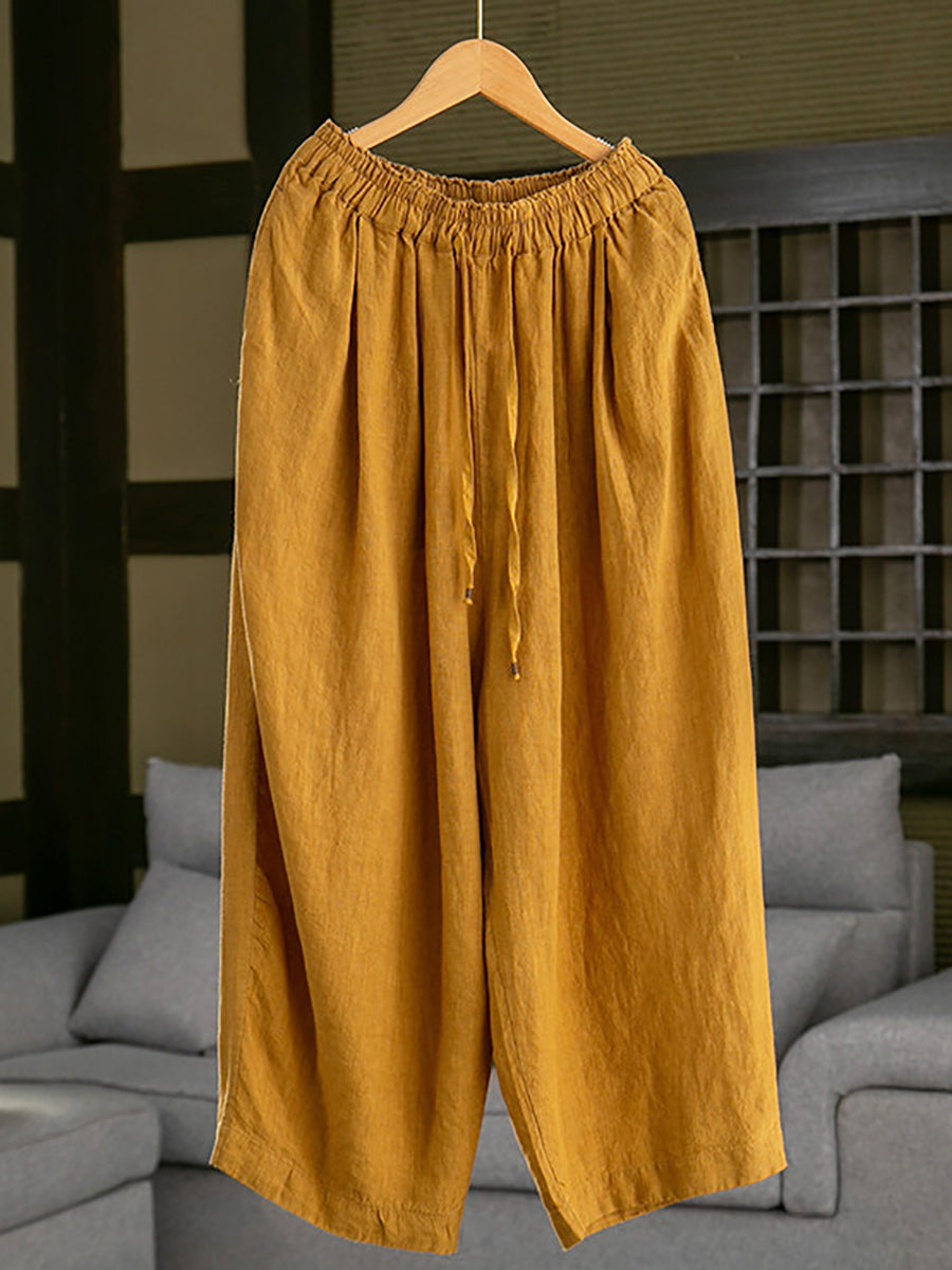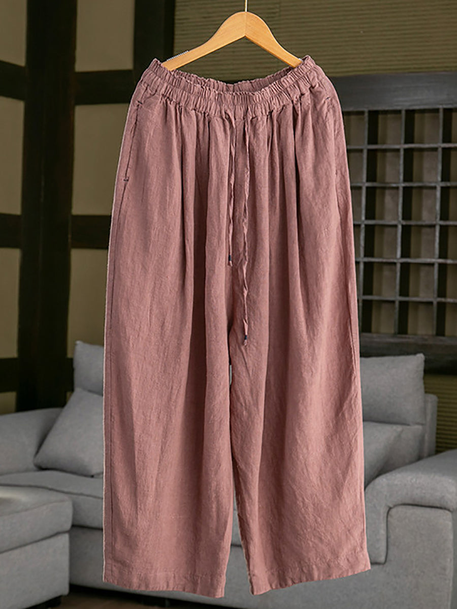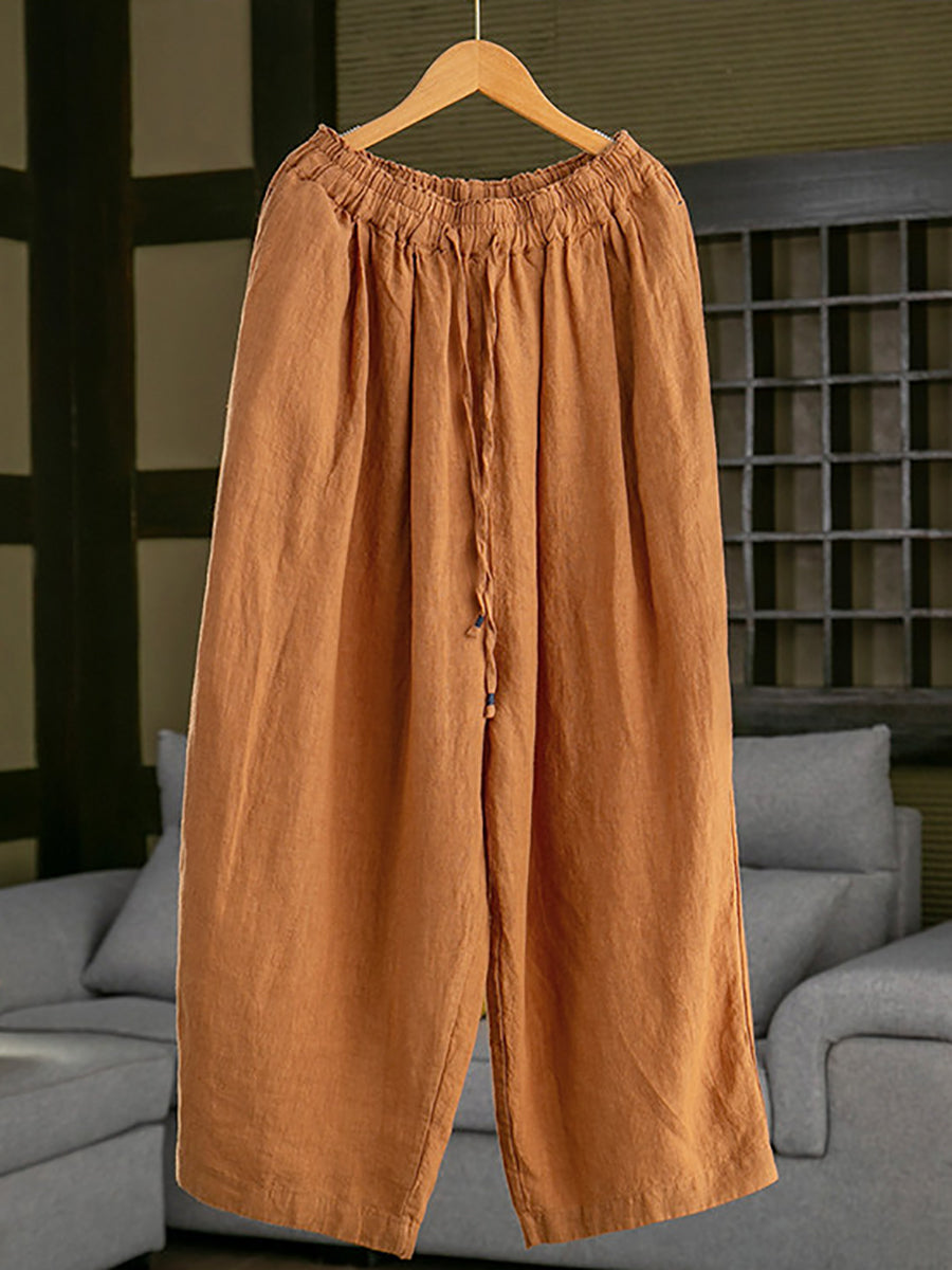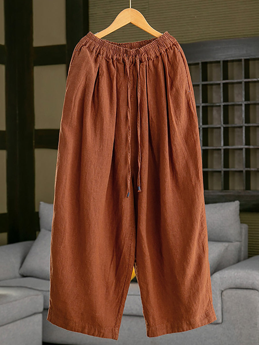 Calça Harem Feminina Casual de Verão em Linho 100% de Cor Lisa