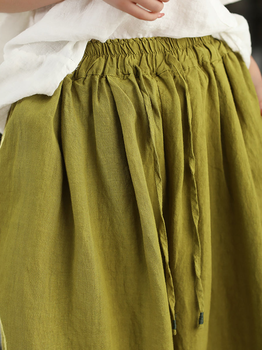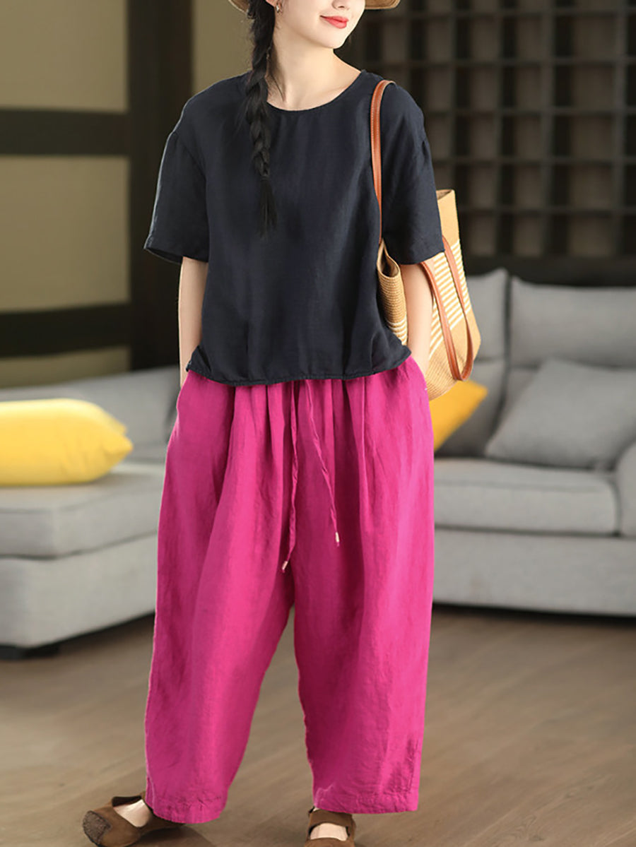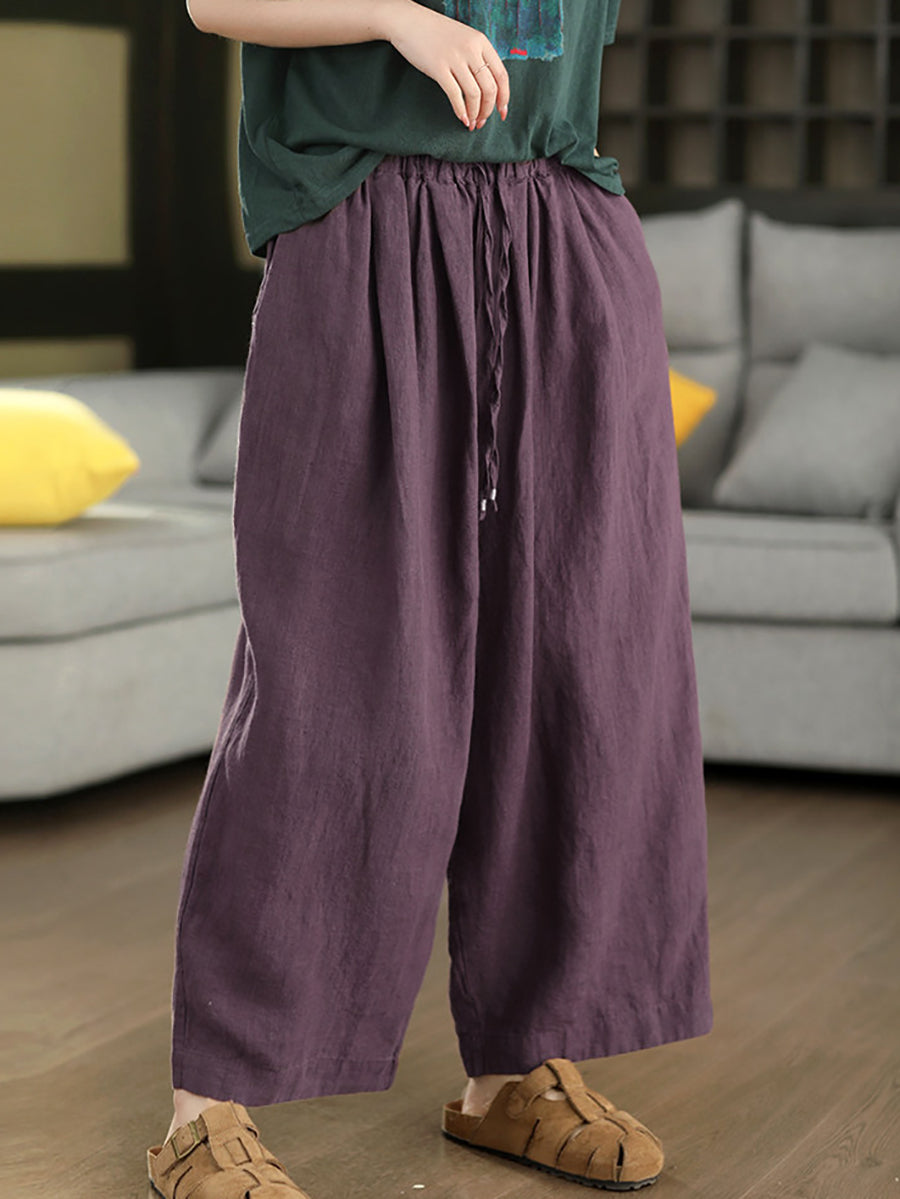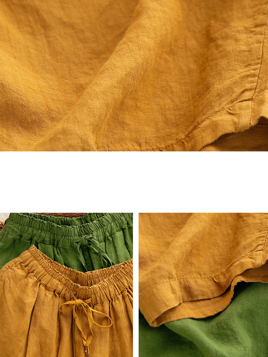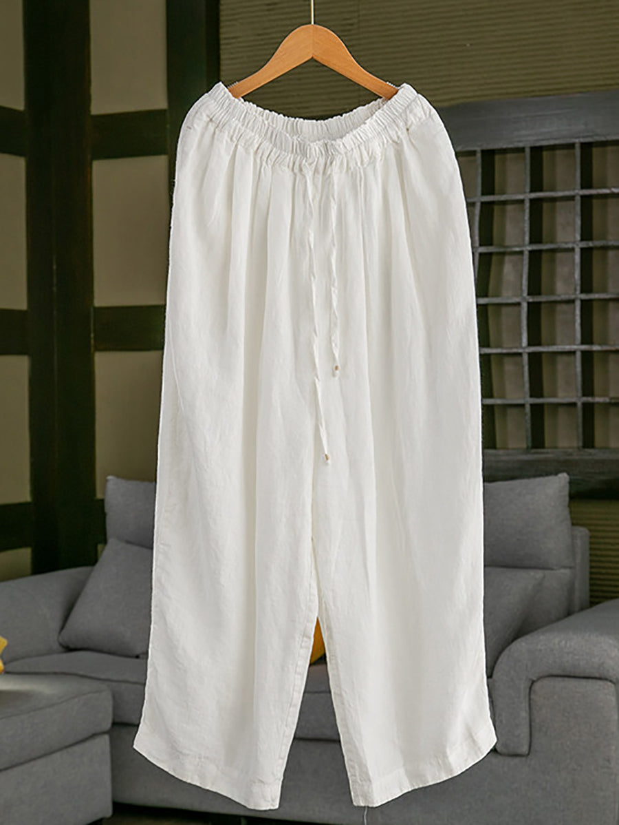 Calça Harem Feminina Casual de Verão em Linho 100% de Cor Lisa