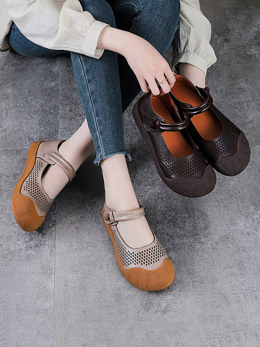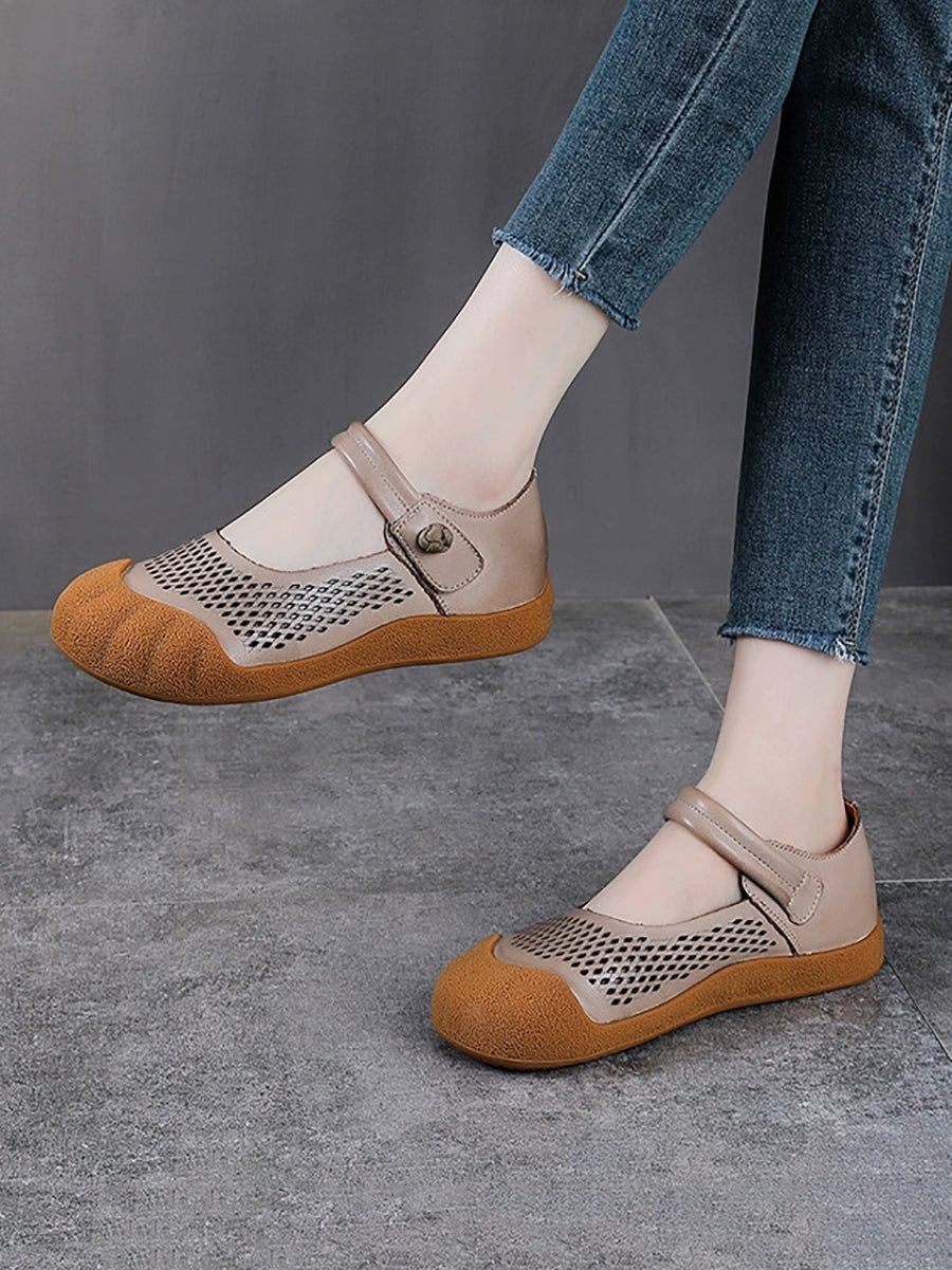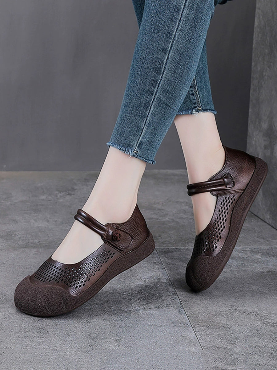 Sapatos femininos de verão em couro legítimo, sapatos baixos.