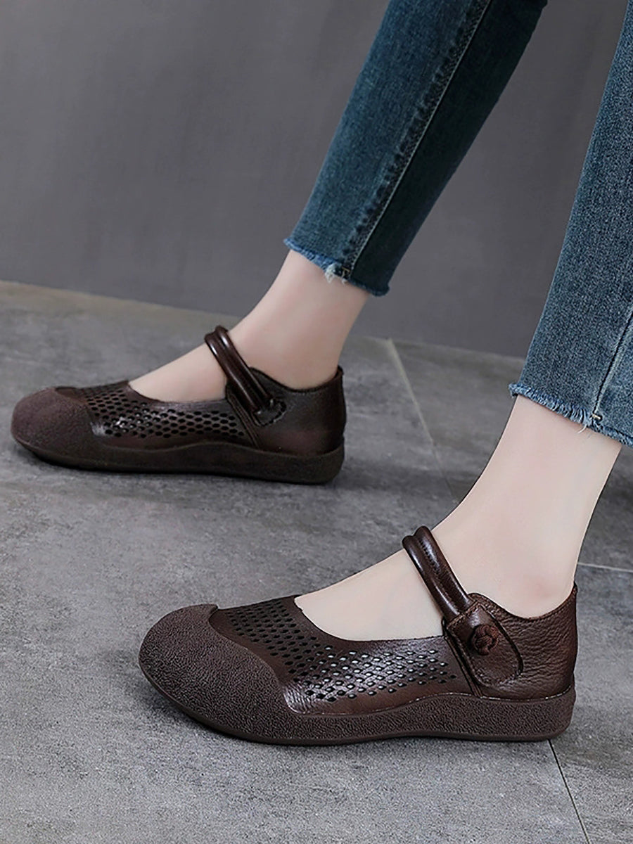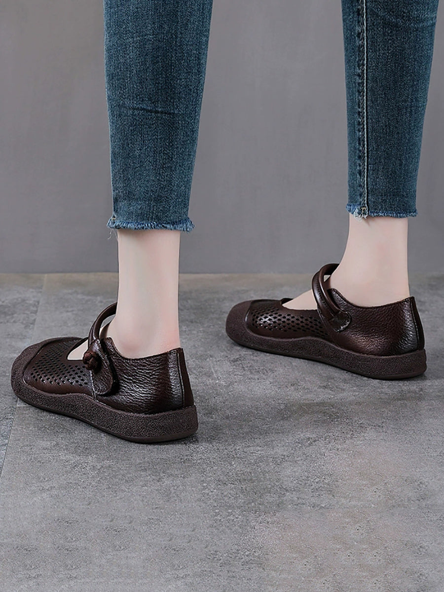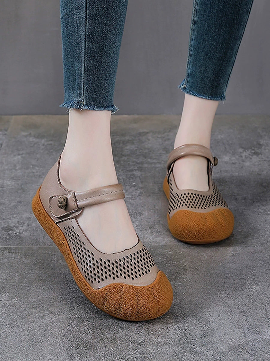Sapatos femininos de verão em couro legítimo, sapatos baixos.