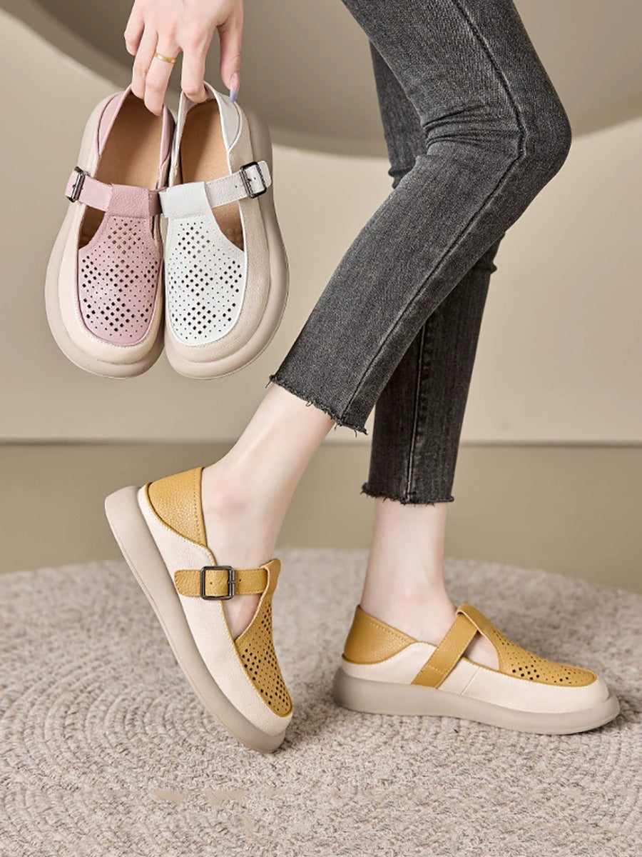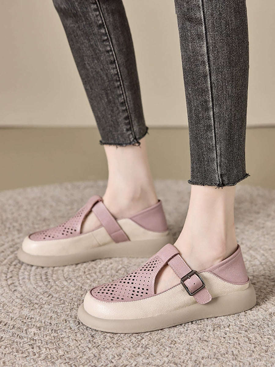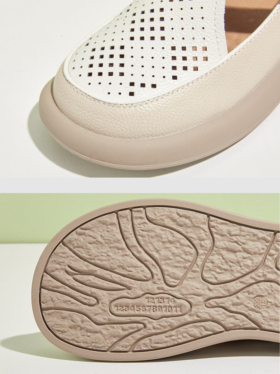 Sapatos femininos de verão em couro legítimo vazado
