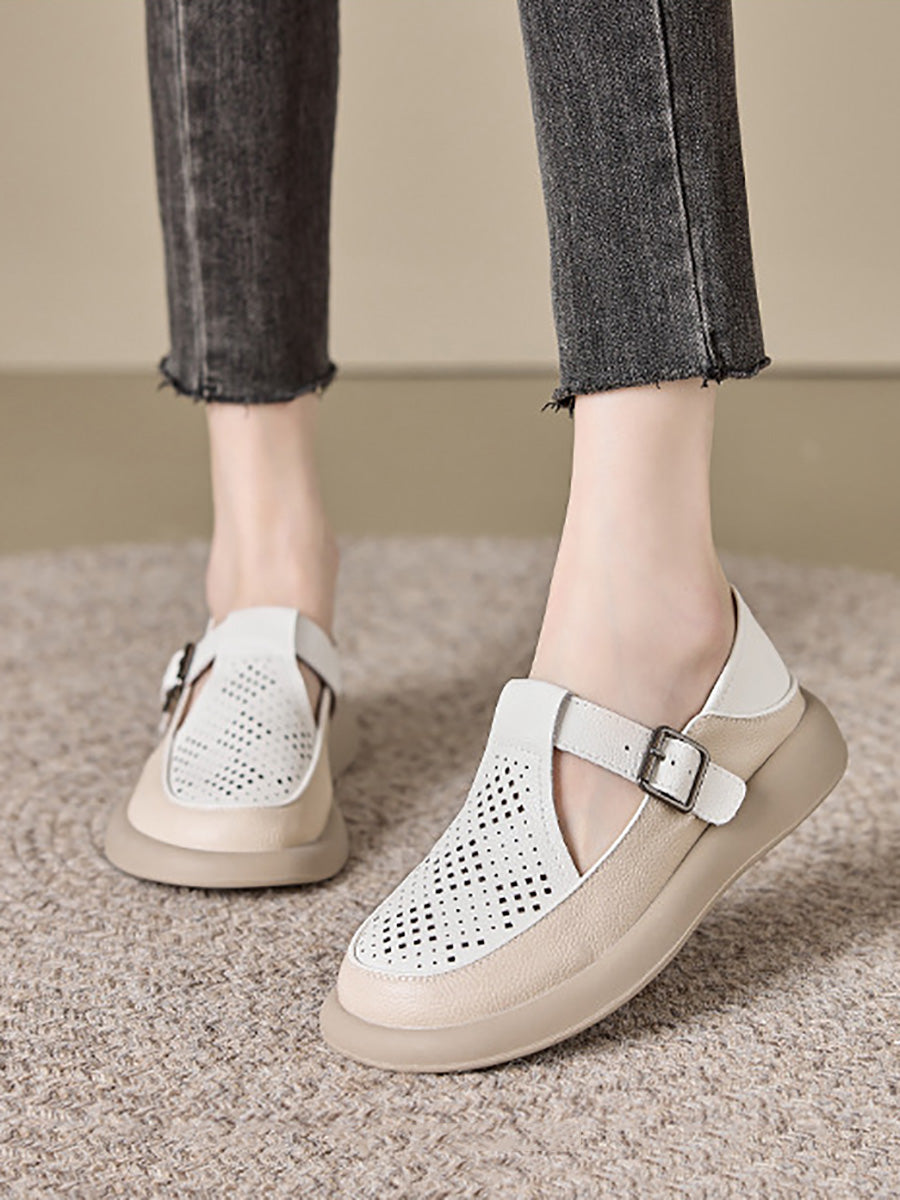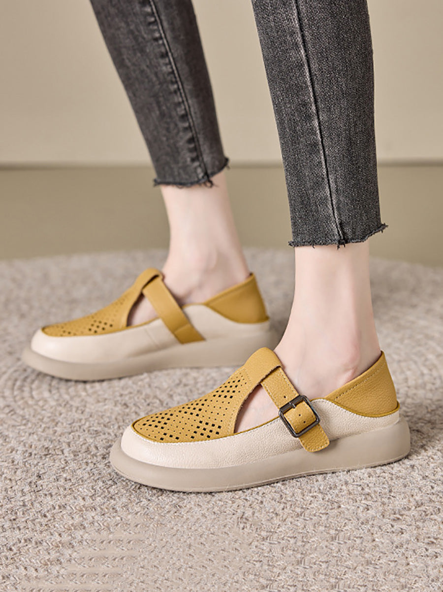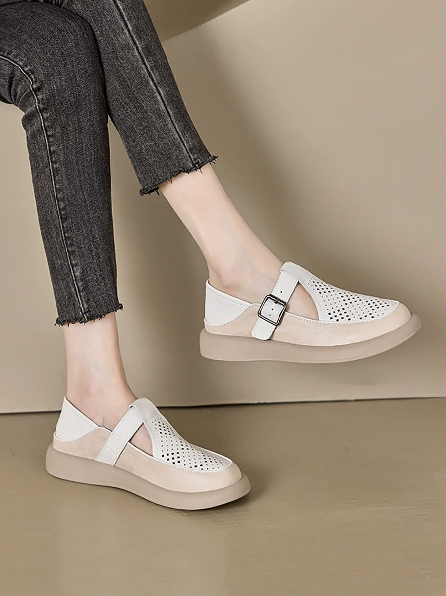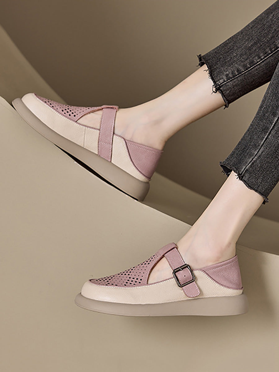 Sapatos femininos de verão em couro legítimo vazado