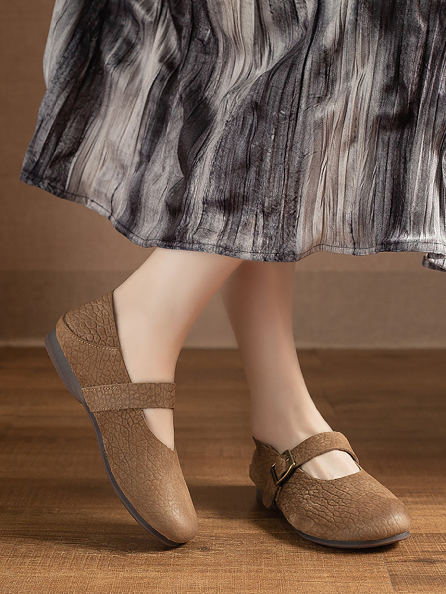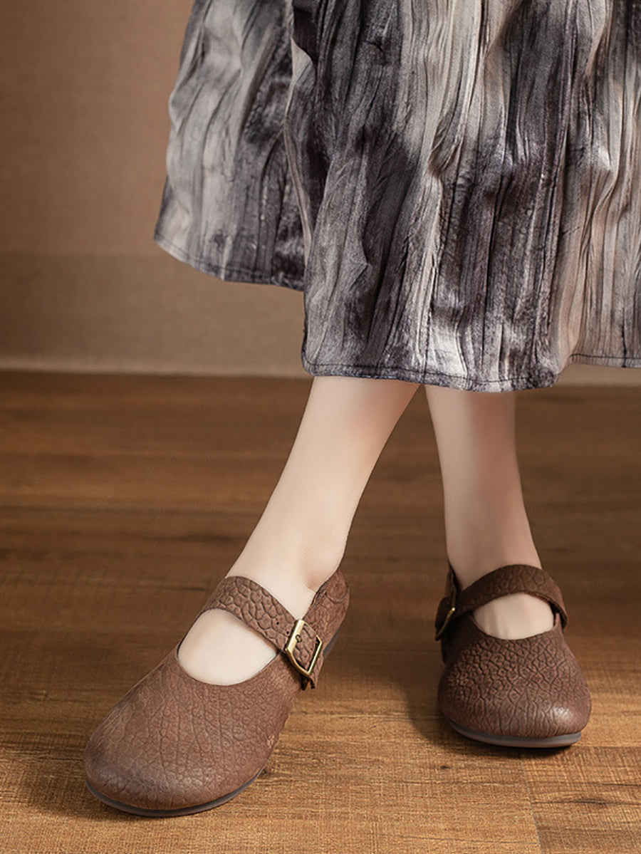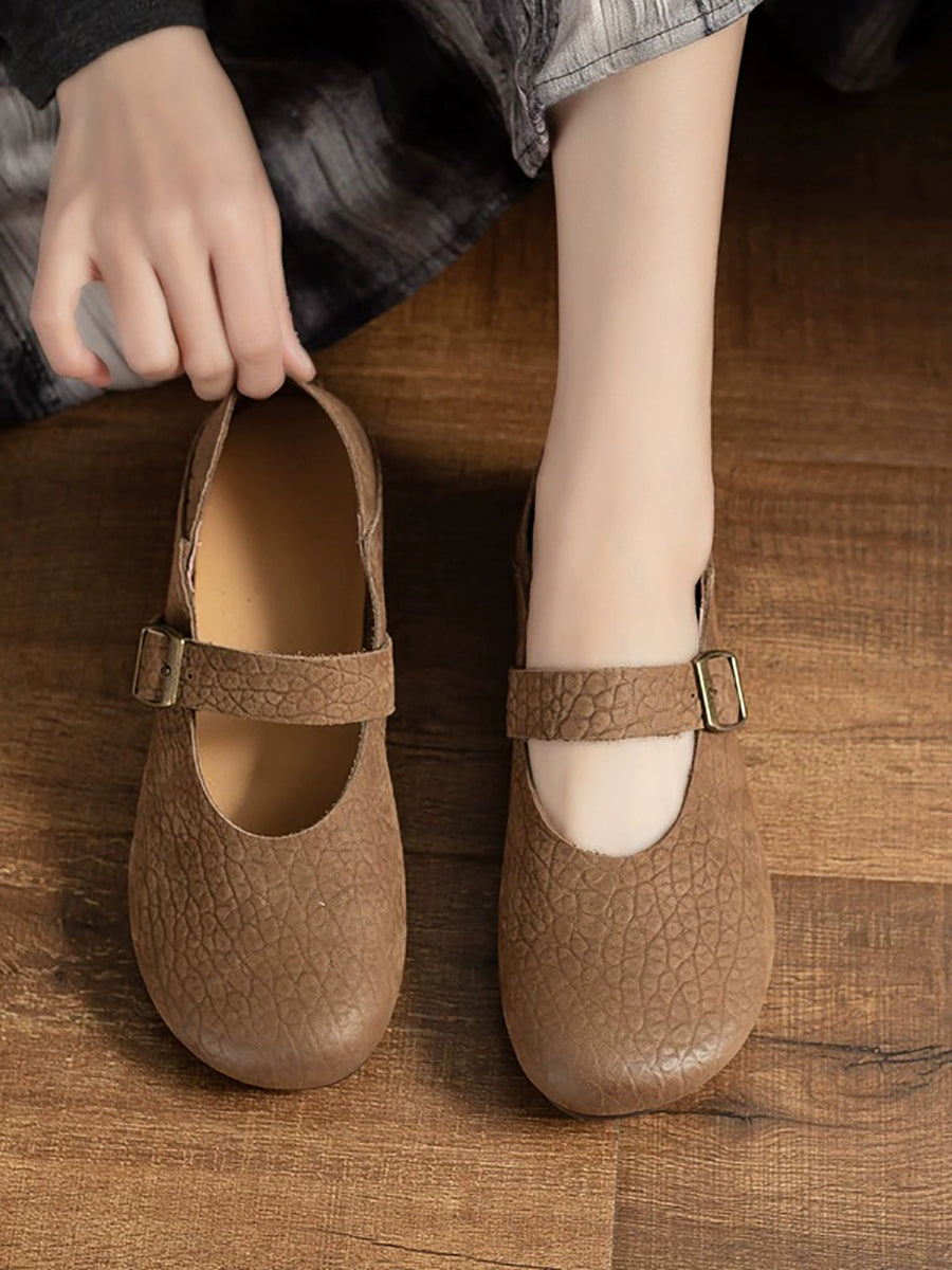 Sapatos femininos de verão em couro legítimo com salto baixo