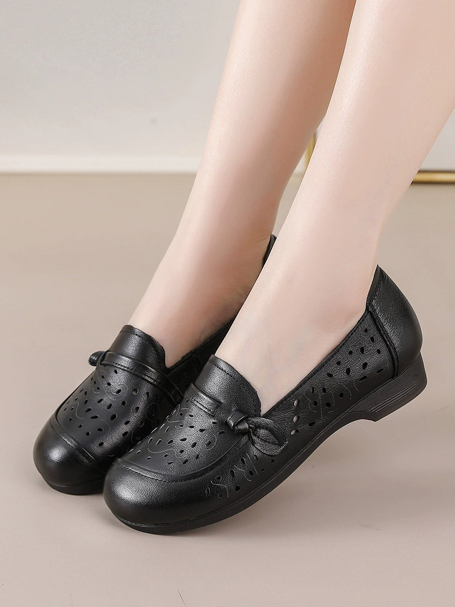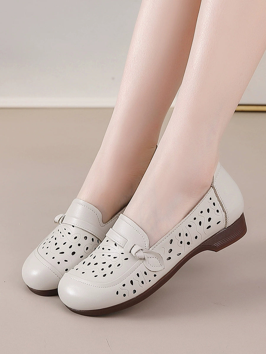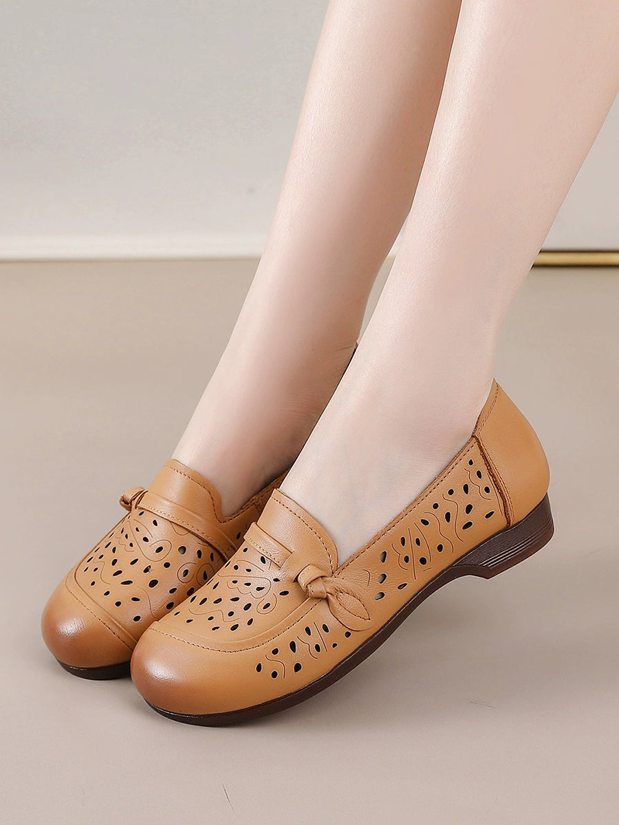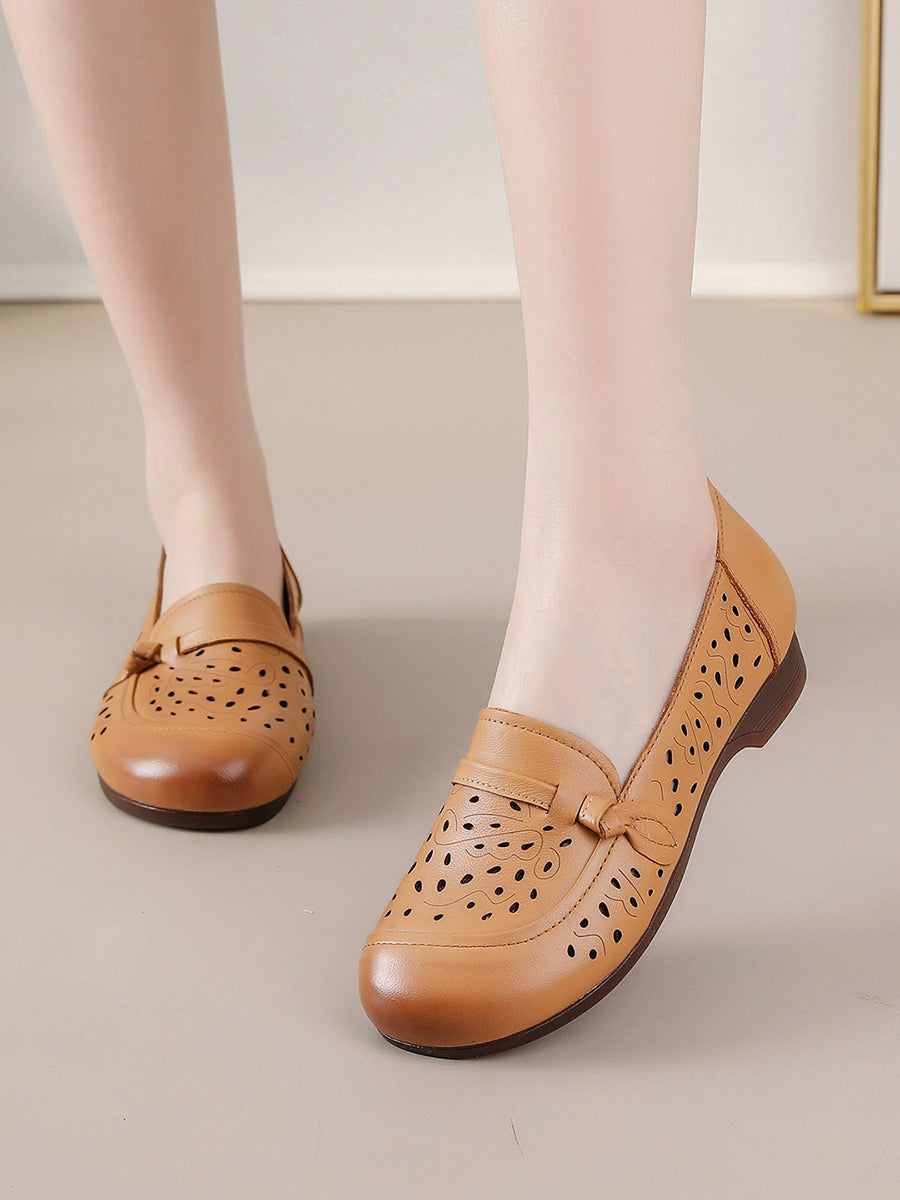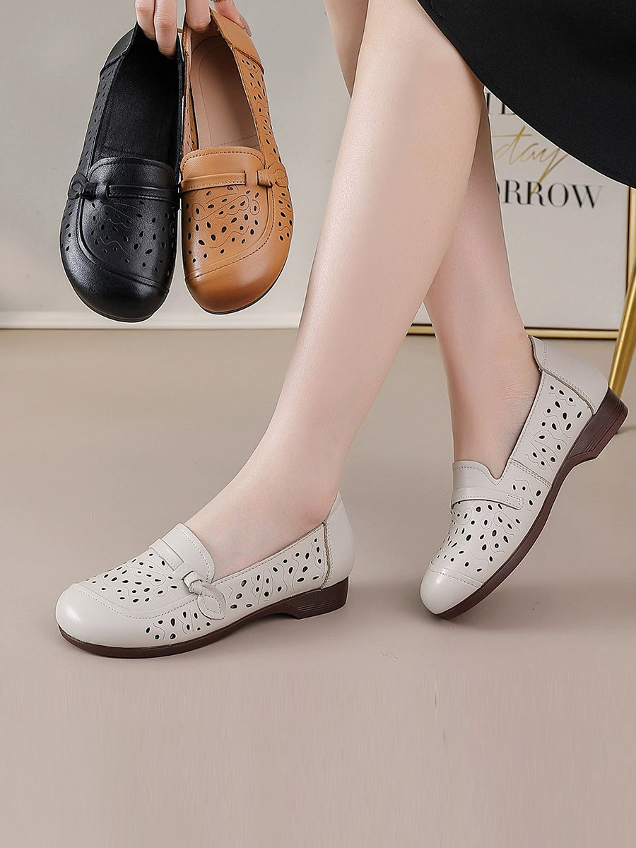 Sapatos femininos de verão em couro legítimo com salto baixo