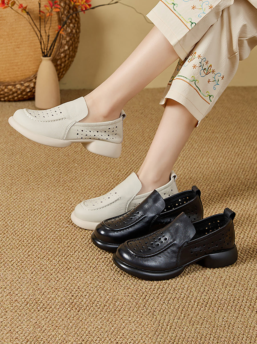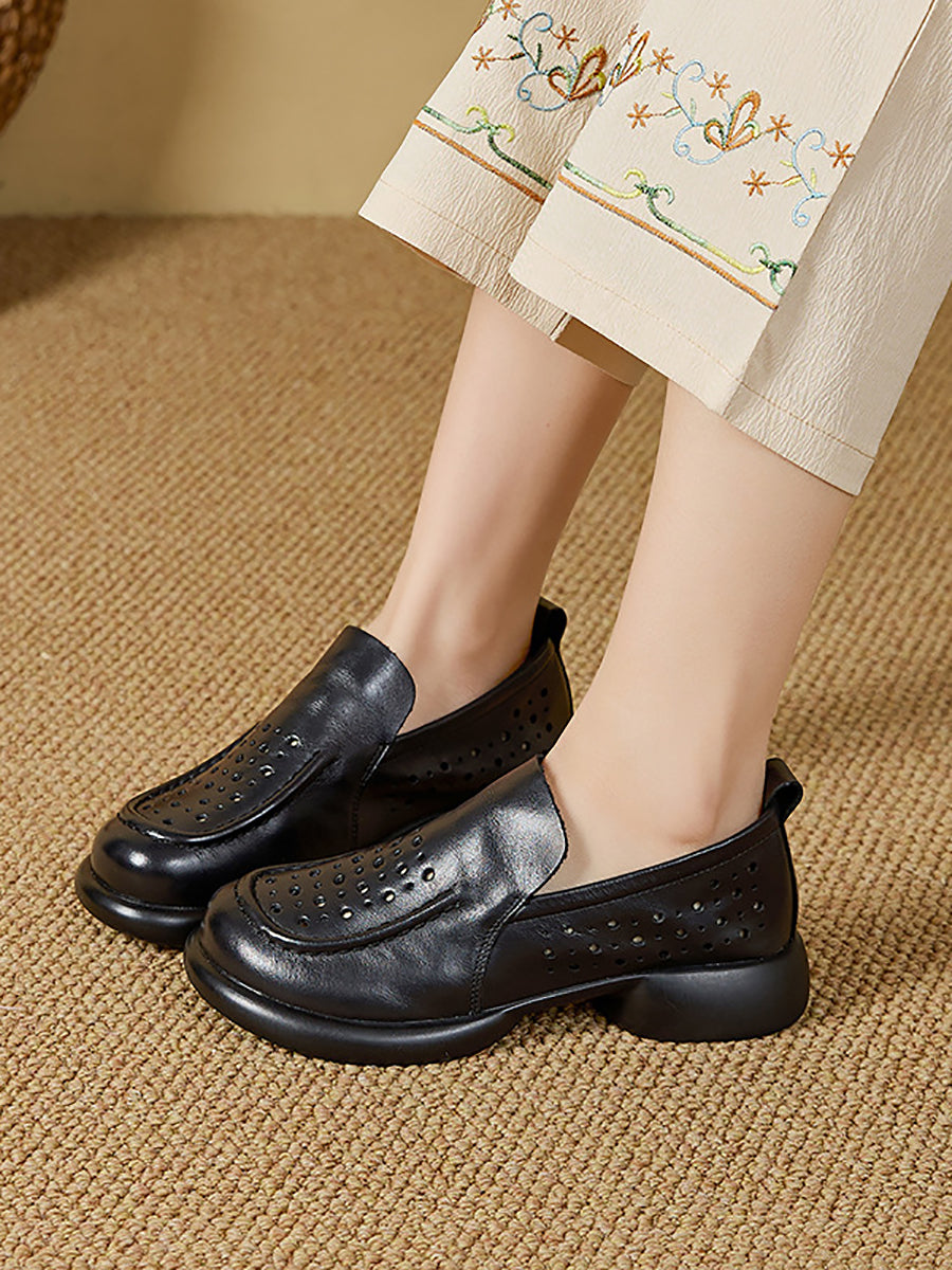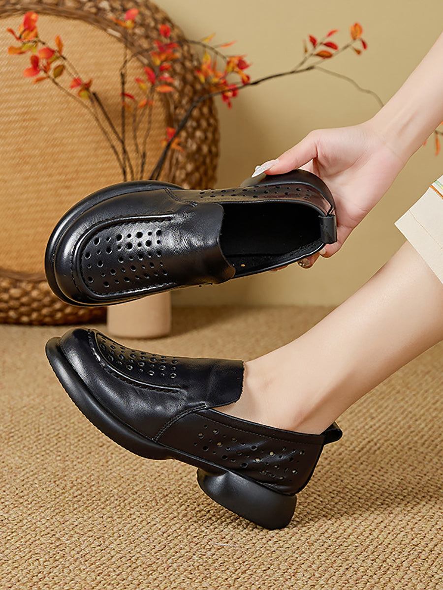 Sapatos femininos de verão em couro legítimo com salto baixo