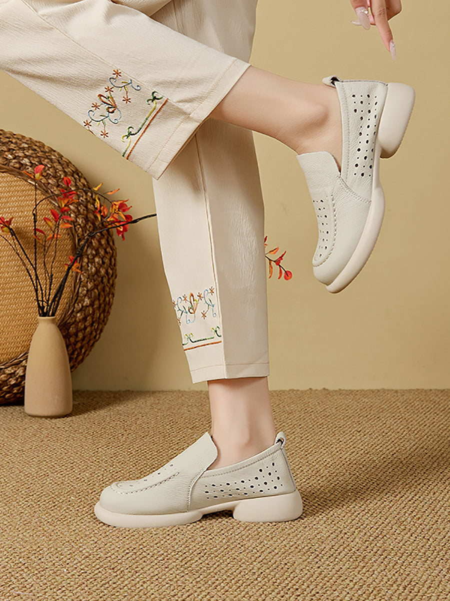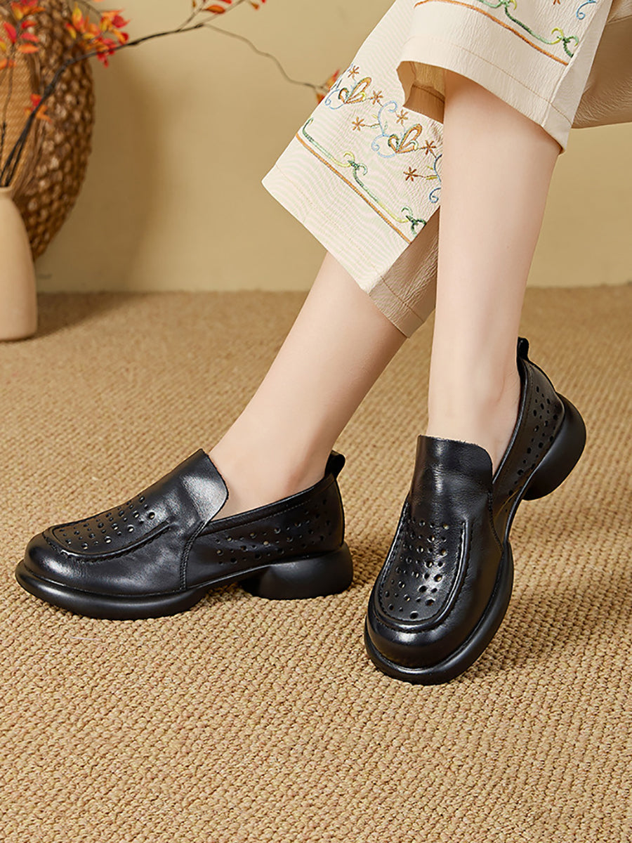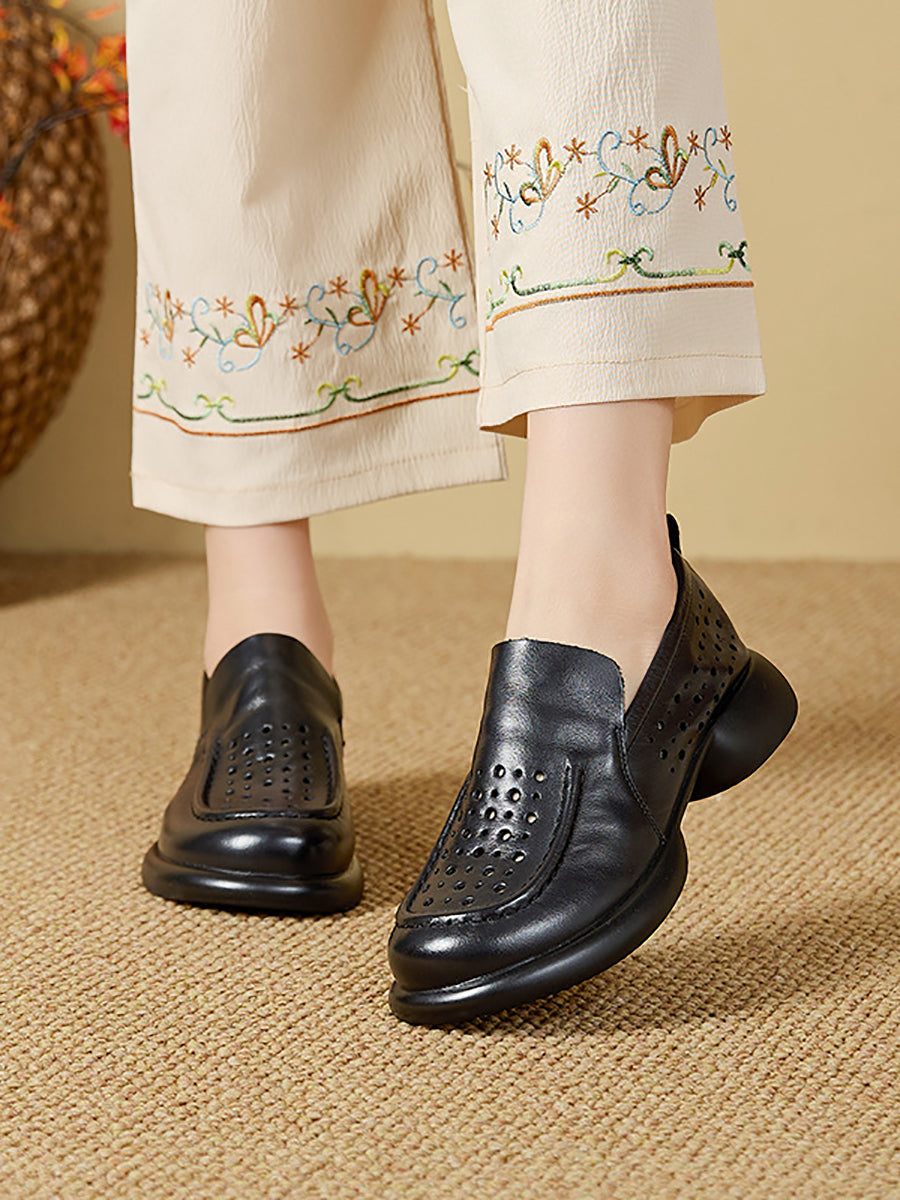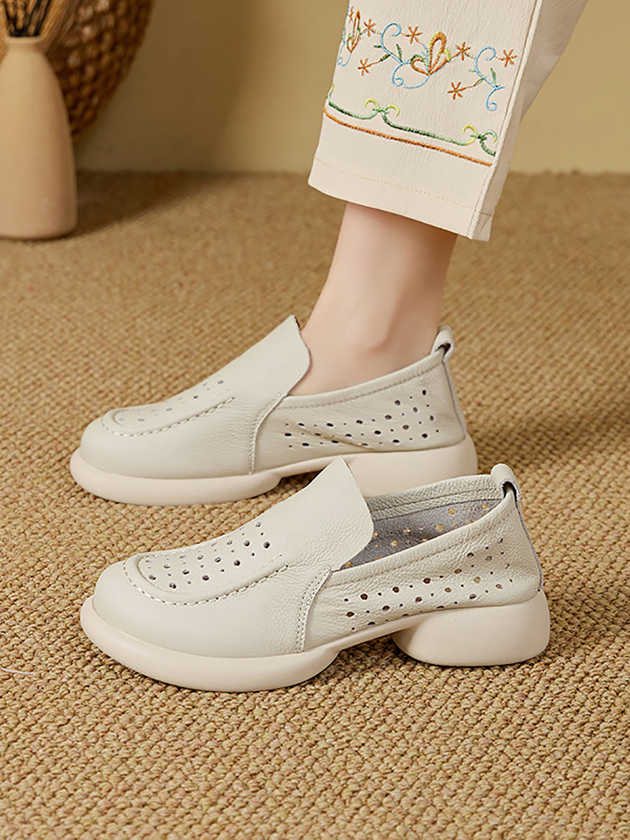 Sapatos femininos de verão em couro legítimo com salto baixo