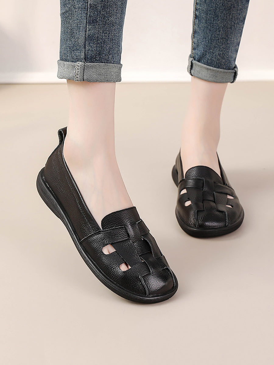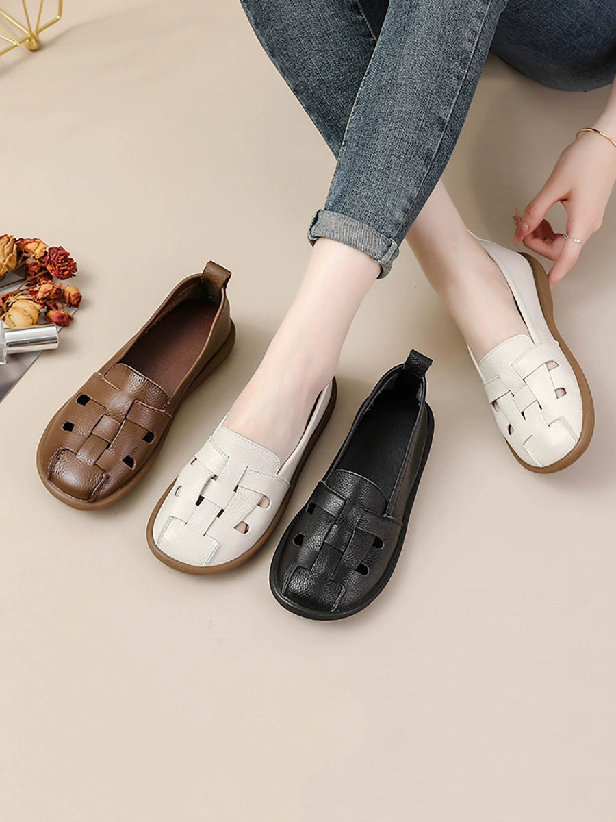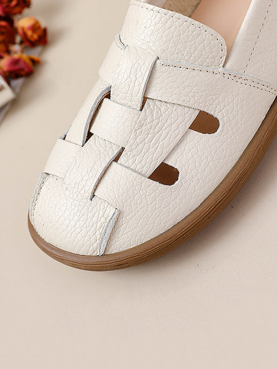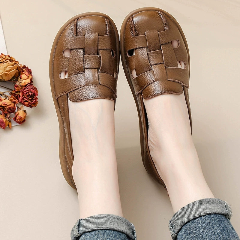 Sapatos femininos de verão em couro legítimo com detalhes em renda.