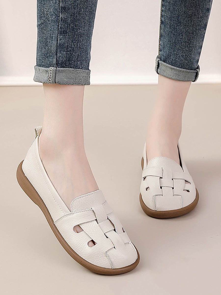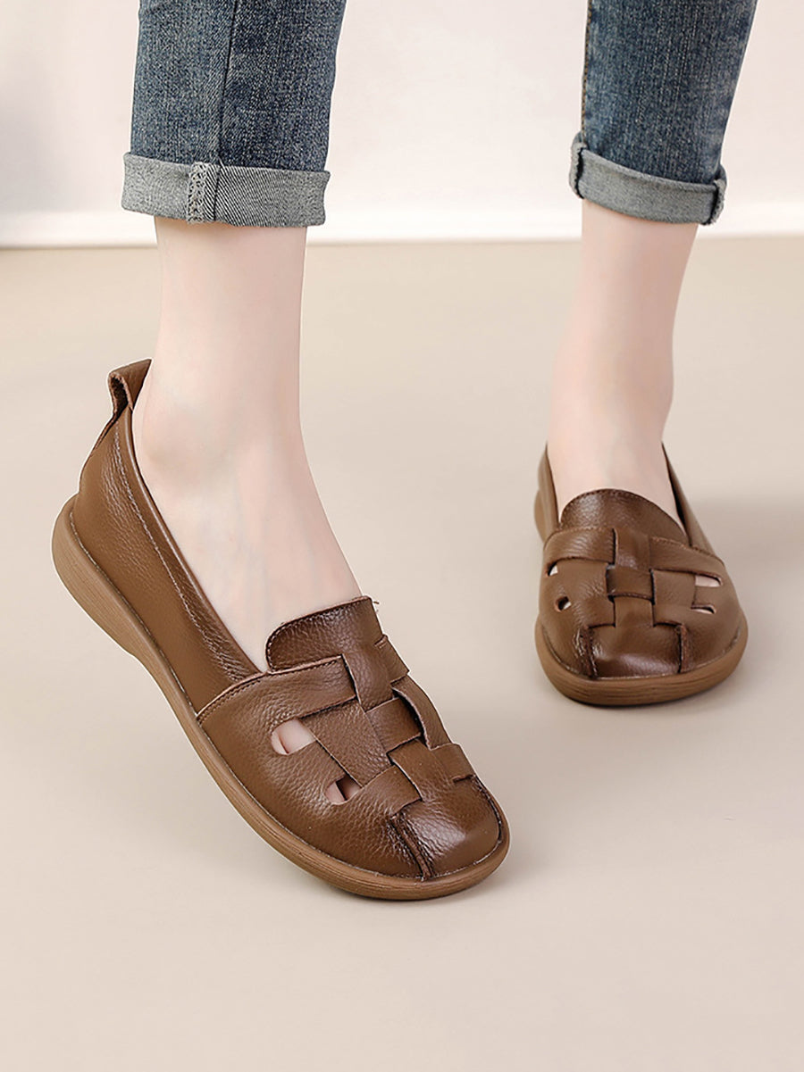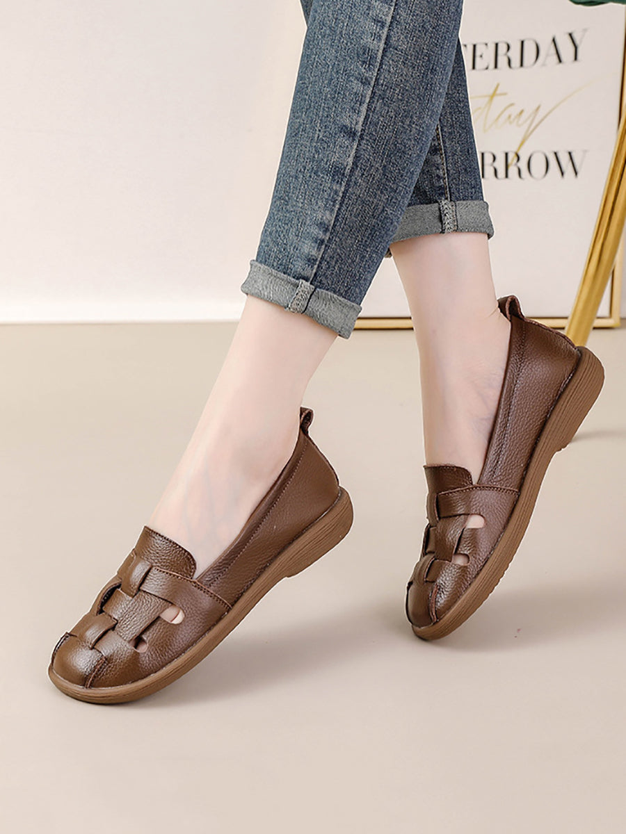 Sapatos femininos de verão em couro legítimo com detalhes em renda.