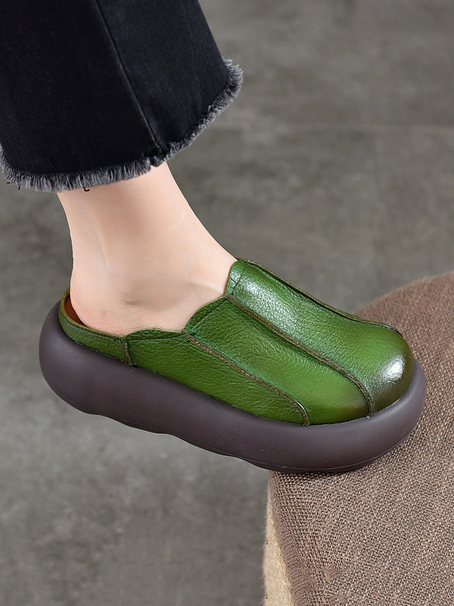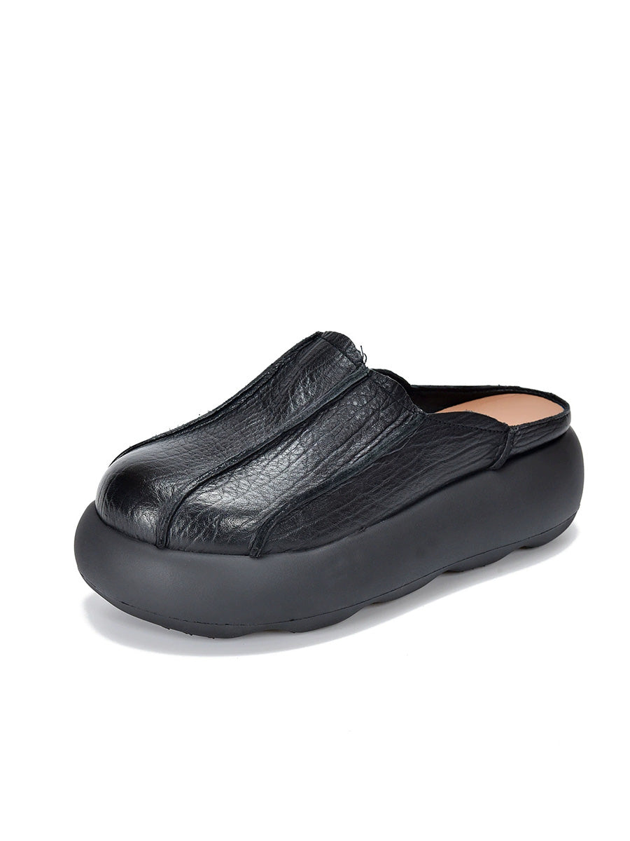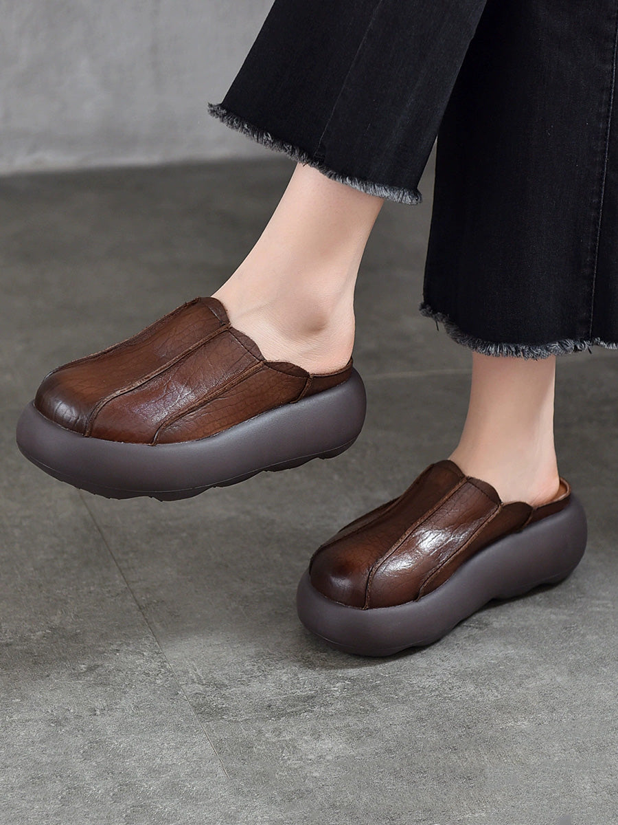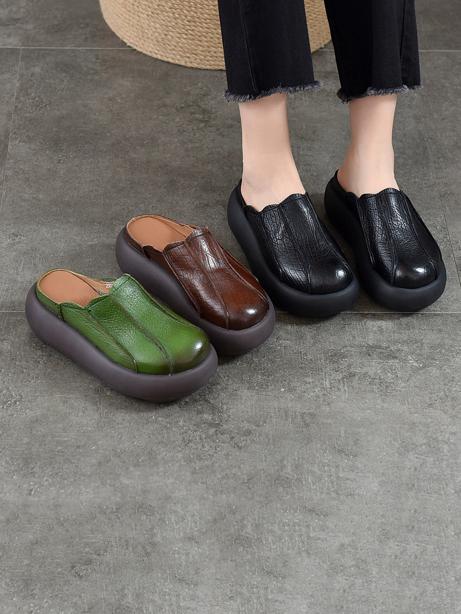 Chinelo feminino de verão em couro genuíno com plataforma e detalhes em couro.