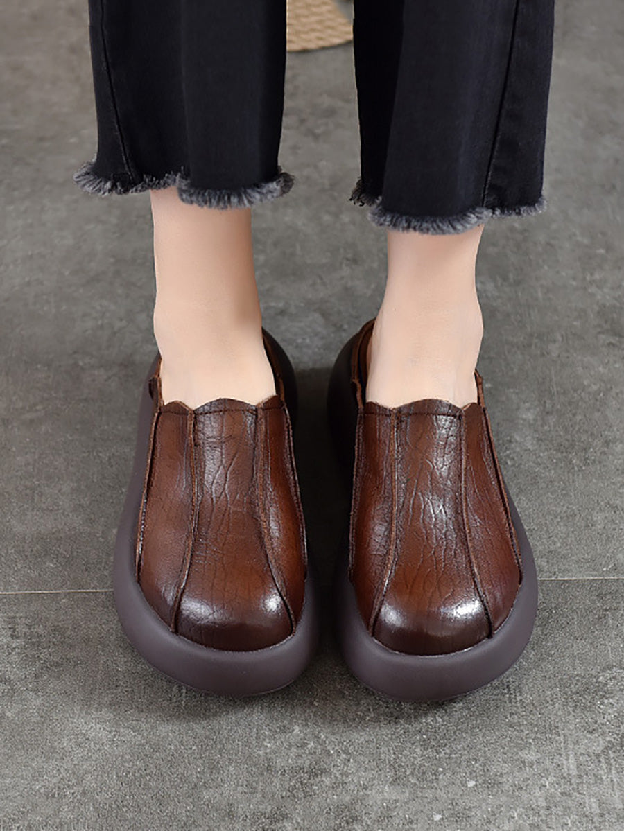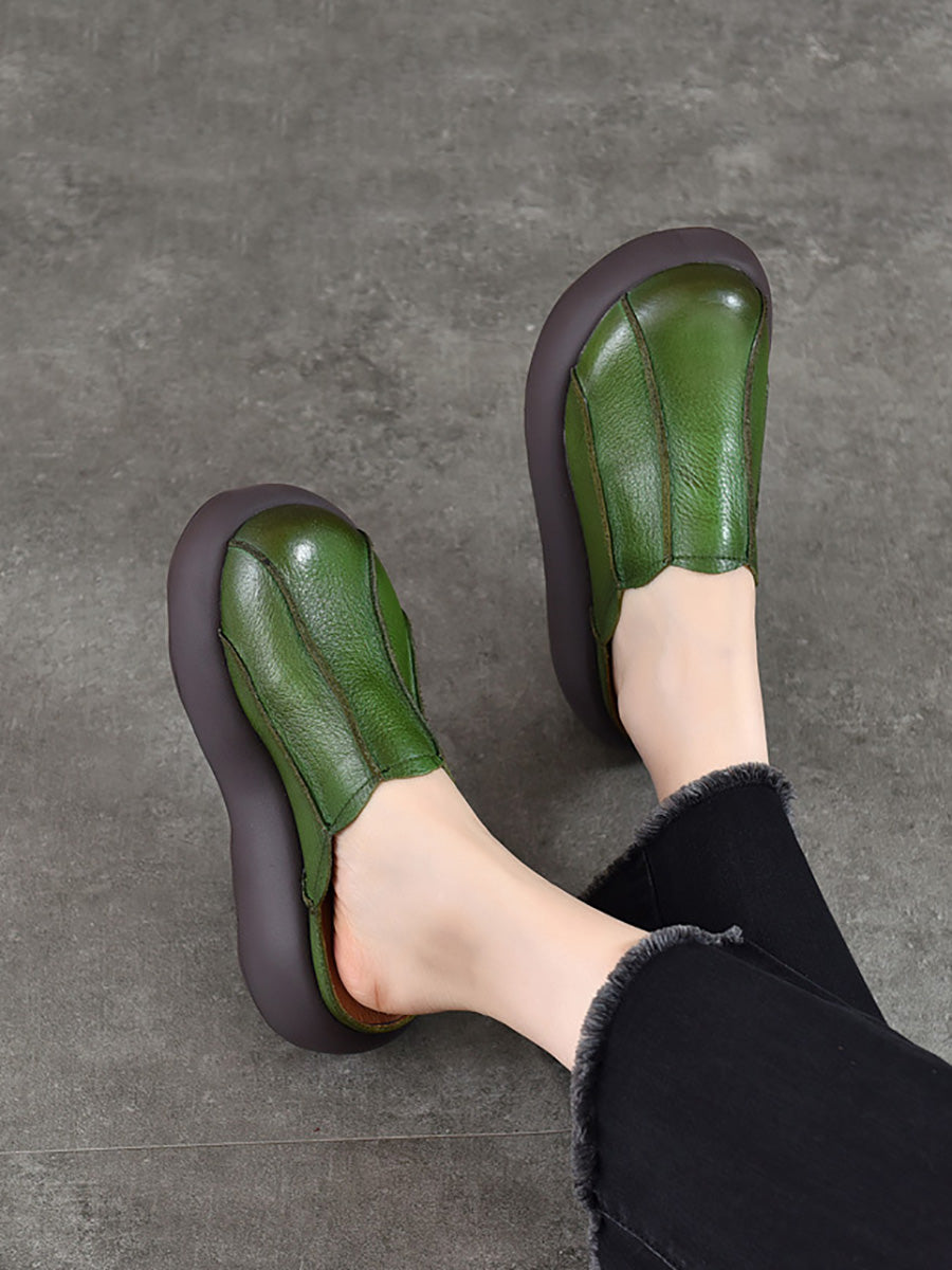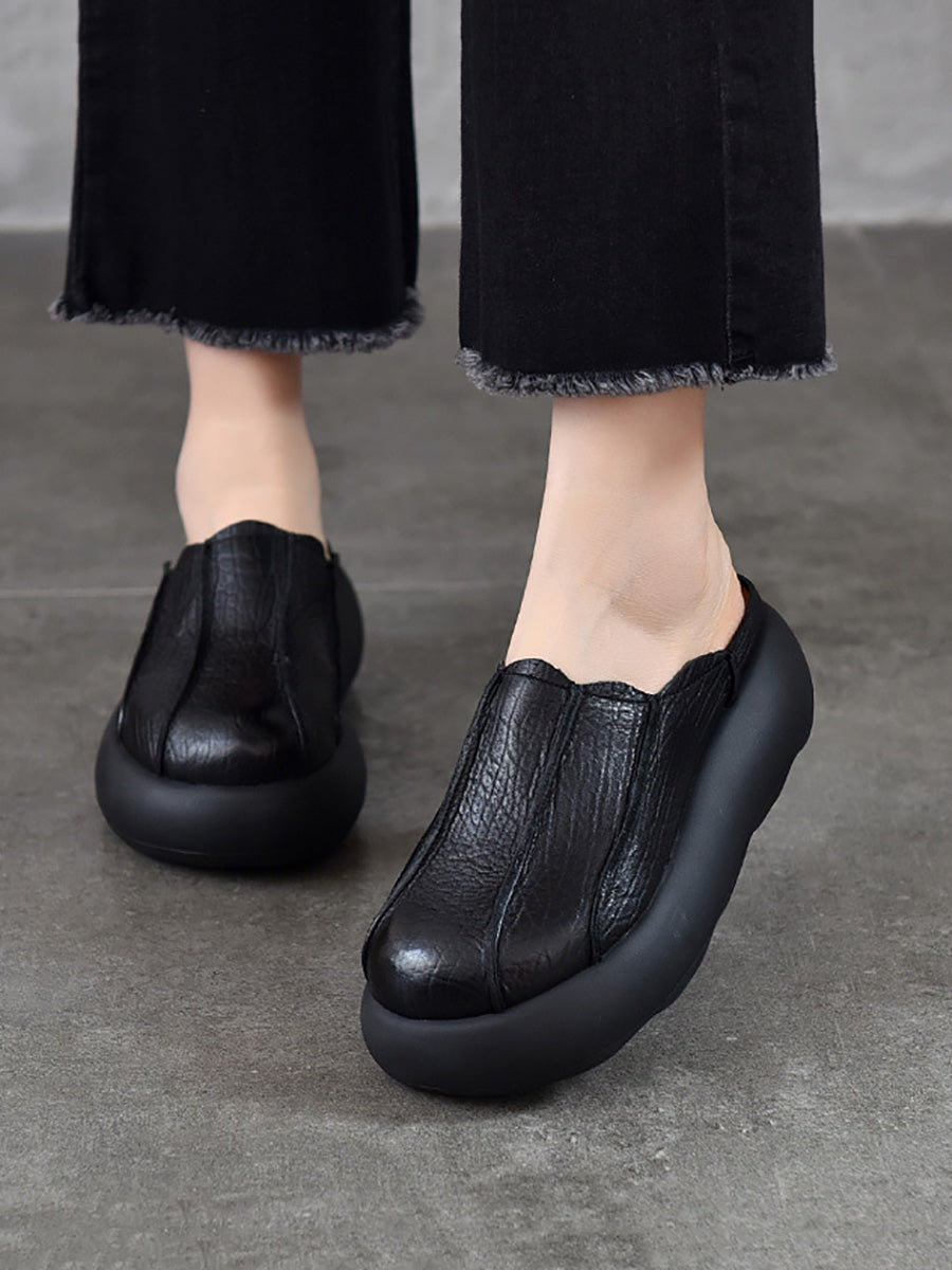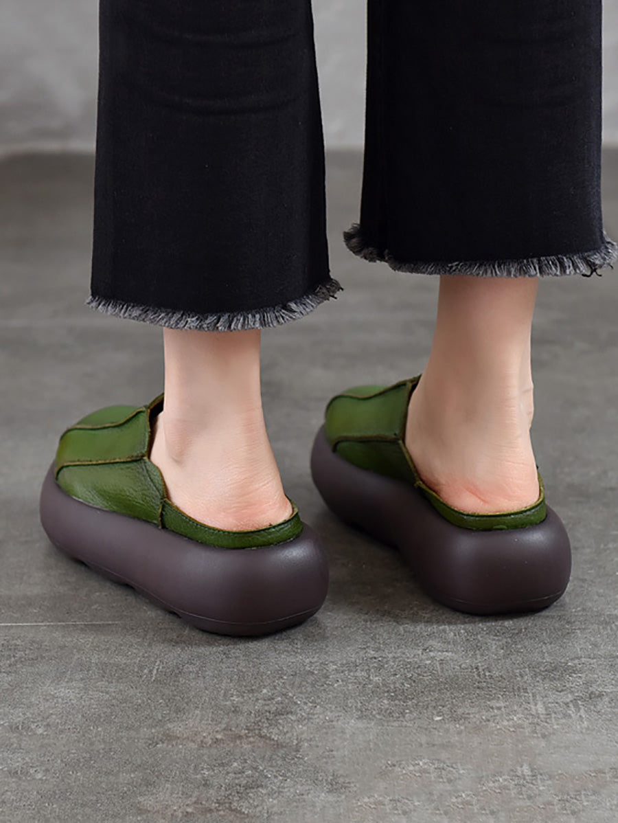 Chinelo feminino de verão em couro genuíno com plataforma e detalhes em couro.