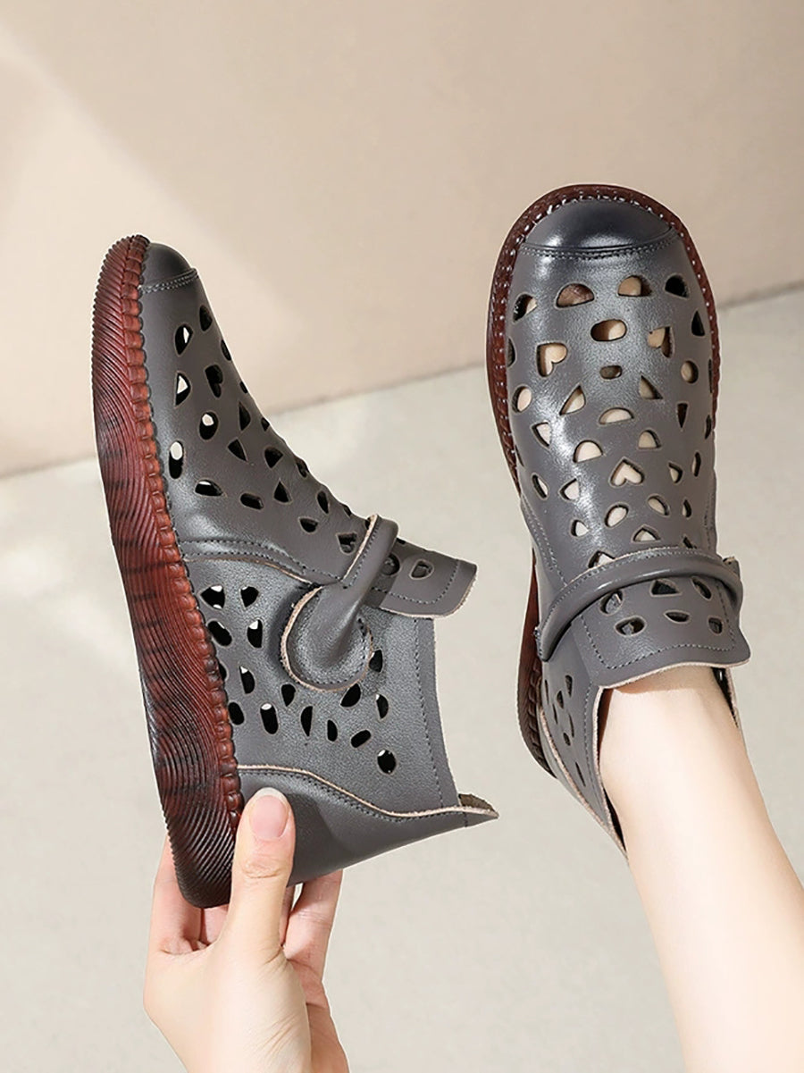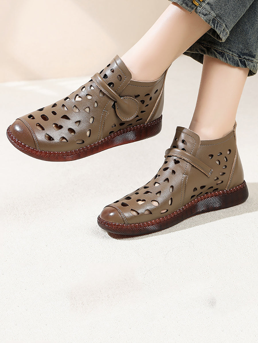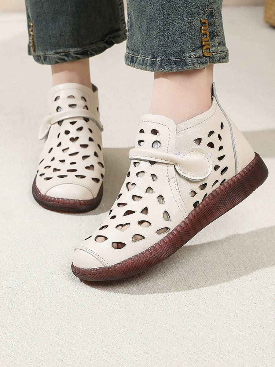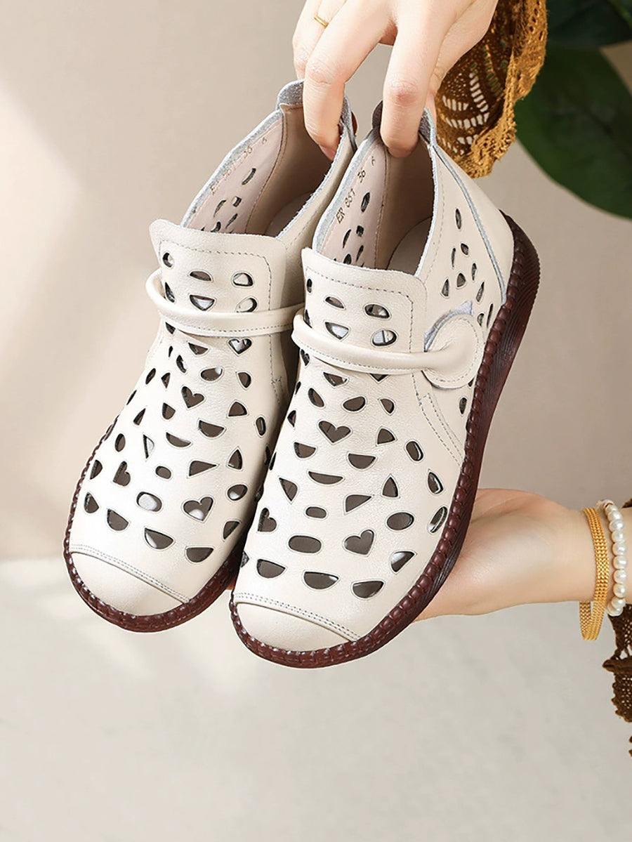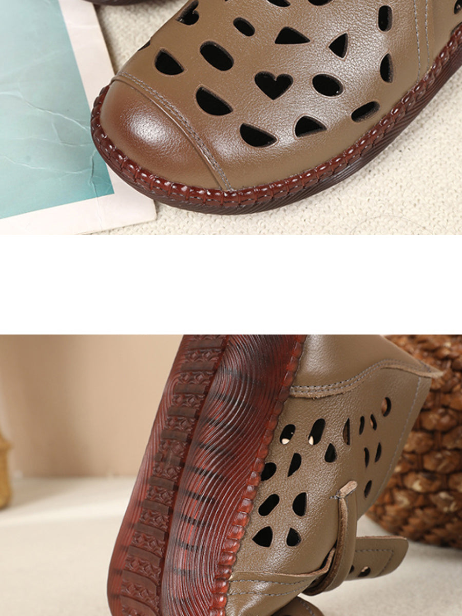 Sandálias rasteiras femininas de couro com furos para o verão