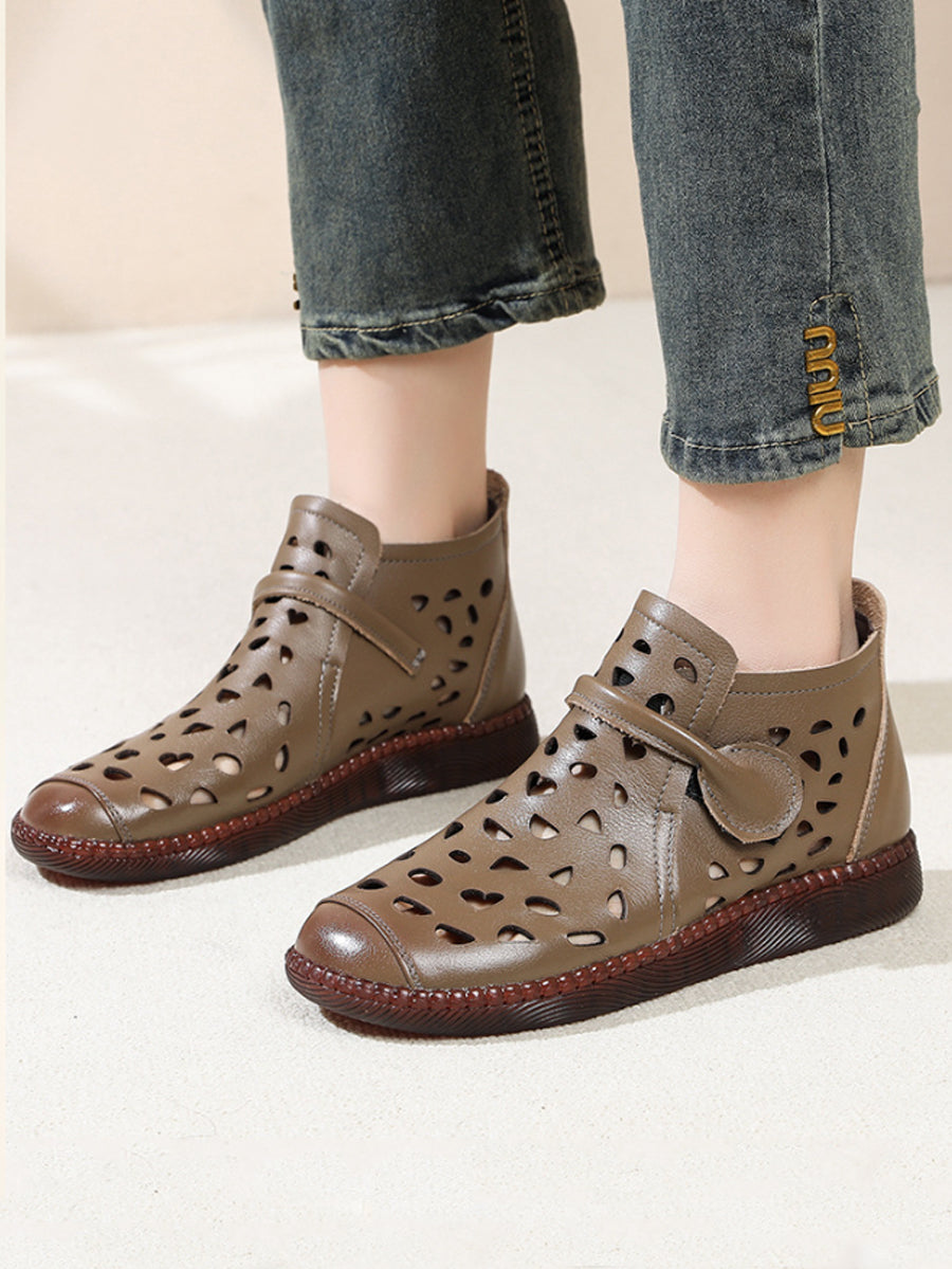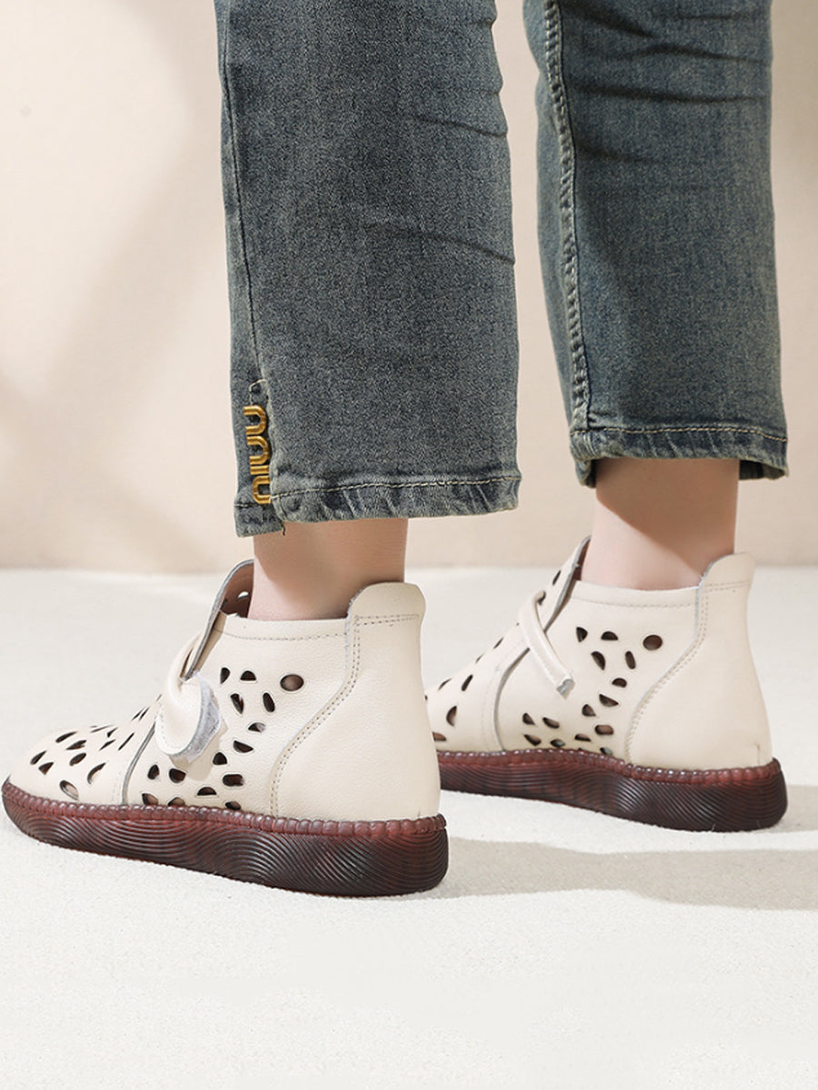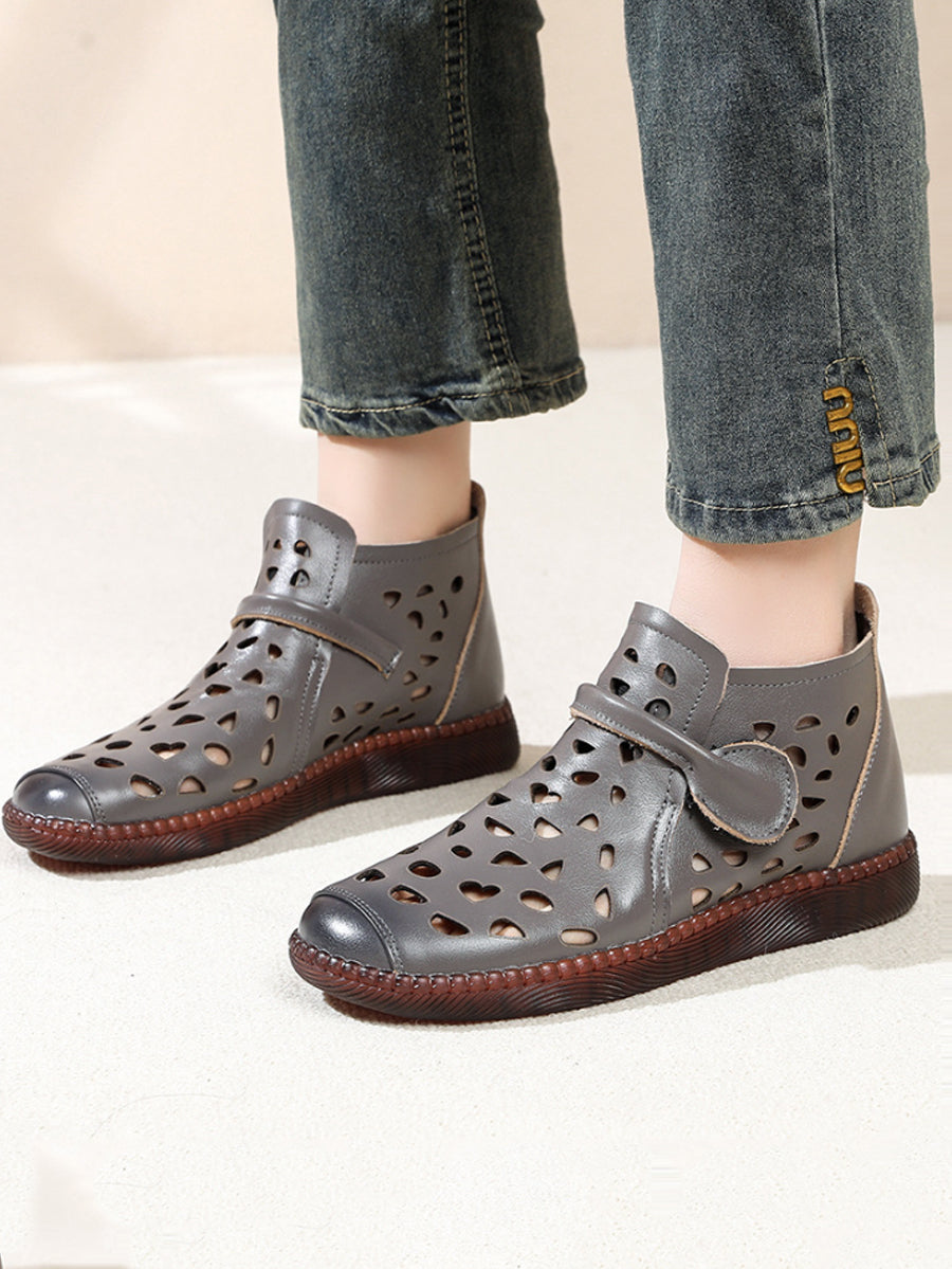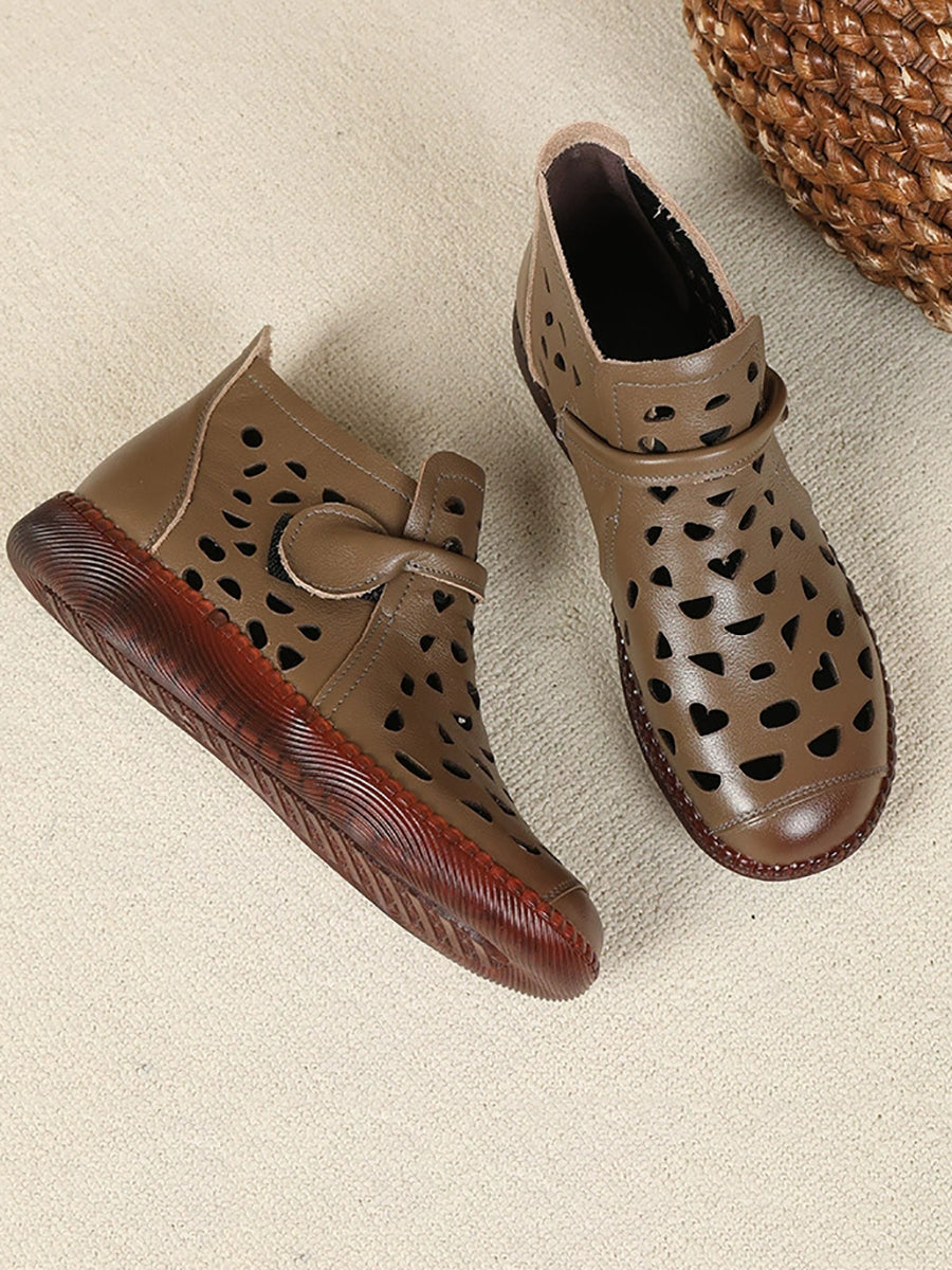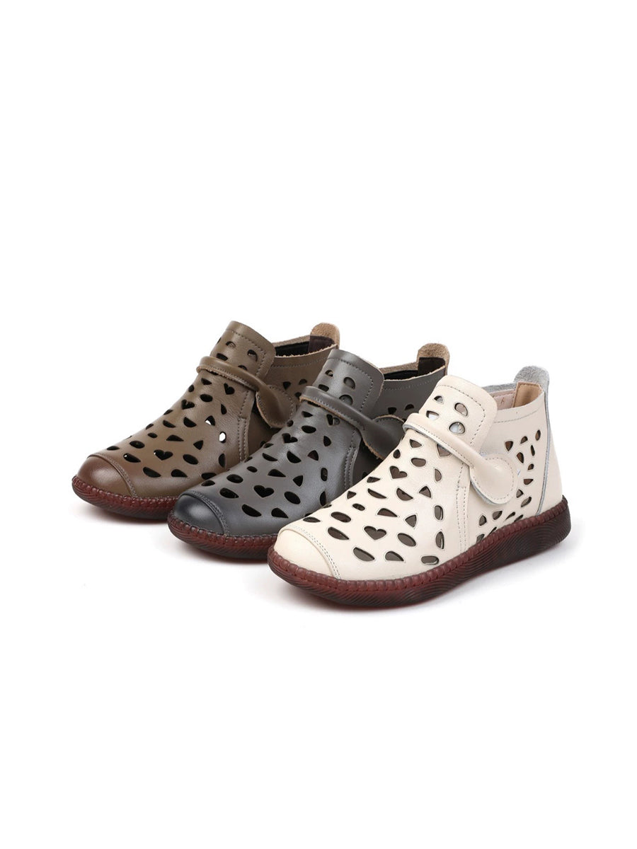 Sandálias rasteiras femininas de couro com furos para o verão