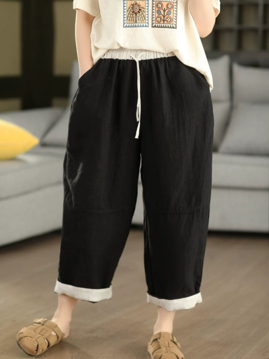 Calça Harem Feminina de Verão em Linho 100% Lisa, Cor Sólida