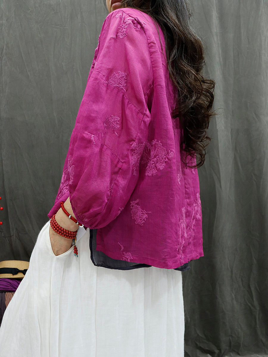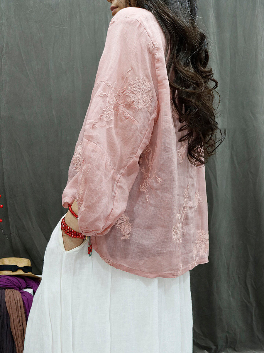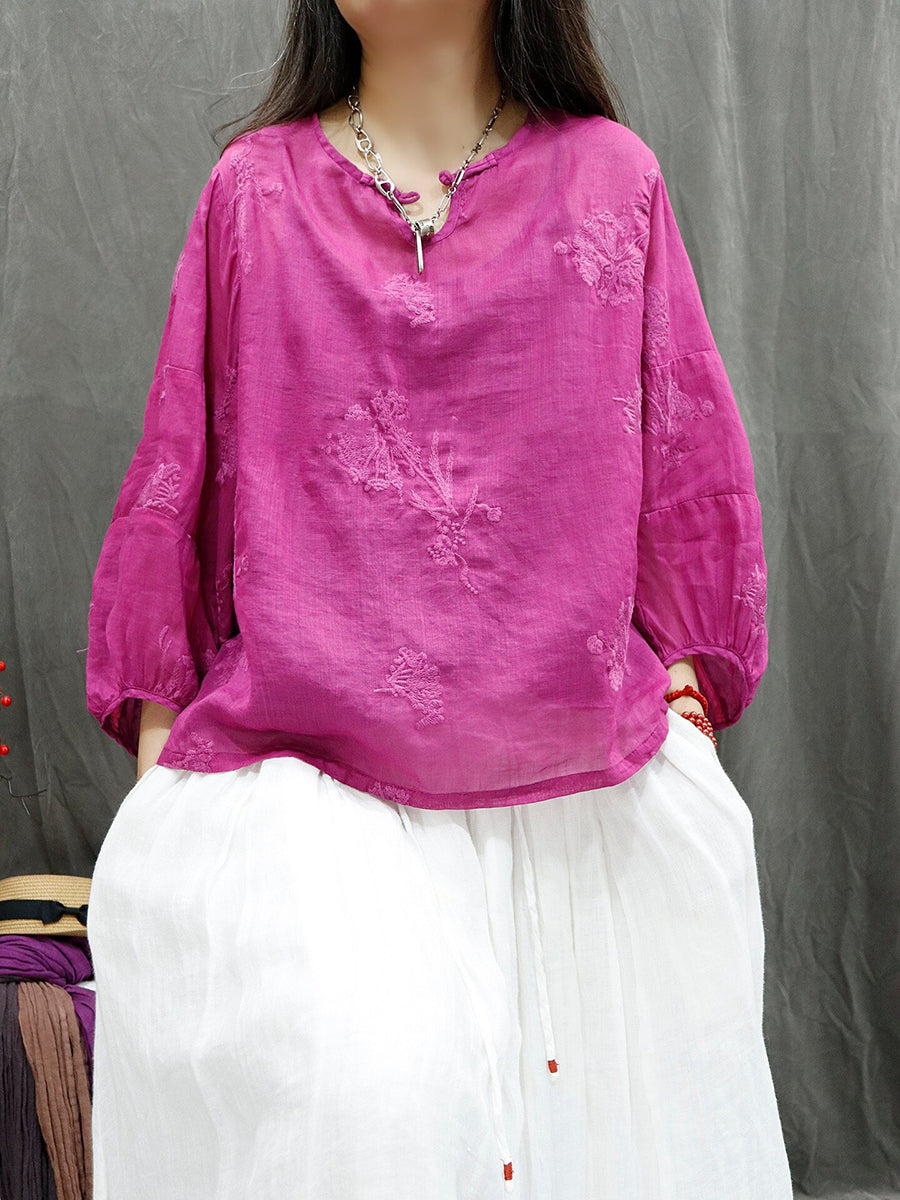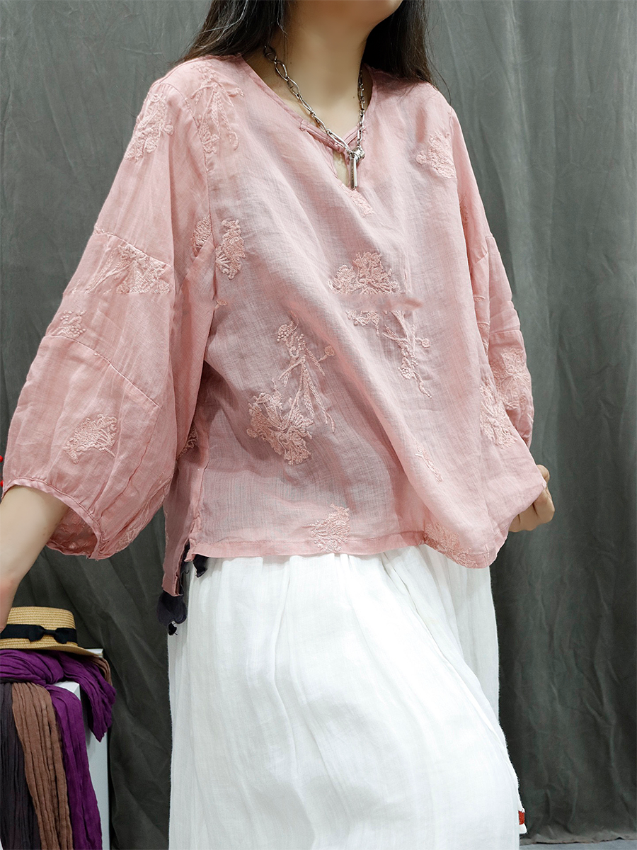 Blusa feminina de verão retrô bordada em rami