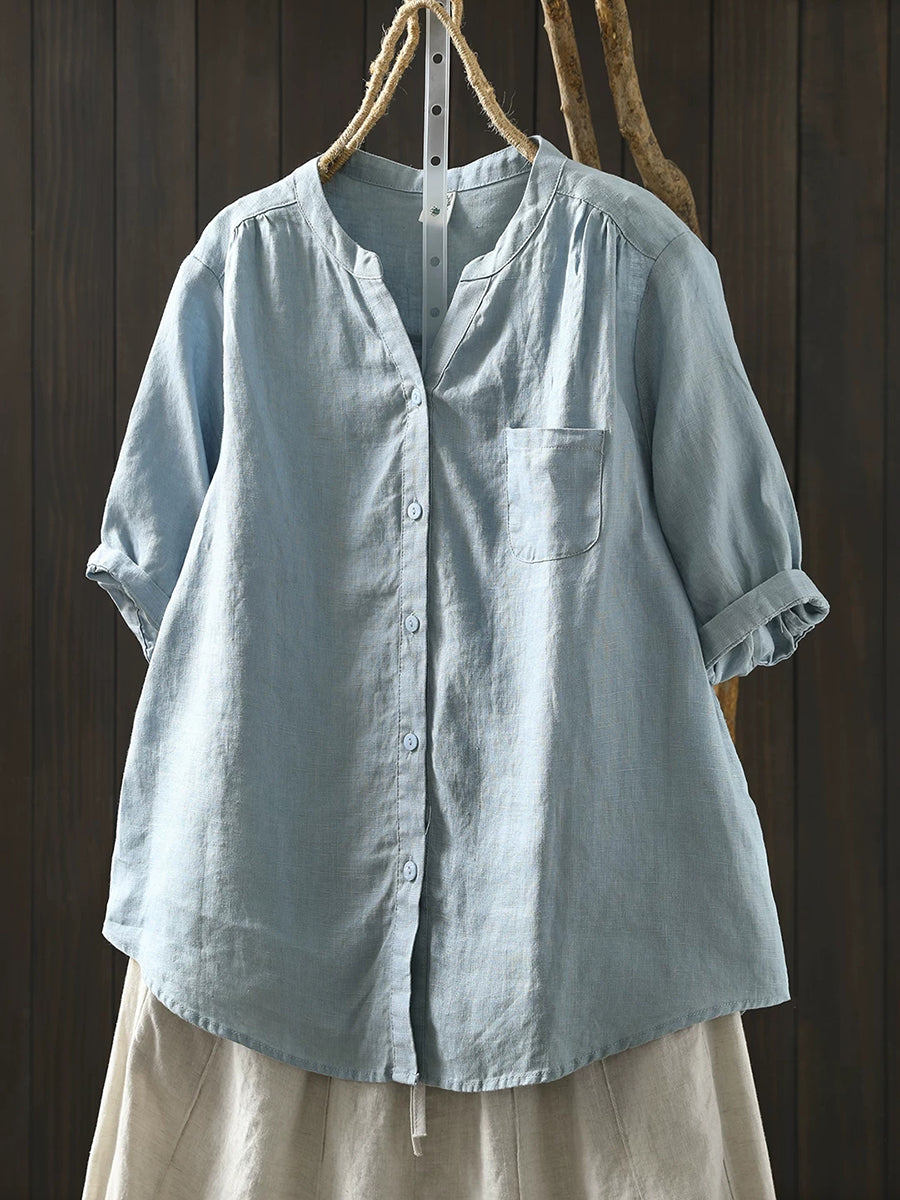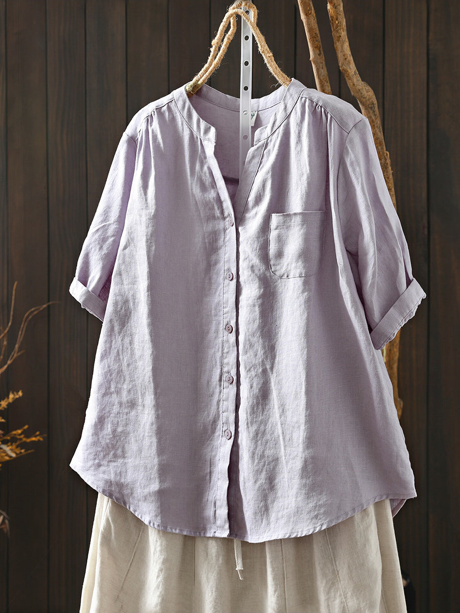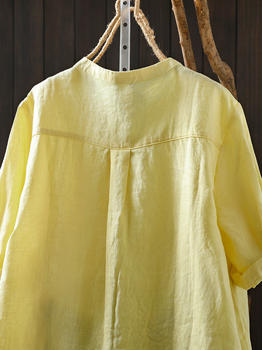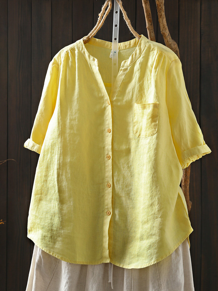 Blusa feminina de verão retrô, cor lisa, 100% linho.