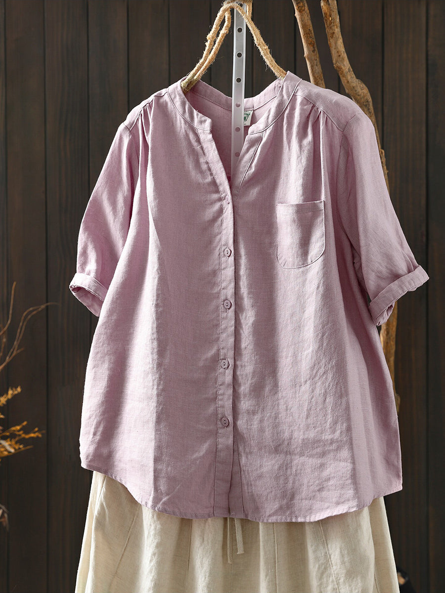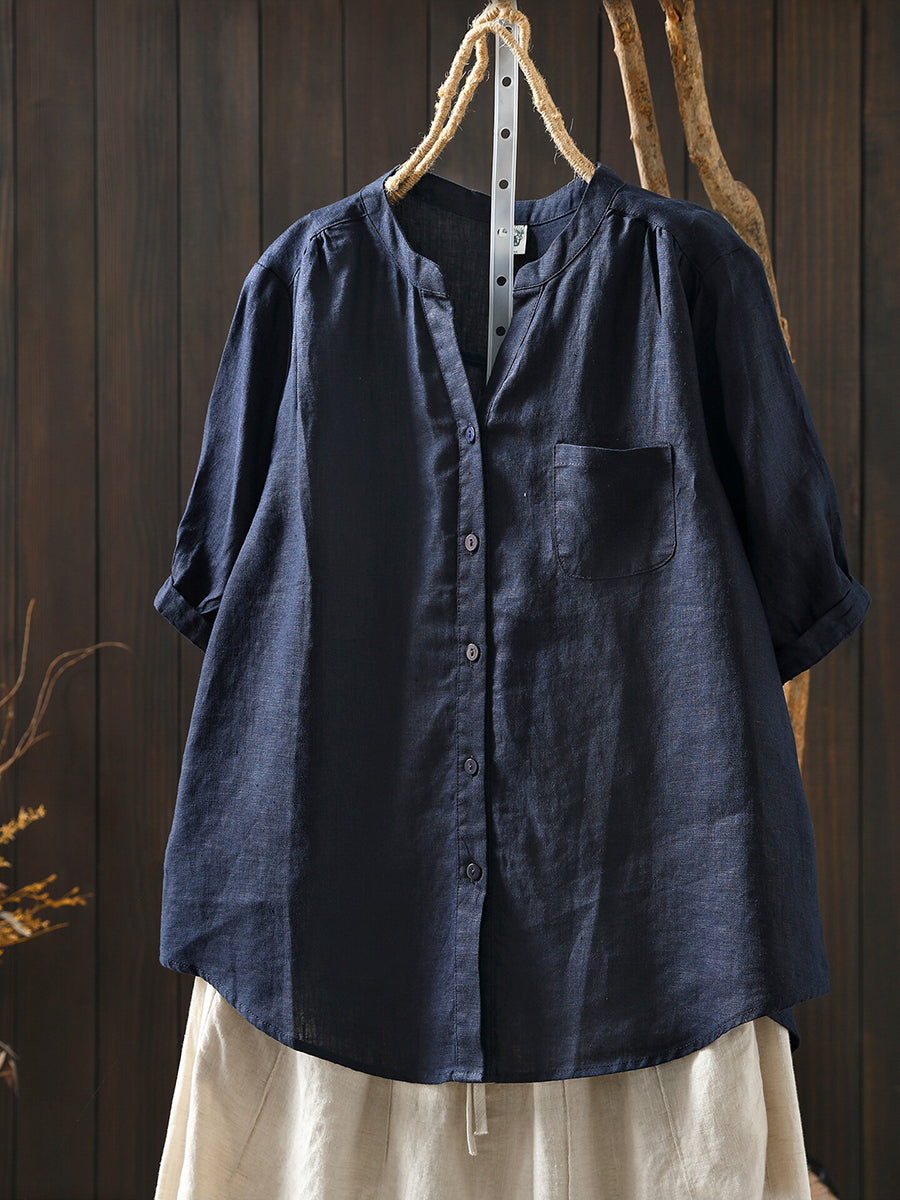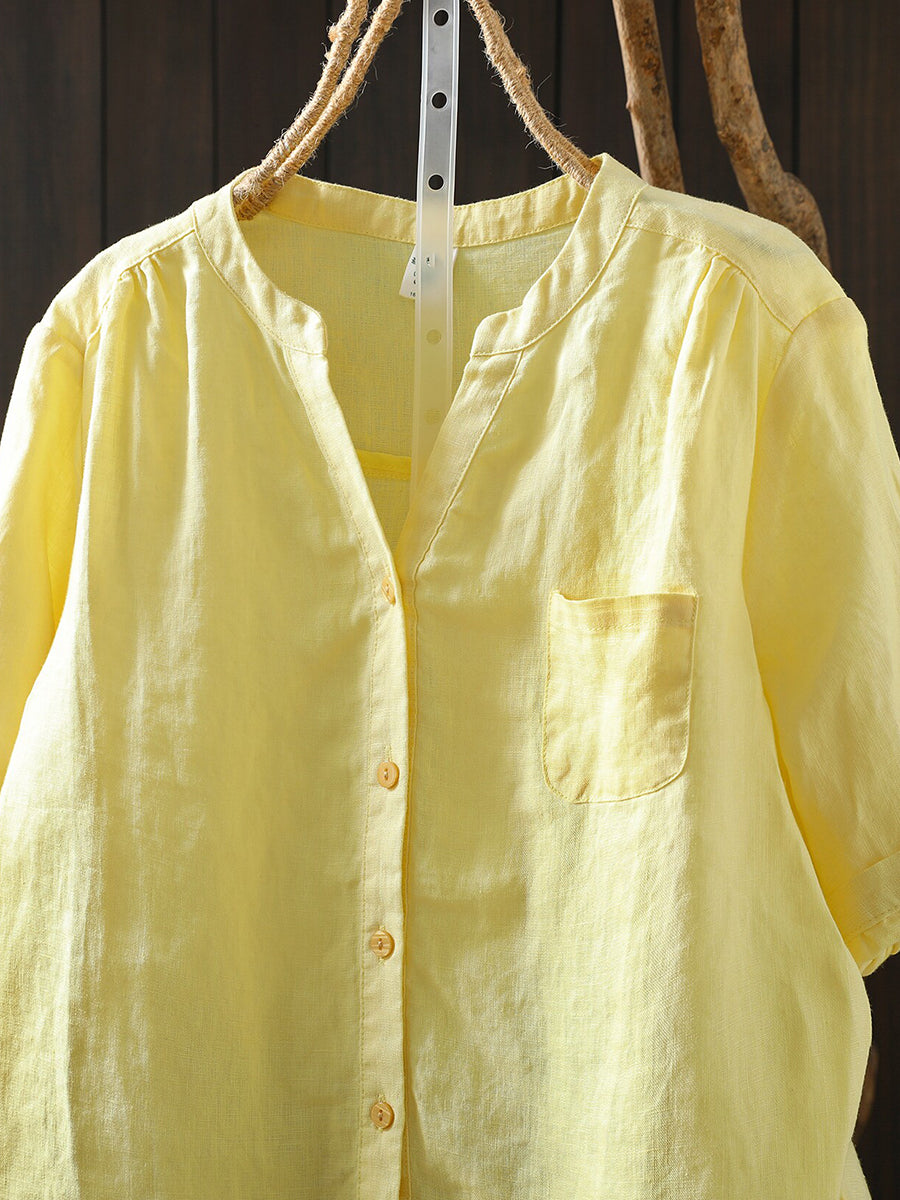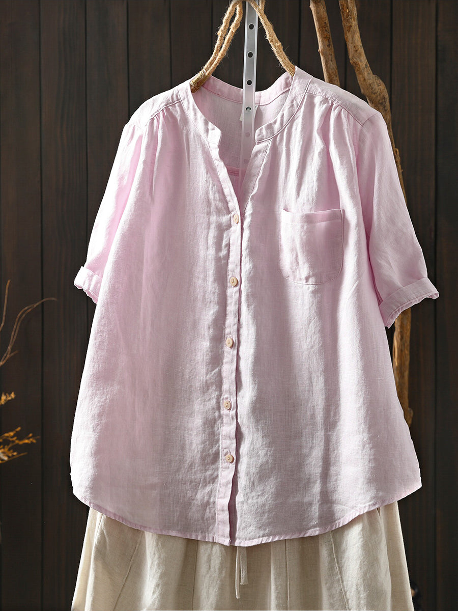 Blusa feminina de verão retrô, cor lisa, 100% linho.