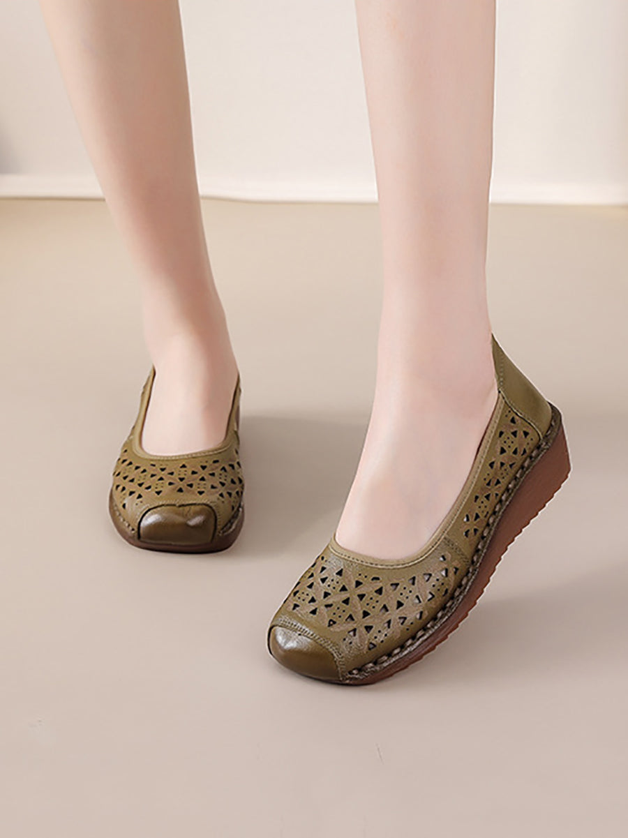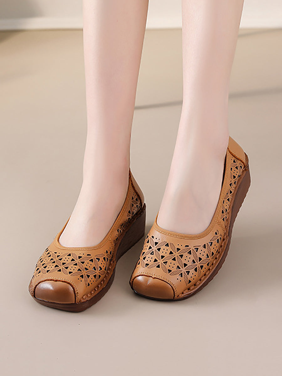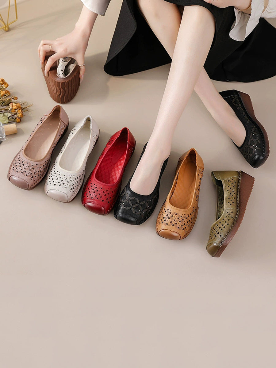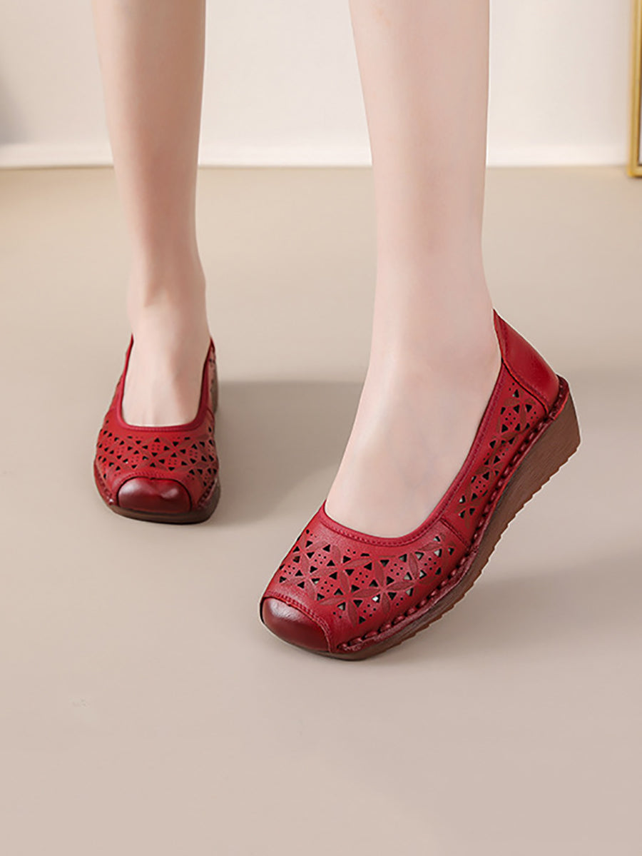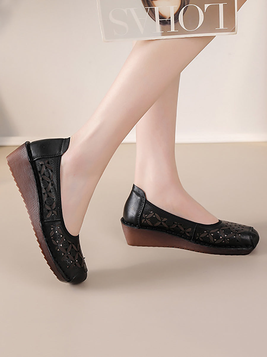 Sapatos plataforma femininos de verão vintage em couro genuíno.