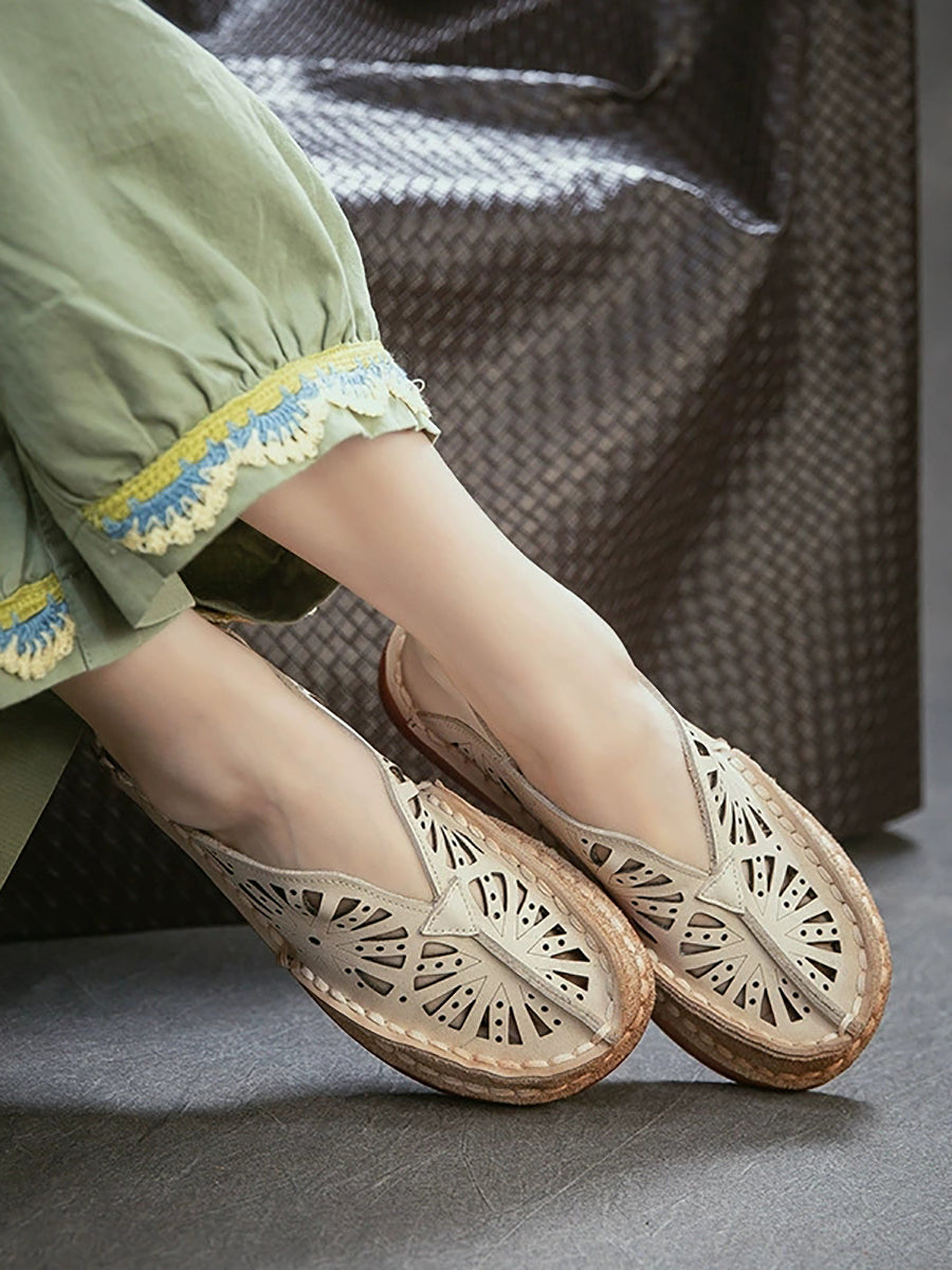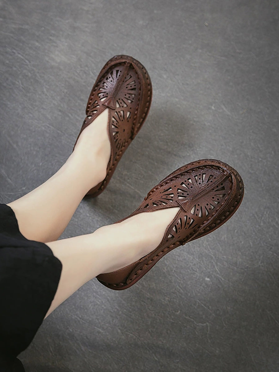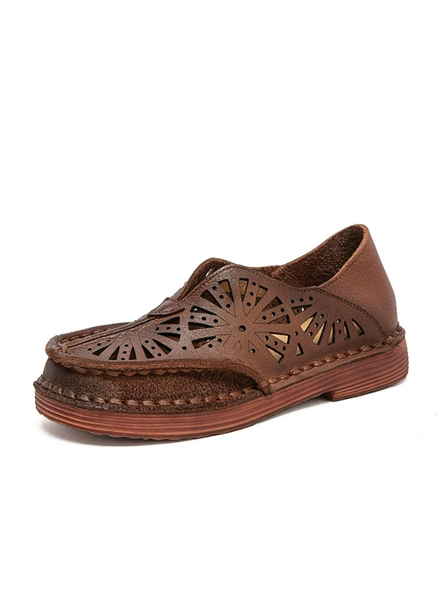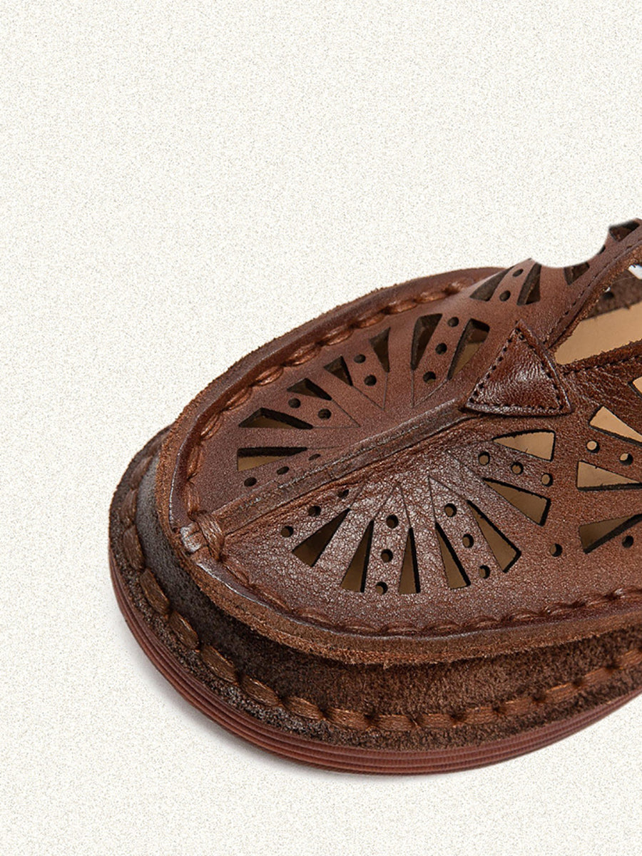 Sandálias femininas de couro vazado estilo vintage para o verão.
